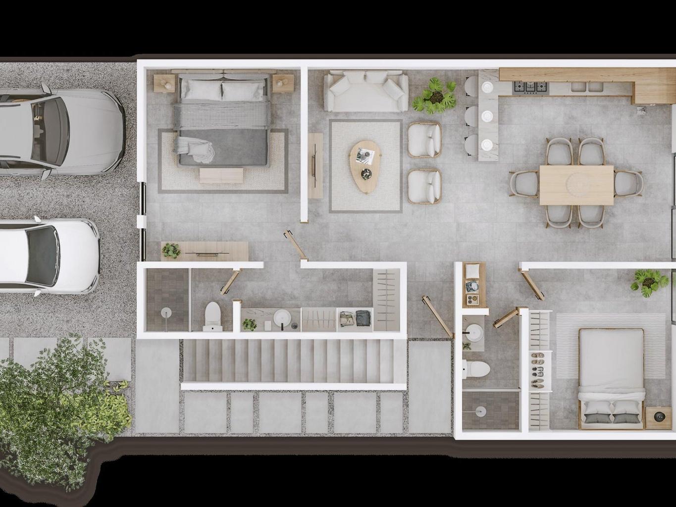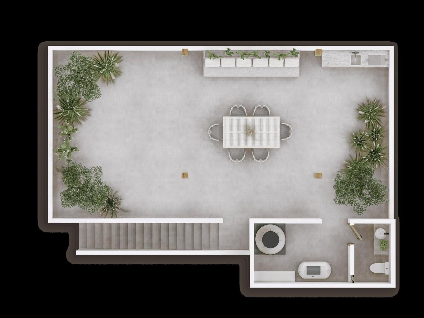 The Ámbar Model offers one level plus a private rooftop with pergola.