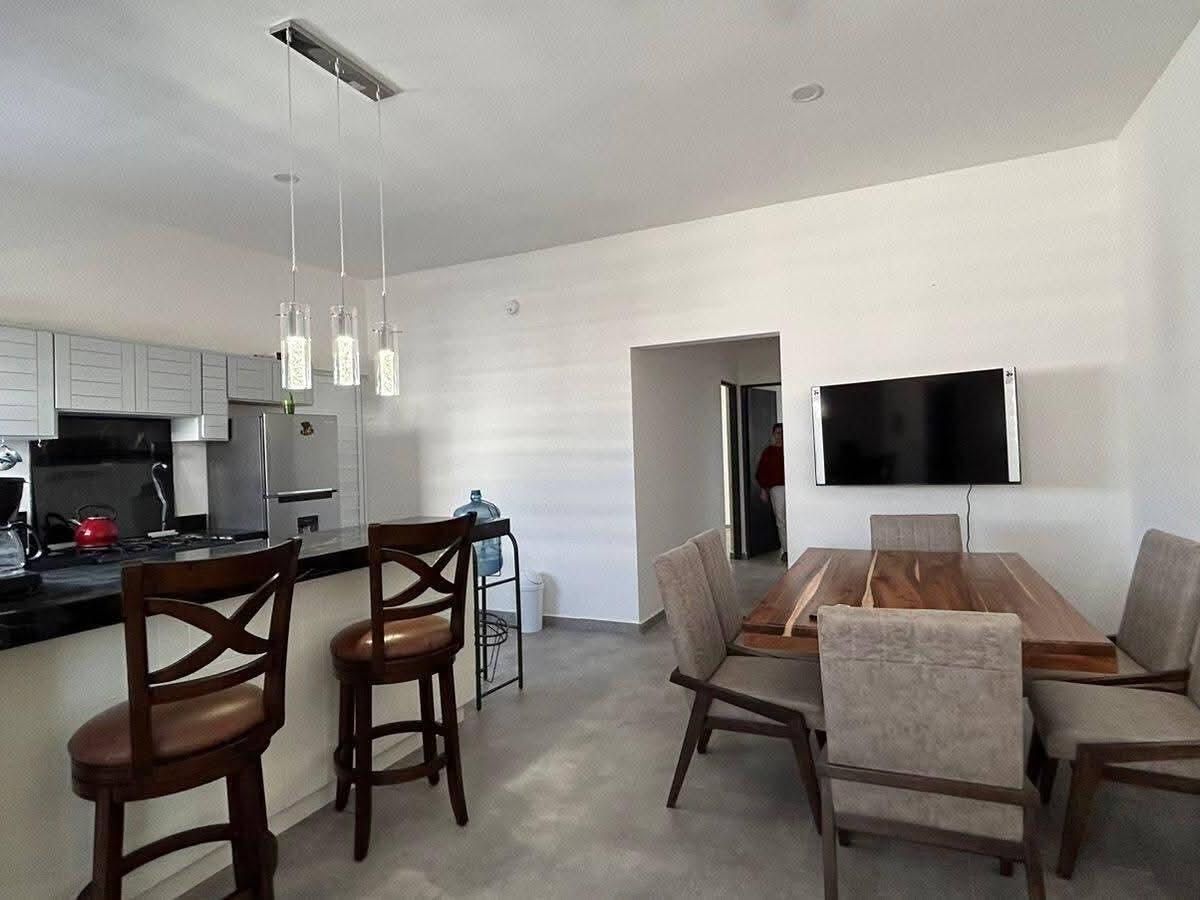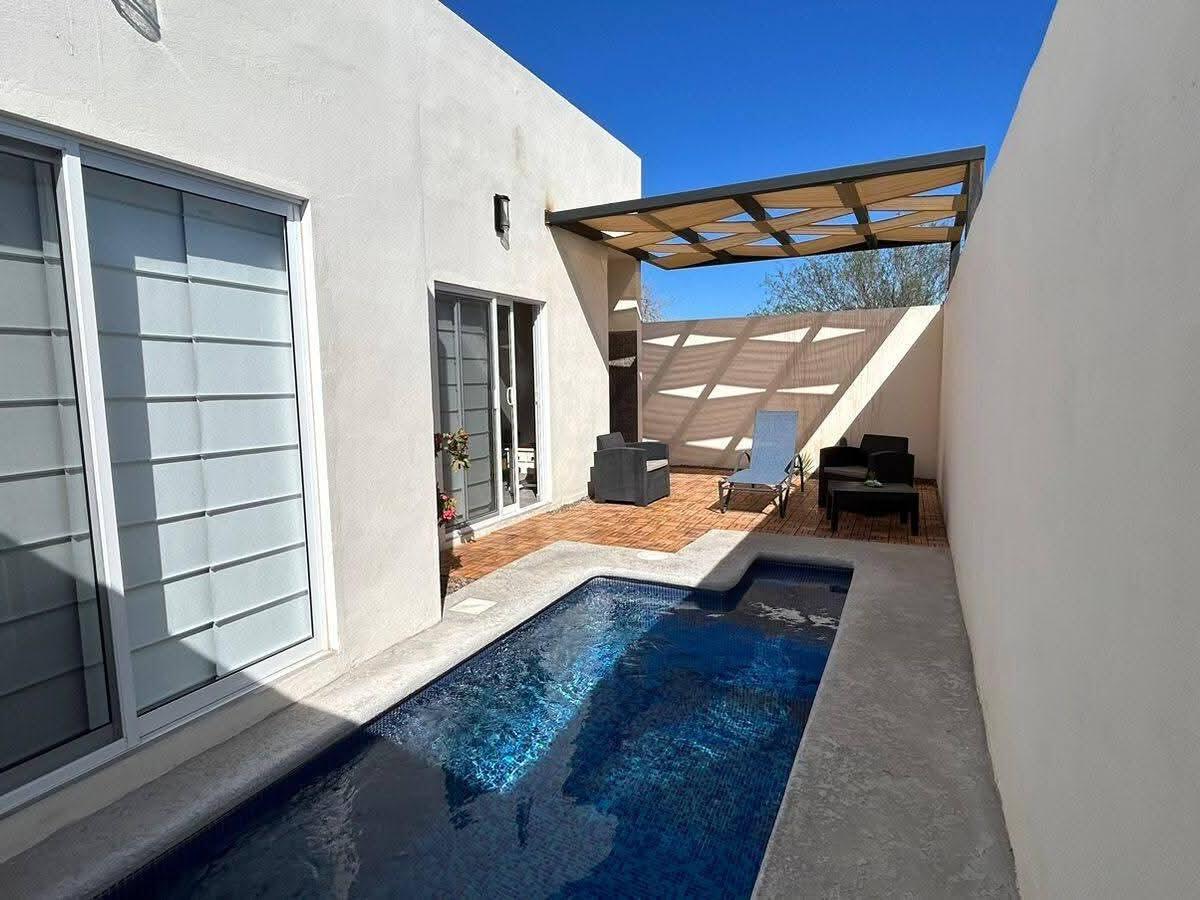 Corner-lot contemporary with rooftop views and a private pool, offering bright, modern living in La Paz. This well-kept home features an open-concept design, high ceilings, and excellent natural light throughout. The kitchen includes black granite countertops, stainless appliances, and a breakfast bar that connects seamlessly to the living and dining areas. Spacious bedrooms provide comfort for full-time living or guests. Outdoors, enjoy a private pool courtyard and a rooftop terrace ideal for sunset views, entertaining, and relaxing. Clean architecture, low-maintenance finishes, and strong rental potential make this property a smart choice for both homeowners and investors seeking a move-in-ready Baja lifestyle opportunity.