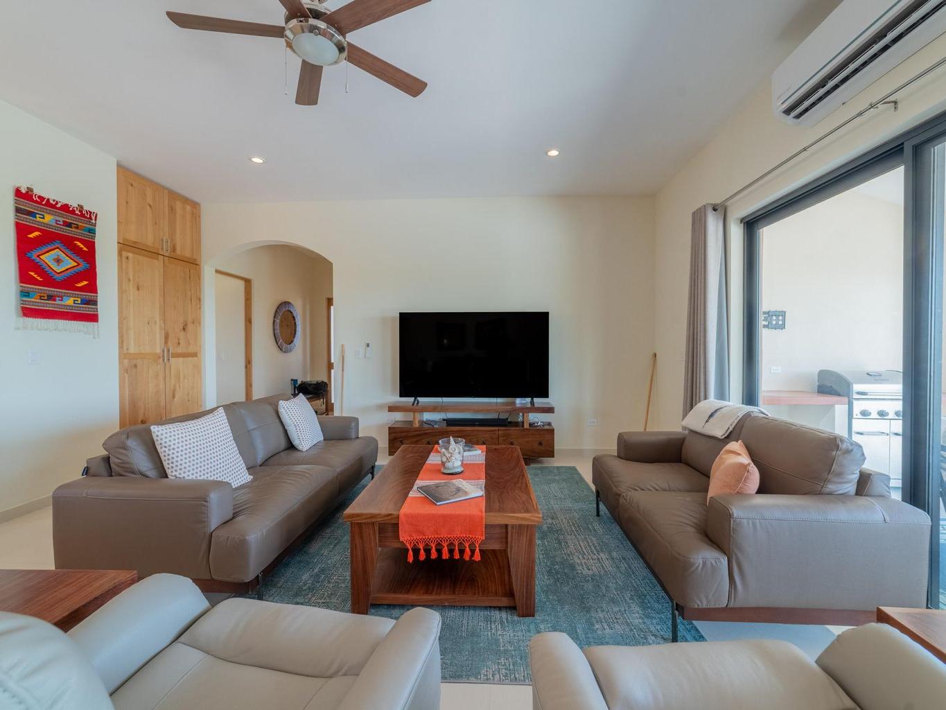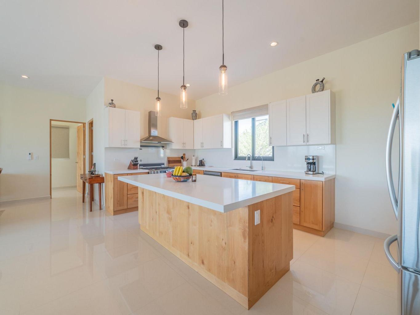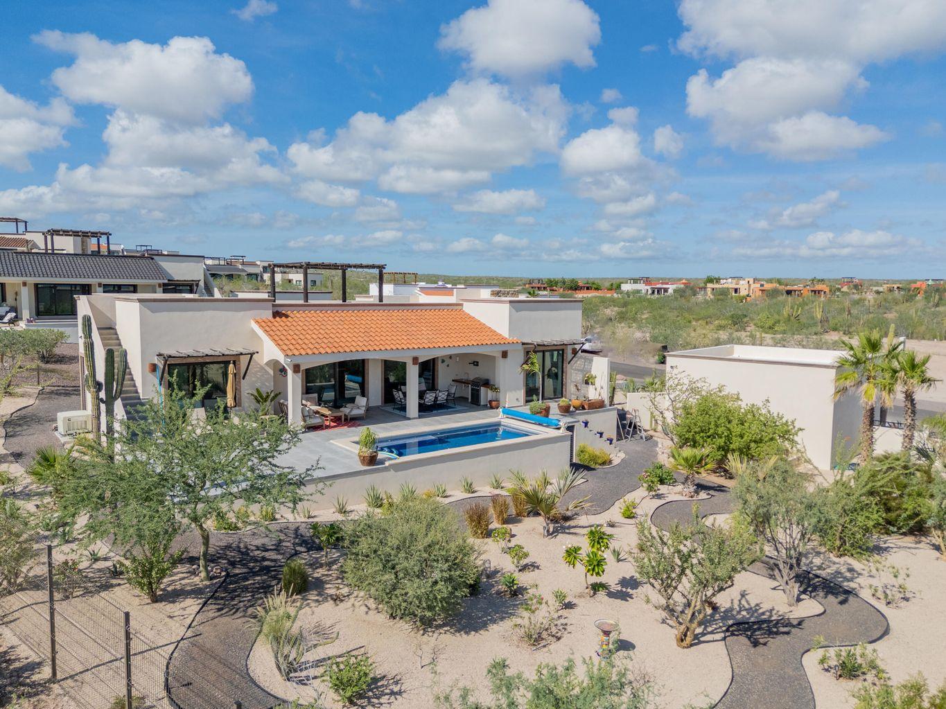Casa Los Suenos is recently built home in the master-planned community of Villas del Centenario. The 3 bedroom, 2 bathroom home offers 1,941ft2 of interior living space and a huge, open-concept kitchen/living/dining space and dual sliding glass doors that lead to a large 580ft2 covered patio with tiled roof, a sparkling heated 10ft x 22ft pool, outdoor kitchen, and 889.5ft2 of extra uncovered patio. The house features 10' ceilings, oversized ceramic tile inside and out, custom alder hardwood cabinetry, granite countertops and stainless appliances, and a large built-in pantry. The master suite has an en-suite with dual vanities in the bath, marble tiled shower and a walk-in closet. The house also includes 2 guest bedrooms, a full guest bathroom, a half bath, and a walk-in laundry.