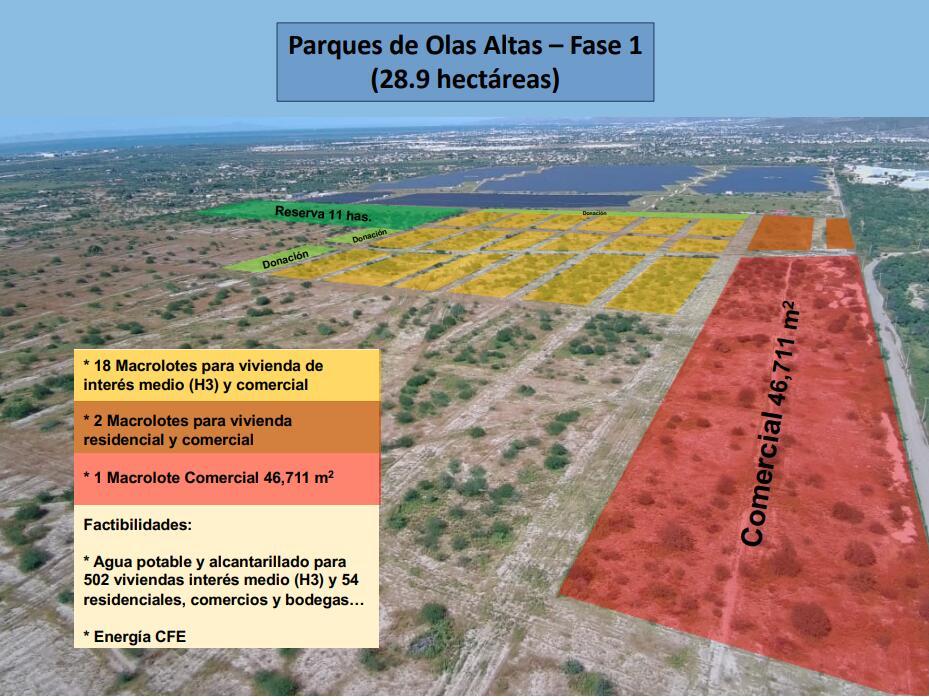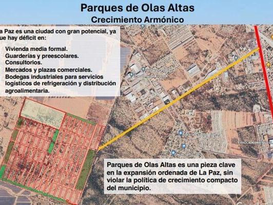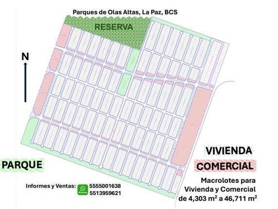 A prime 46,711 m² commercial parcel within the 28.9-hectare master development Parques de Olas Altas, strategically positioned along the La Paz-Los Cabos highway in the city's natural growth corridor.