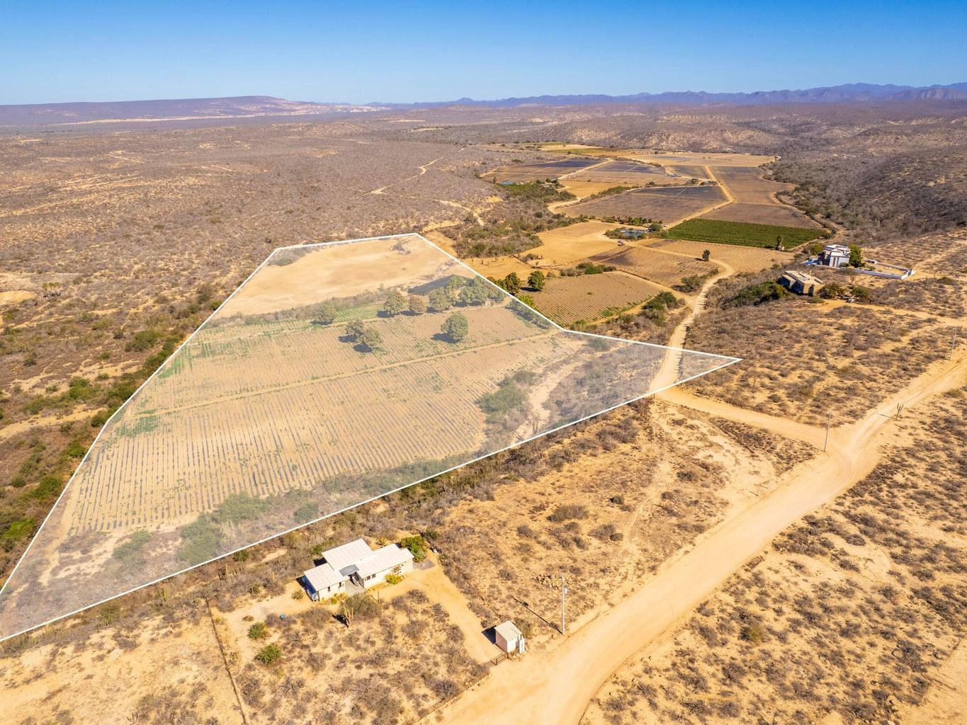 Located in one of the most quiet areas of Todos Santos, the property is perfectly suited for cultivating export-grade fruits, vegetables, and fine herbs. The land has neem and fruit trees, including mango, citrus, pomegranate, banana, papaya, and more.