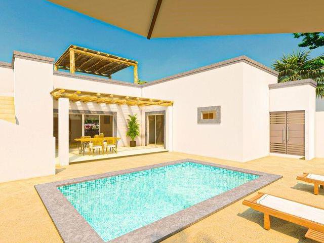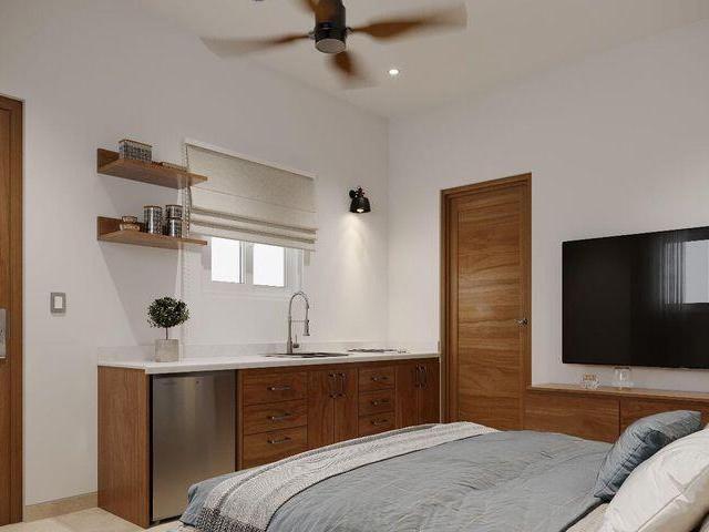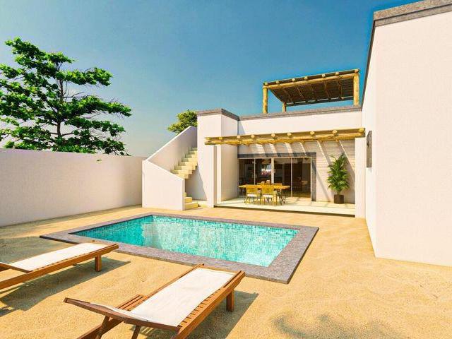 Modern design meets Baja lifestyle in this thoughtfully crafted 2-bedroom, 2-bathroom home with the bonus of a fully self-contained casita! The main house features an open-concept layout, custom cabinetry, quality finishes, and sliding doors that lead to your shaded terrace and tiled pool. High ceilings and great airflow keep it cool year-round. The separate guest casita includes a bedroom, full bathroom, and its own kitchenette ideal for visitors, a long-term tenant, or even a private office. This model also includes a rooftop terrace with shade pergola, perfect for stargazing or catching Sea of Cortez breezes, plus a second pergola over the parking area. All on a walled and gated lot with desert landscaping and plenty of privacy.