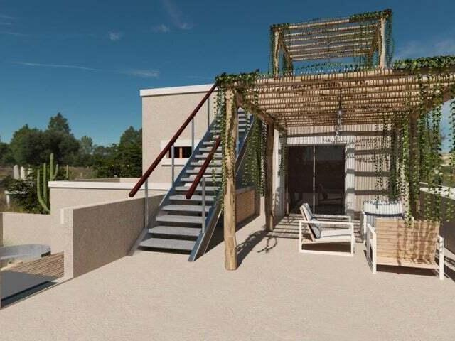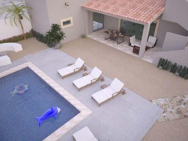 Another beautiful home from the Francisco designers! This one is two stories with a master suite and guest bedroom on the first floor (2 full bathrooms), along with a gorgeous granite and parota wood kitchen, and a second master with a huge view terrace upstairs. There is a roof top pergola also with spectacular 360 degree views. The front is walled and gated, sides are fenced, with a pool, covered parking and basic landscaping, what more could you ask for? Please press MORE for a list of inclusions and payment schedule.