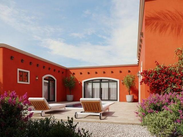 Casa Hacienda embraces the beauty of traditional Mexican architecture, featuring warm wood-lined ceilings, stone accent walls, and a serene central courtyard anchored by a sparkling pool. Located in the peaceful bayside community of El Comitan, just minutes from La Paz, this 2-bed, 2-bath pre-construction home offers fully walled privacy and a layout designed for breezy indoor-outdoor living. A shaded rooftop terrace invites sunset views and quiet evenings. Built by a trusted local builder, Casa Hacienda pairs timeless craftsmanship with the modern conveniences that make life in Baja effortless and deeply enjoyable.