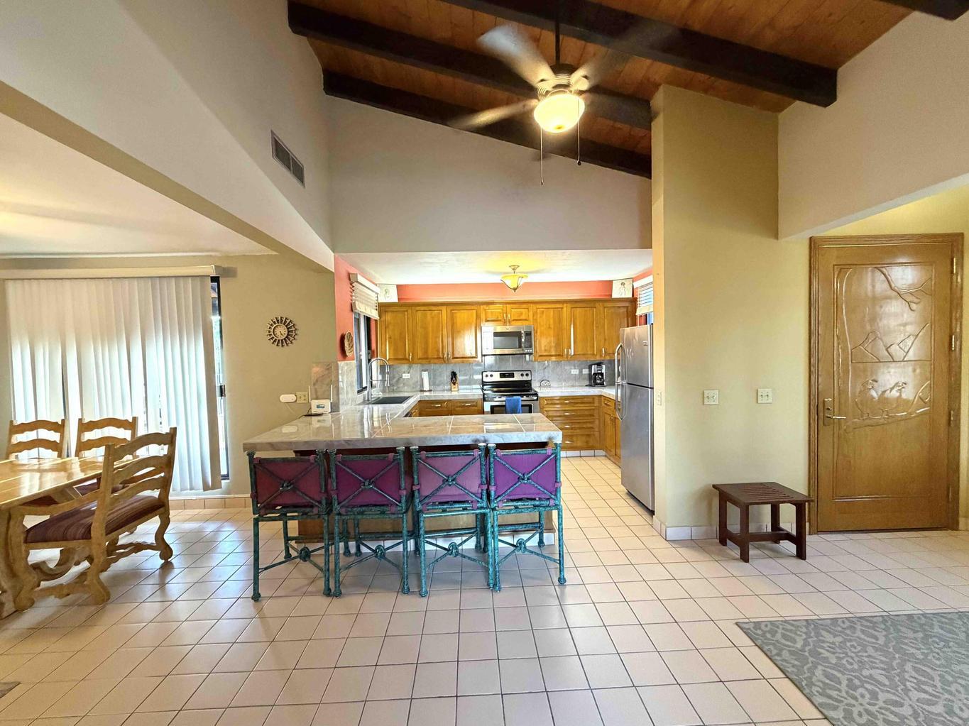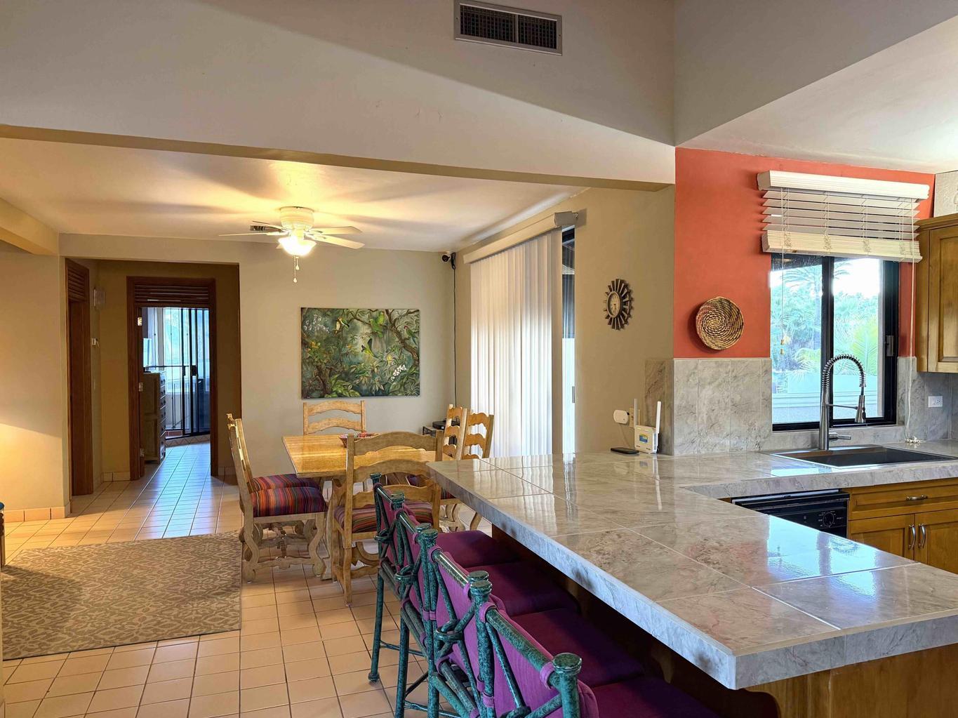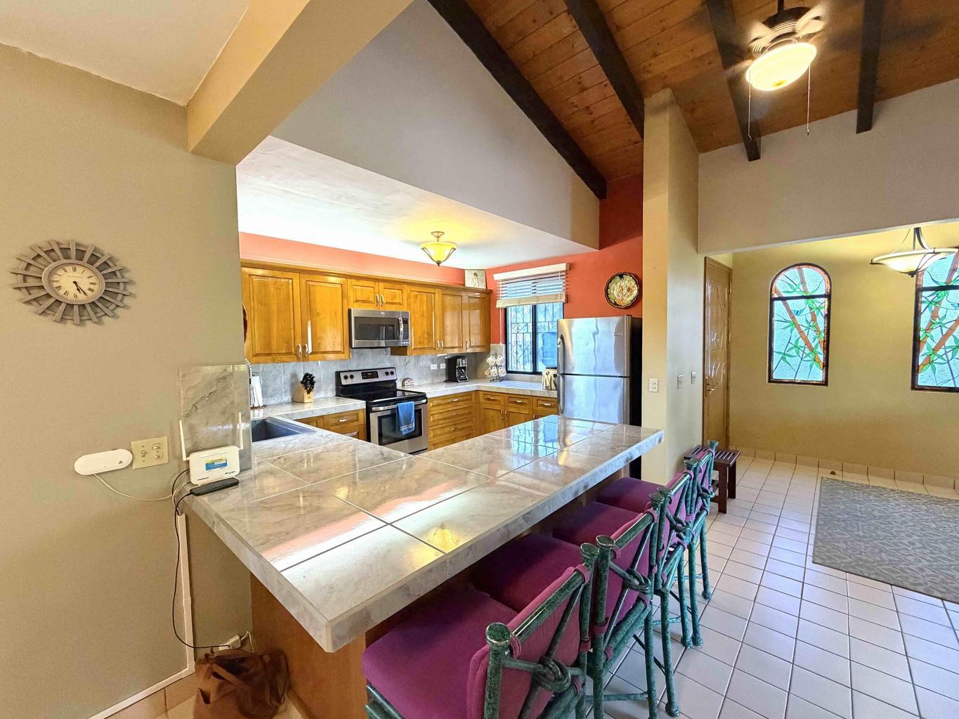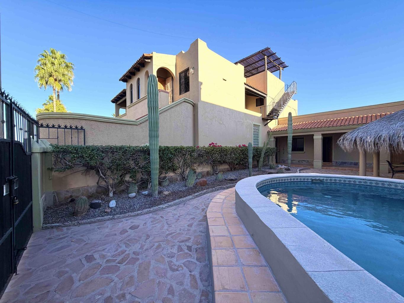 Welcome to Casa Rosendo Robles!! Ideally located 4 bedroom/5 bath home in Loreto's historic district--just half a block from the malecón and the Sea of Cortés and one block from the plaza--this exceptional home blends traditional craftsmanship, rental potential and breathtaking views. Enter at the top of a tiled staircase through a hand-carved wooden door into an open kitchen, dining and living area. A terrace off the living room, complete with BBQ and wet bar, is perfect for morning coffee or evening cocktails.