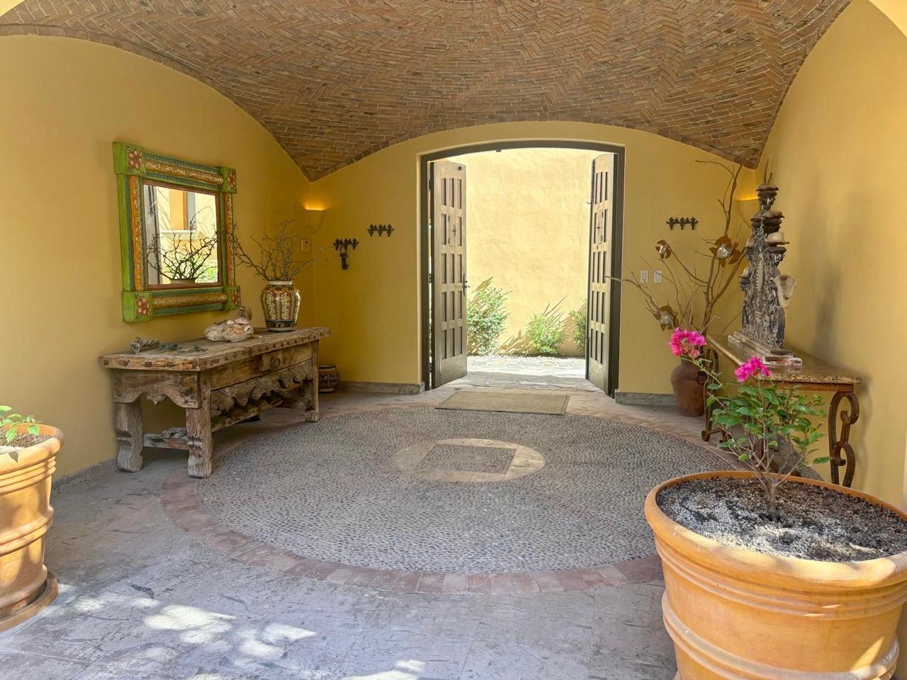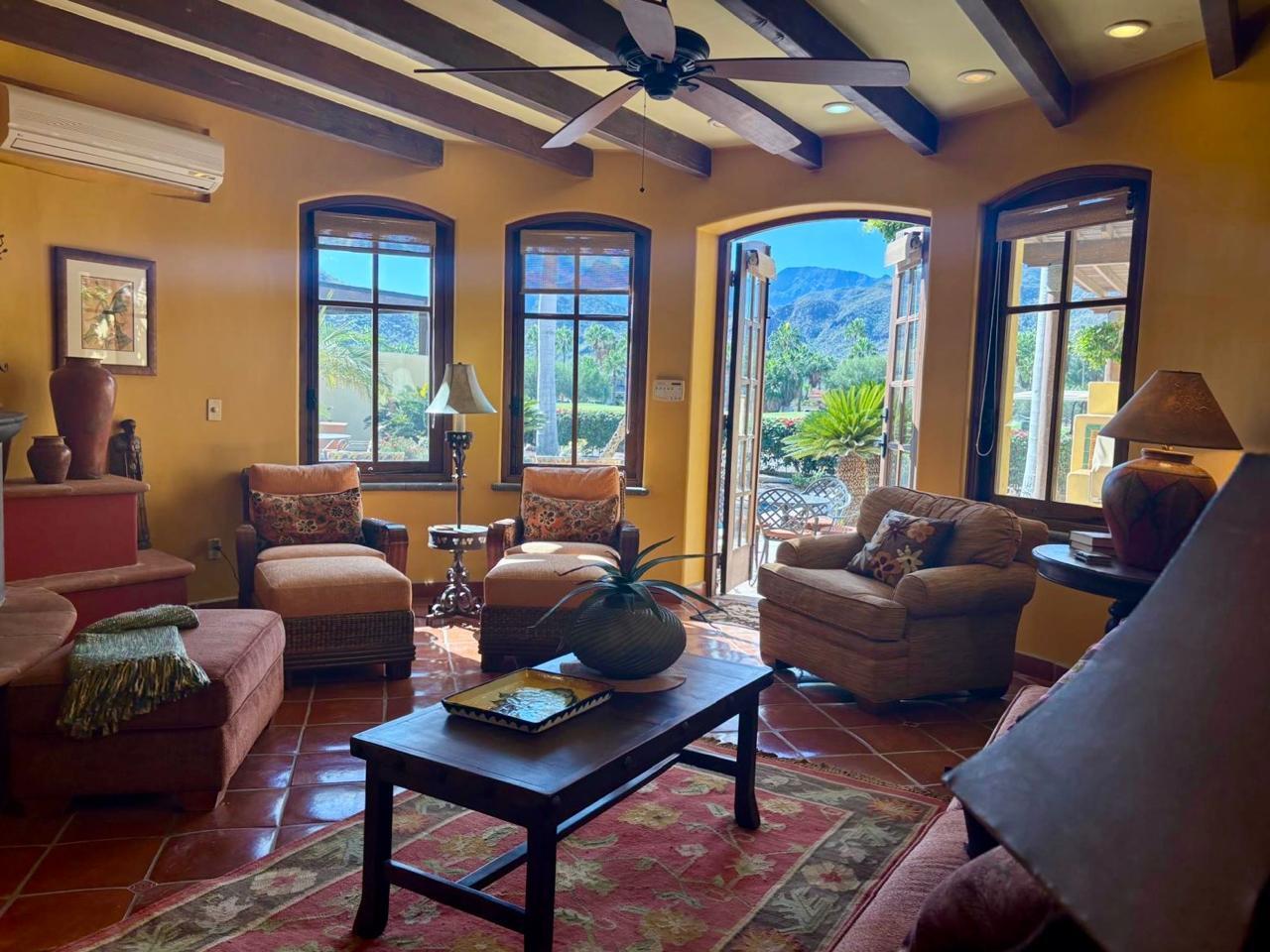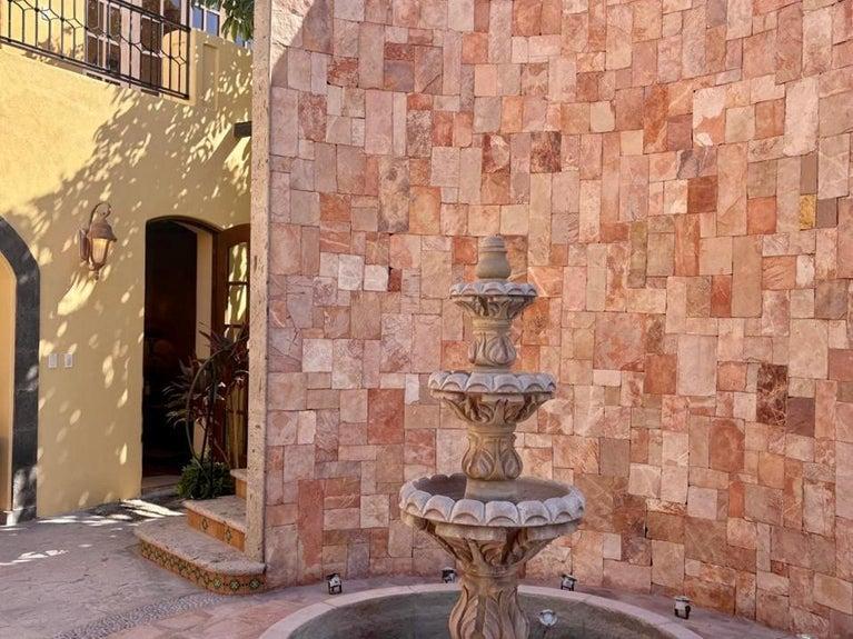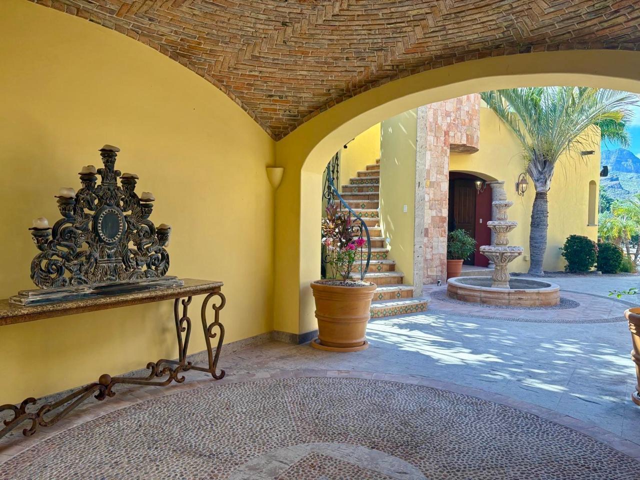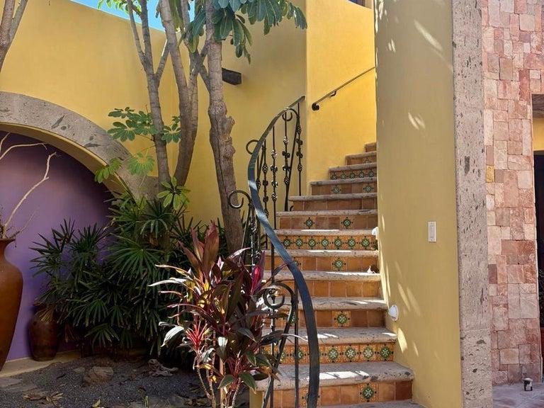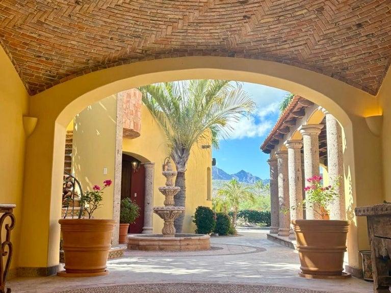 Step through the grand entry into a stunning interior courtyard framing endless views of the Sierra La Giganta and a lush garden with sparkling pool. Elegant yet inviting, the home features a study with artisanal brick and timber ceilings, and warm living and dining spaces filled with Mexican folk art. The gourmet kitchen shines with granite counters, custom cabinetry, Monogram appliances, copper sinks, and vibrant Spanish tile. The master suite opens to the pool and offers a spa-like bath with travertine finishes and soaking tub. An oversized garage provides generous storage. On the upper terrace, two guest suites and an art studio boast sweeping views of the Gulf of California—sunrises and sunsets that feel like living inside a masterpiece.