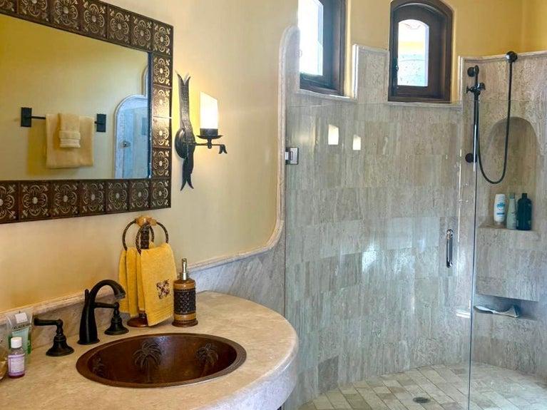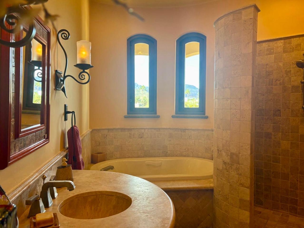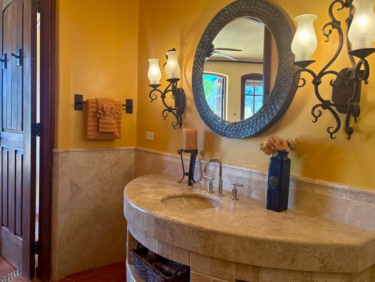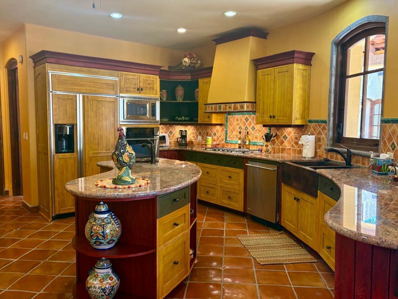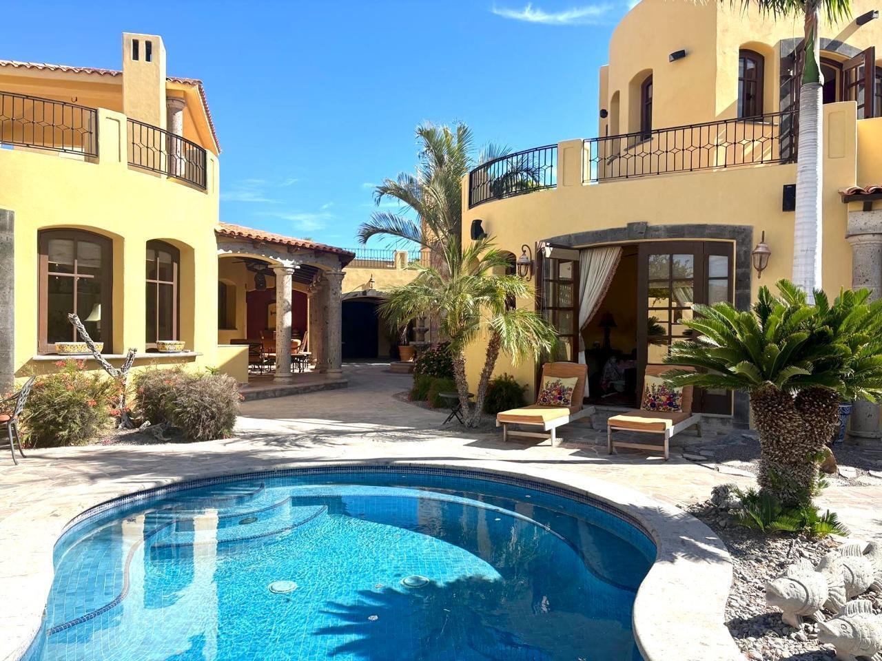 Step through the grand entry into a stunning interior courtyard framing endless views of the Sierra La Giganta and a lush garden with sparkling pool. Elegant yet inviting, the home features a study with artisanal brick and timber ceilings, and warm living and dining spaces filled with Mexican folk art. The gourmet kitchen shines with granite counters, custom cabinetry, Monogram appliances, copper sinks, and vibrant Spanish tile. The master suite opens to the pool and offers a spa-like bath with travertine finishes and soaking tub. An oversized garage provides generous storage. On the upper terrace, two guest suites and an art studio boast sweeping views of the Gulf of California—sunrises and sunsets that feel like living inside a masterpiece.