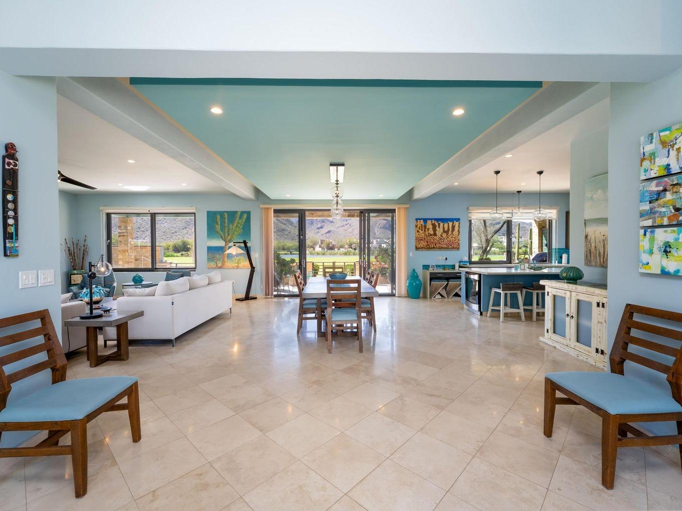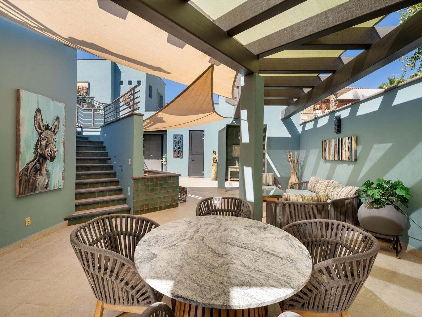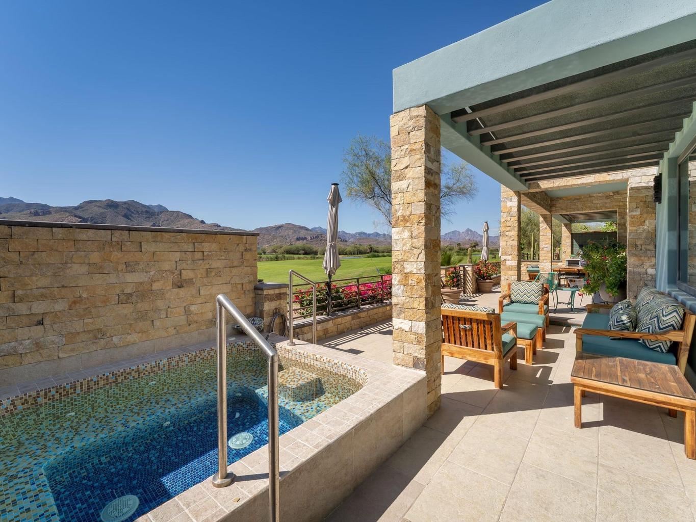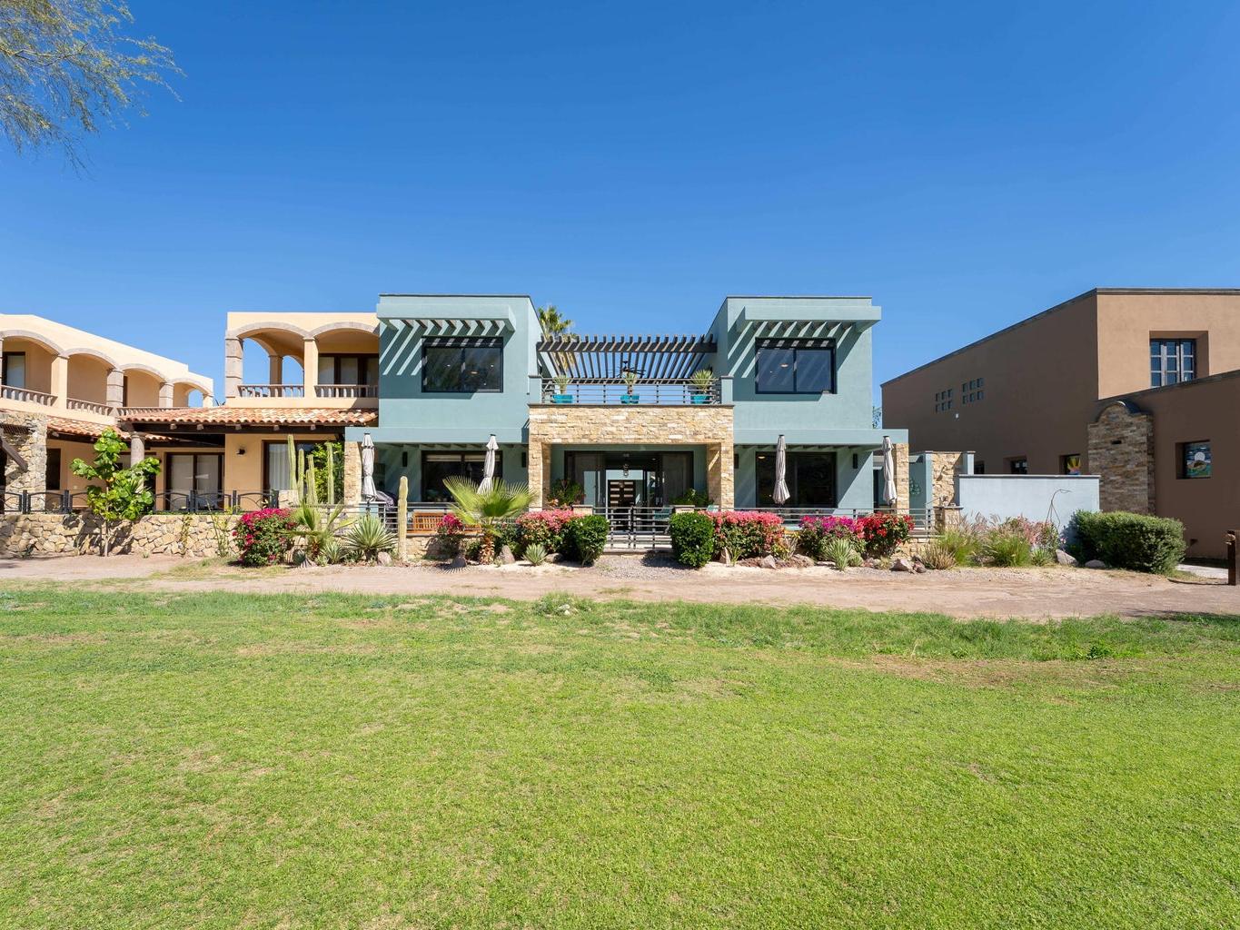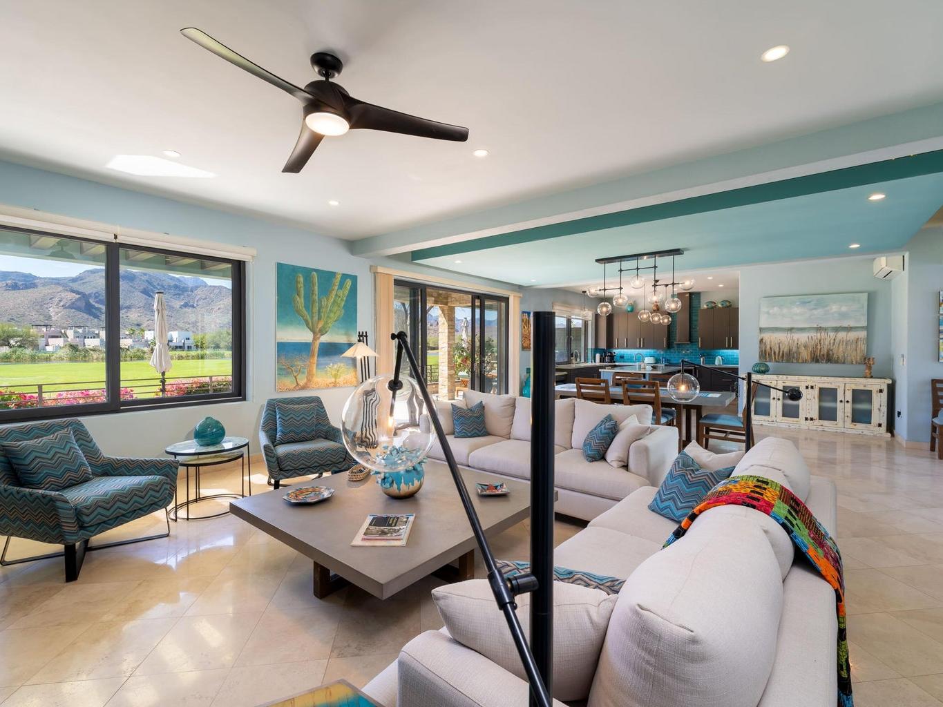 Experience luxury and serenity in this meticulously maintained custom two-story home with a third-floor viewing tower, set on the 10th fairway of the Loreto Bay Golf Course. Enjoy sweeping golf, lake, and Sierra de la Giganta views from nearly every room--perfect for sunrises, sunsets, and stargazing. The thoughtful layout features a ground-level primary suite plus guest bedroom, with two additional suites upstairs for privacy. Designed for effortless entertaining, the open living areas flow seamlessly outdoors to a private hot tub oasis. Premium finishes, whole-house water filtration, hurricane shutters, and full furnishings--including kayaks, bikes, and a golf cart--make this turnkey retreat exceptional.