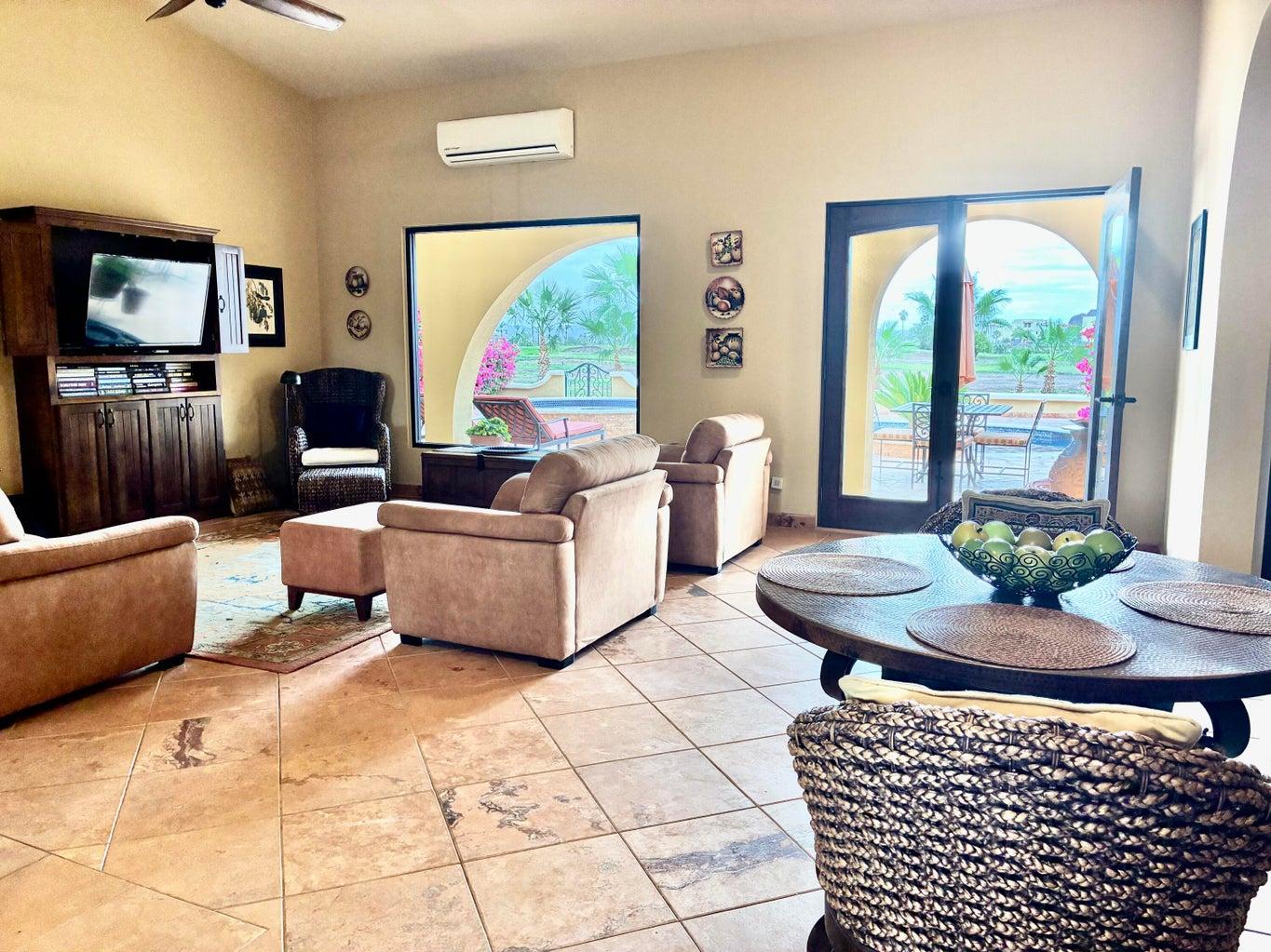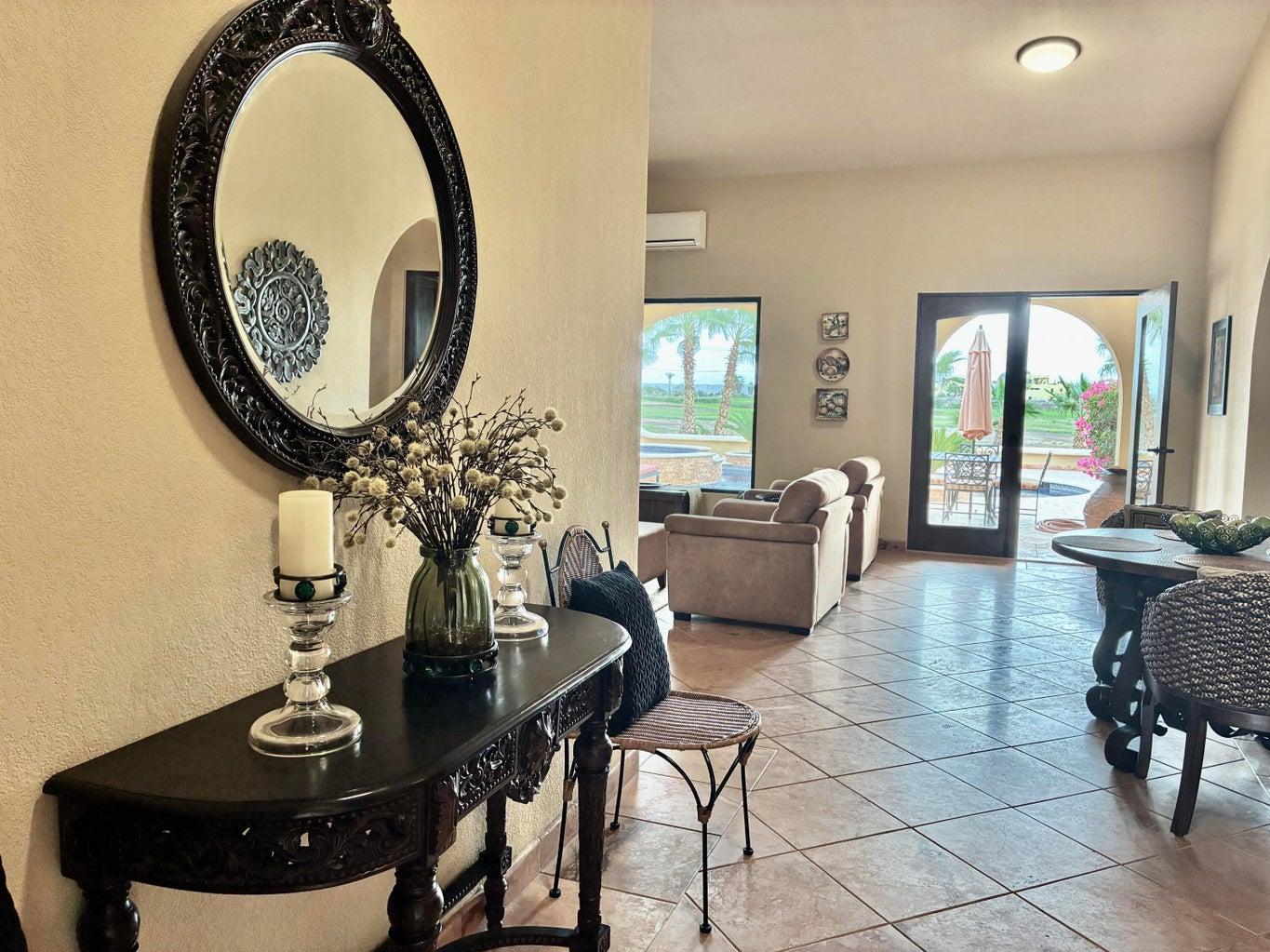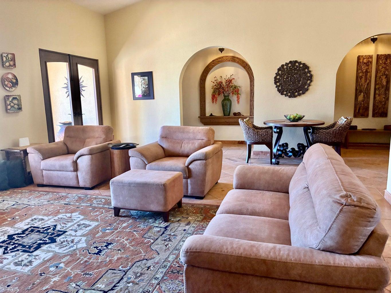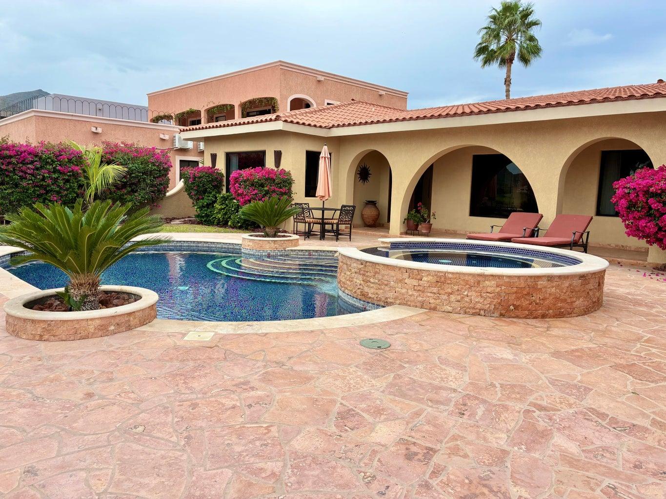 Casa Flores is a truly unique golf course residence located in the sought-after Cul De Sac of Returno Mission San Javier in Nopolo. This beautiful single-story home features 2 bedrooms and 3 bathrooms, offering breathtaking views of the golf course, a private pool, a spacious utility room, a garage, and office space.