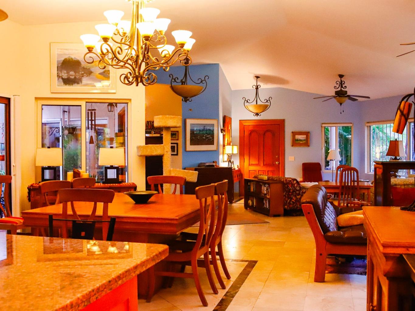 Casa de los Tres Leones is located in Nopoló, Loreto, Baja California Sur. The property offers two bedrooms plus an independent apartment, ideal for guests or rental use, and four bathrooms, all with showers, including a master bath with a soaking tub.