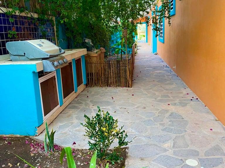 The upstairs unit mirrors the layout and amenities and offers a large ocean-view deck. Recent upgrades include a new generator, solar panels, a new boiler, and a freshly painted exterior. The lush outdoor area features palm trees, bougainvillea, and fruit trees. This is a true turnkey beachside property with excellent potential for customization.