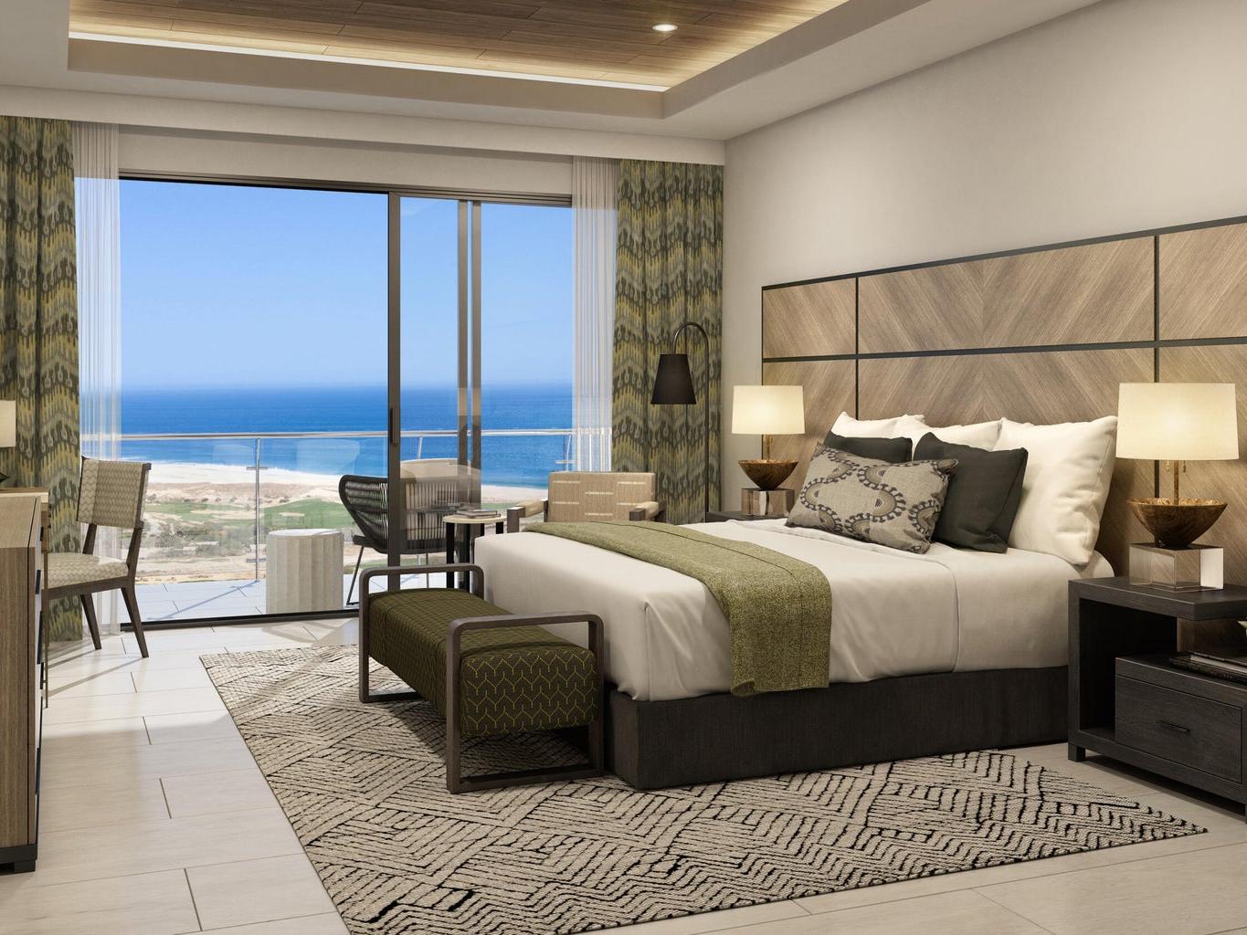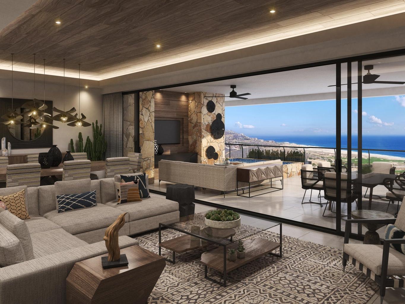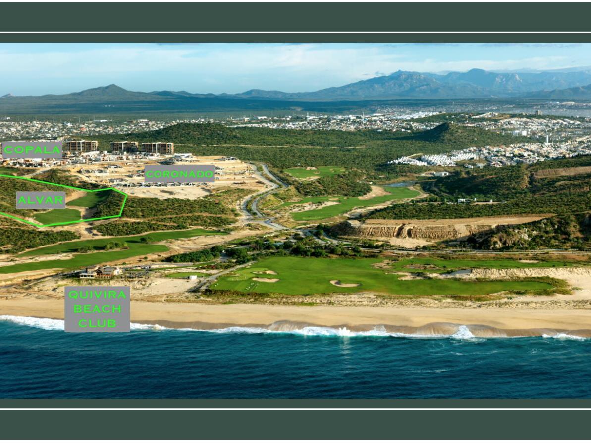 Alvar is an exclusive enclave of single-level luxury residence condos designed by the firm that designed the St Regis Los Cabos. There are just 68 residences with only 2 per floor in 7 separate buildings. Elevators service every level and the parking garage as well. Residences come complete with high-end stainless appliances. Each residence has 2 parking spots in the parking garage as well as a large storage locker, and also a golf cart parking slot in a shaded area in the entrance to the building. Every condo comes with amazing ocean views and some golf fairway views. The private clubhouse has a gym and pools and a jacuzzi as well as an admin office/business center and concierge. Owners of Alvar have a special owners rate for the two Quivira Nicklaus golf courses, spa and rest too.