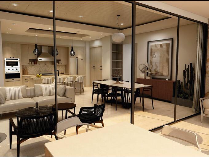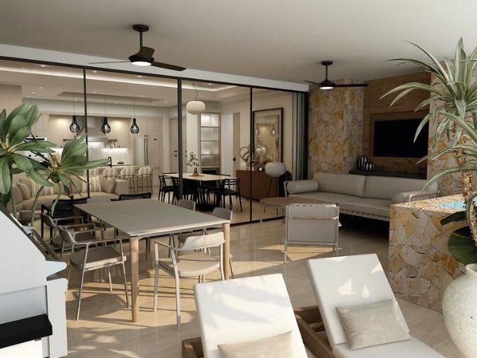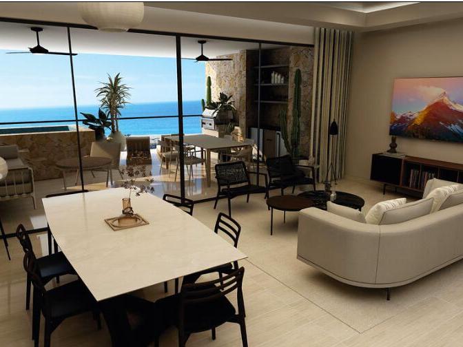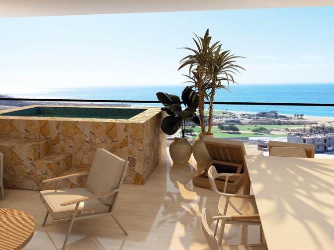 Luxury penthouse condominium located in Alvar at Quivira Los Cabos, offering an elevated lifestyle within a prestigious master-planned community. This spacious residence features four bedrooms, four full bathrooms plus a powder room, open-concept living and dining areas, a large modern kitchen, family room, laundry area, and elevator access. Expansive terraces provide exceptional indoor-outdoor living and panoramic views, ideal for entertaining. Approximate total area is 358 m² (3,825 sq ft), including generous outdoor spaces. Owners enjoy access to Quivira's private Beach Club, Jack Nicklaus Signature Golf Course with preferred rates and no mandatory membership, Q-Life wellness program, exclusive Pueblo Bonito dining and spa discounts, and 24/7 security.
