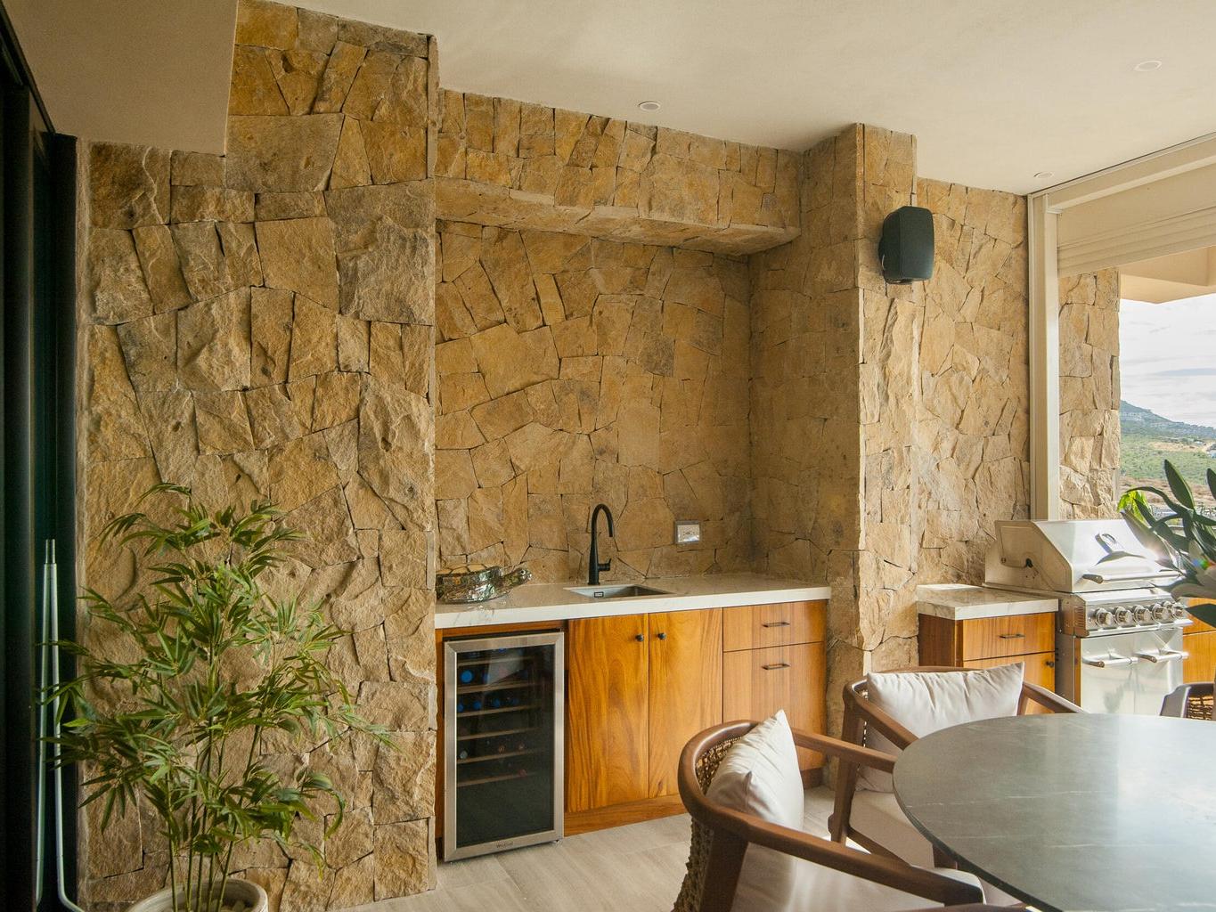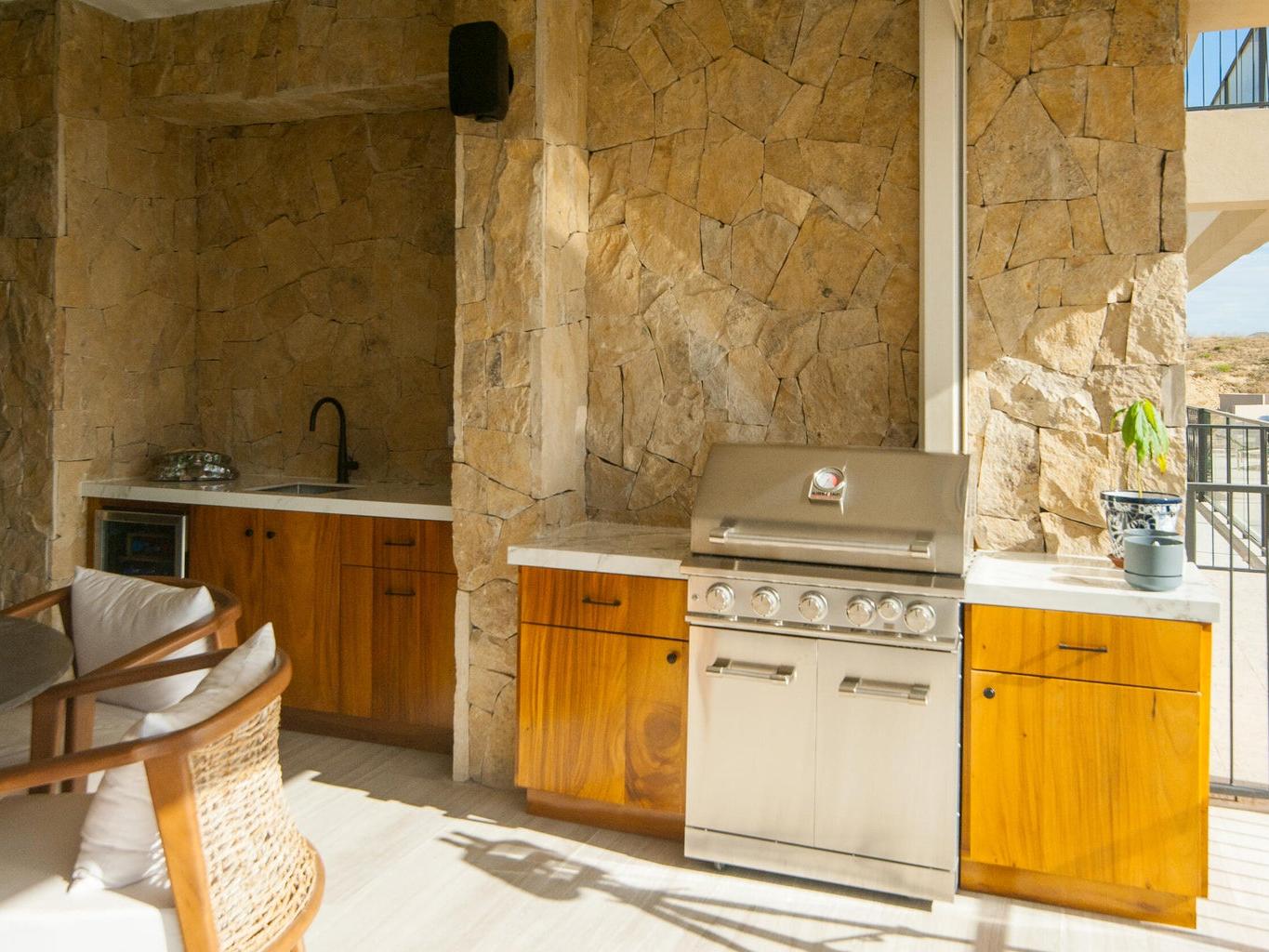 Designed for the ultimate entertainer, the outdoor oasis is fully equipped with a built-in kitchen