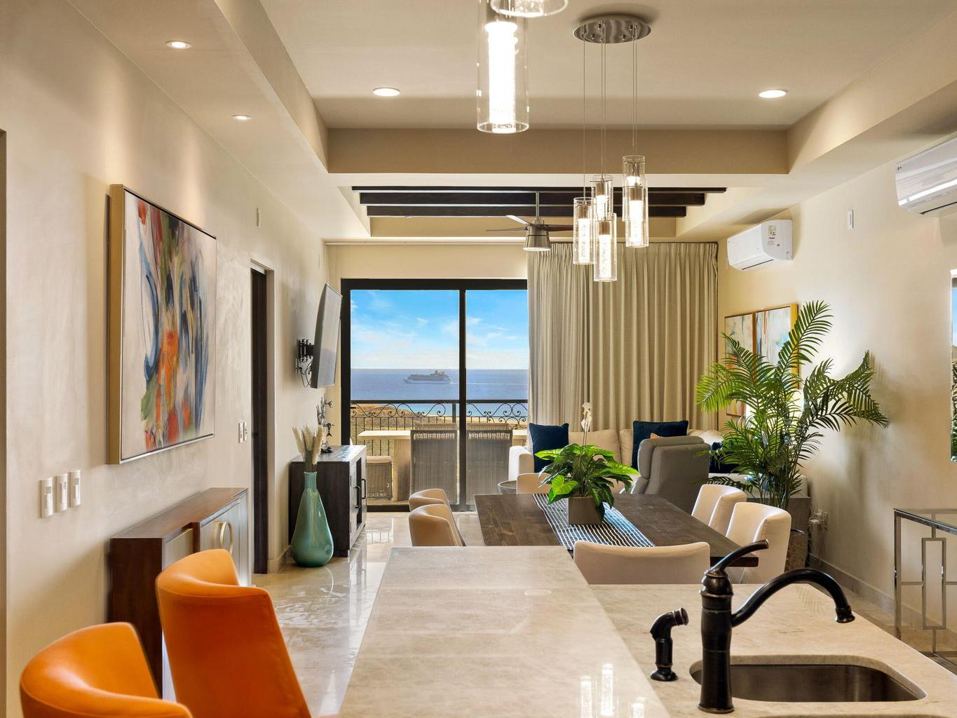 Resort-style living awaits in this fifth-floor, ocean-view condo located in the newest tower in Copala within the prestigious Quivira community. This like-new residence offers two bedrooms and two baths, featuring elegant furnishings and décor and is completely turn-key and move-in ready.