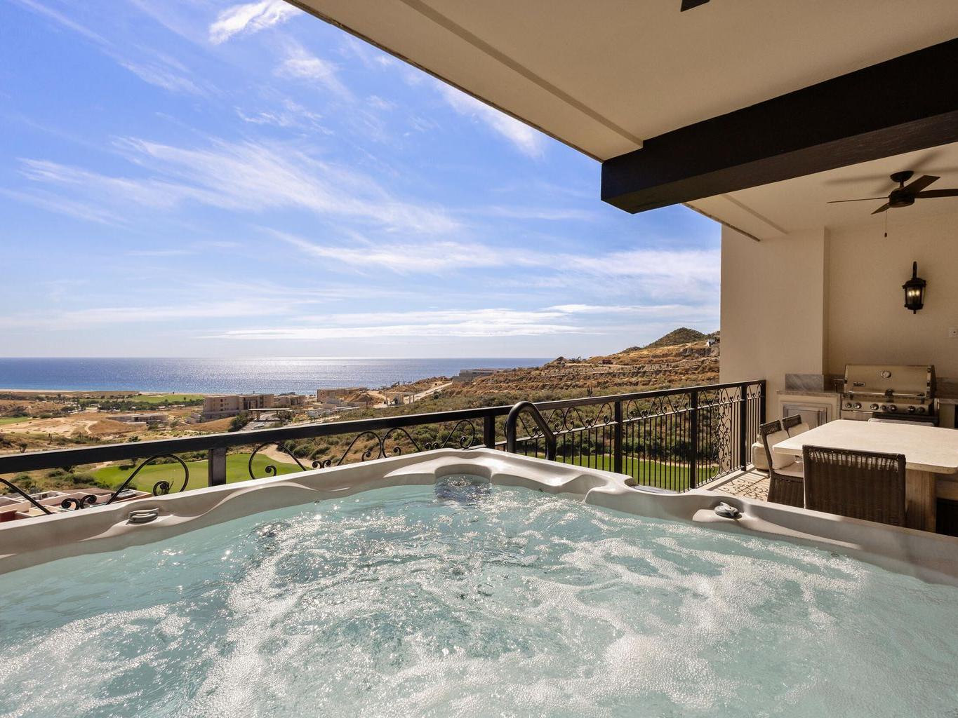 Enjoy unobstructable views of the ocean and the Jack Nicklaus Signature golf course from the spacious balcony, complete with a jetted spa, Weber BBQ, and wine fridge, perfect for entertaining or relaxing at sunset. The master bedroom features direct walkout access to the balcony and ocean views, while the comfortable guest room provides privacy for visitors.