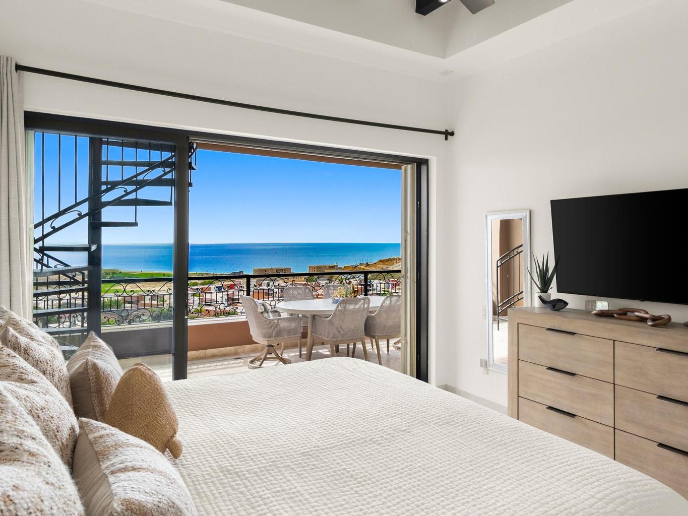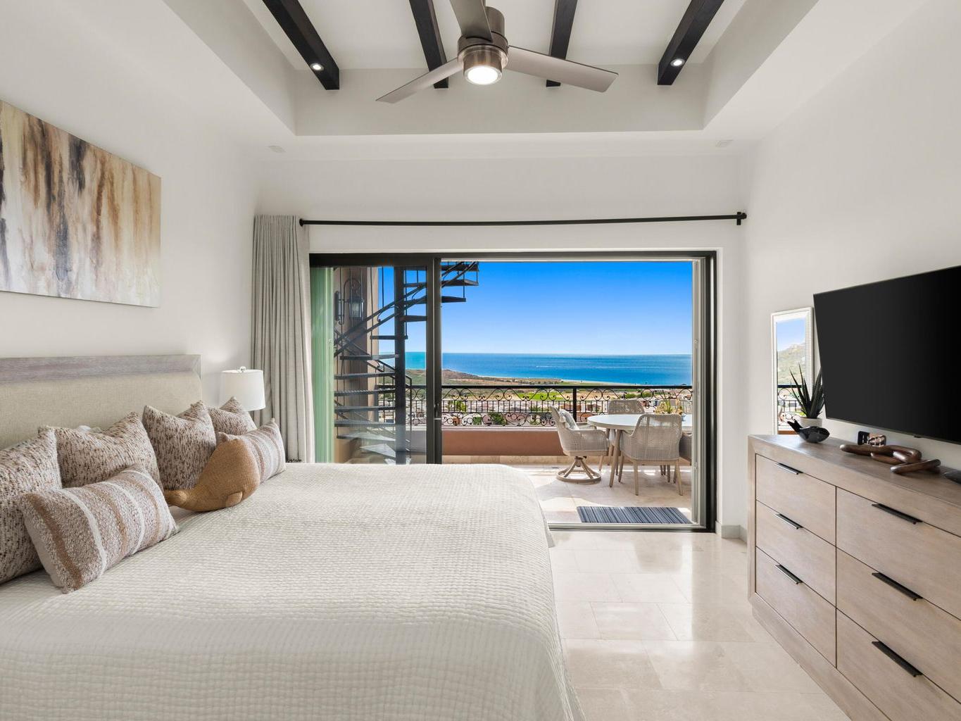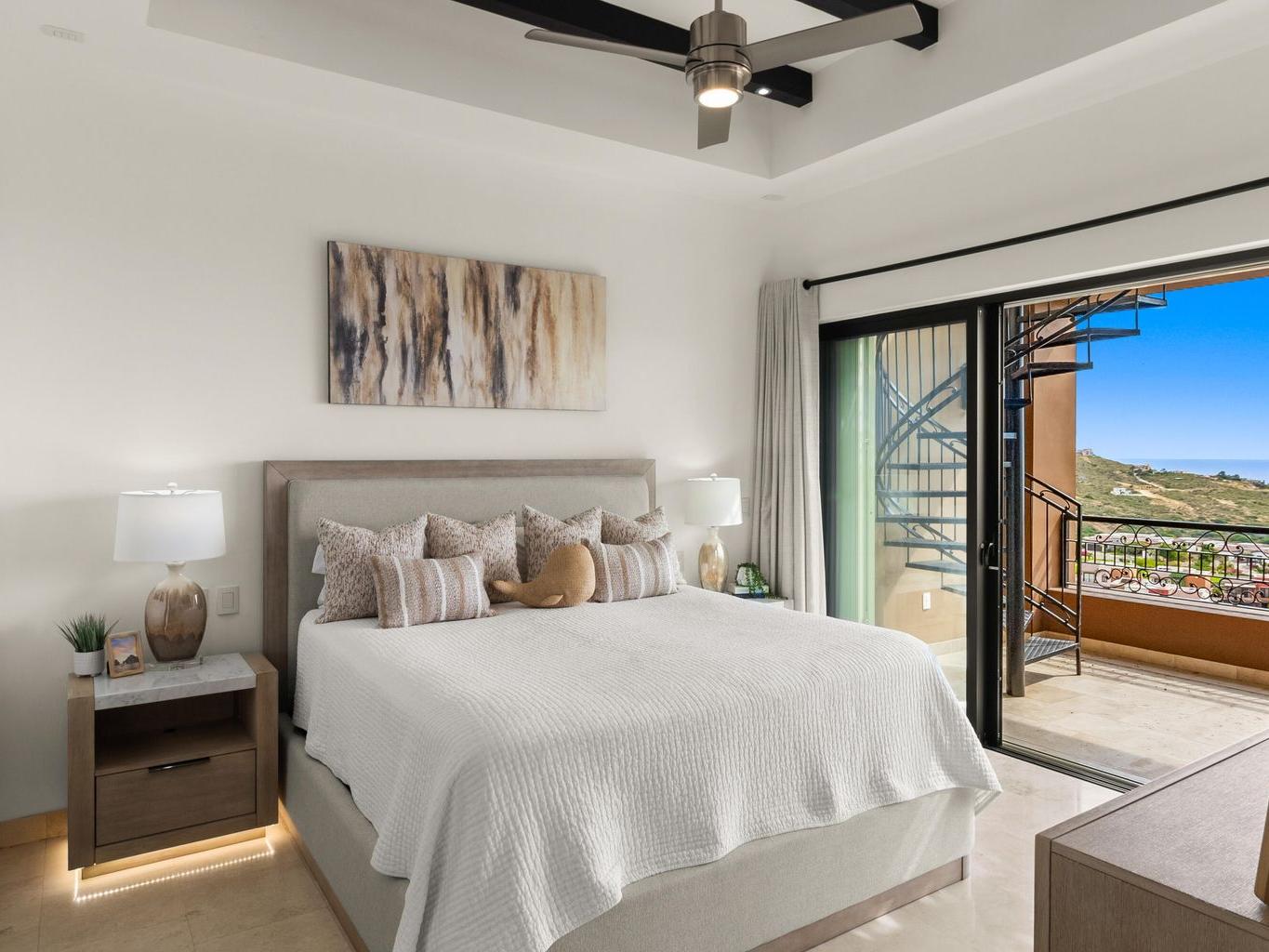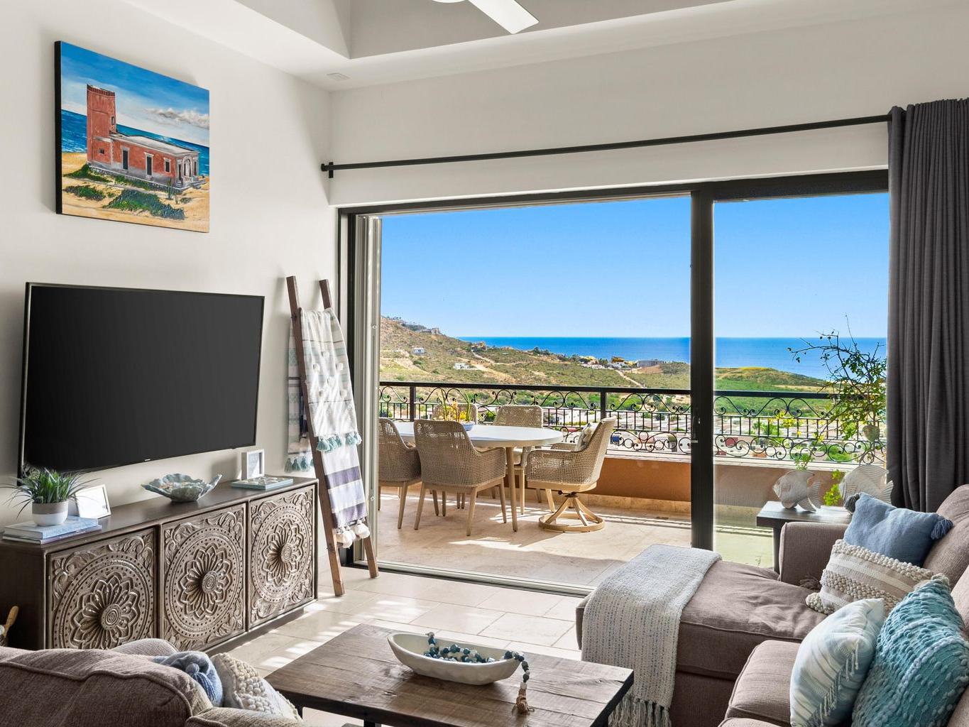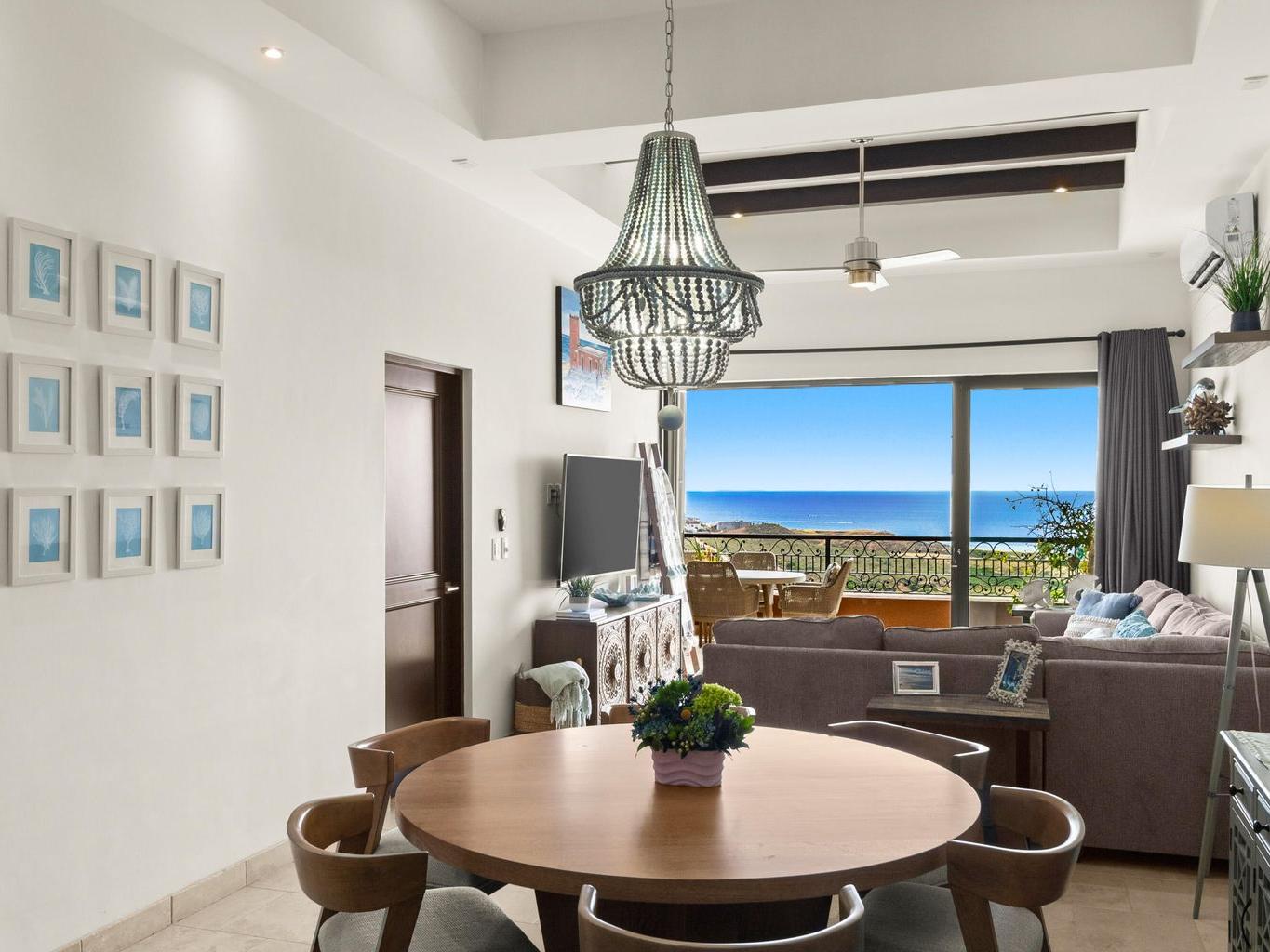 The home spans approximately 1,291 square feet of air-conditioned interior space, complemented by an impressive 1,904 square feet of outdoor decks and patios—creating a layout designed around the Cabo lifestyle, where entertaining and relaxation extend seamlessly outdoors.