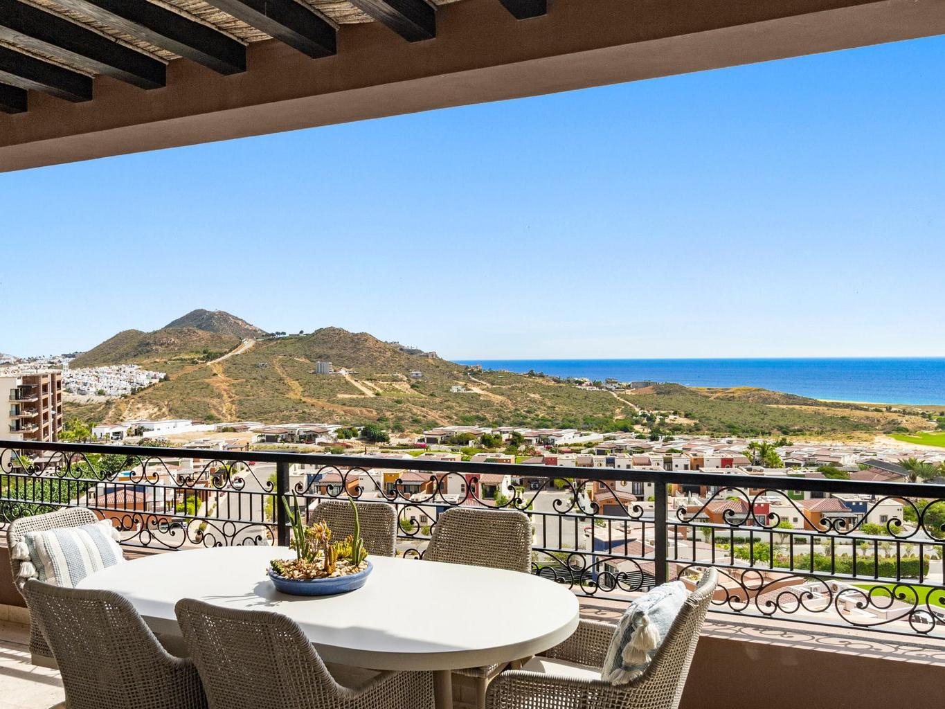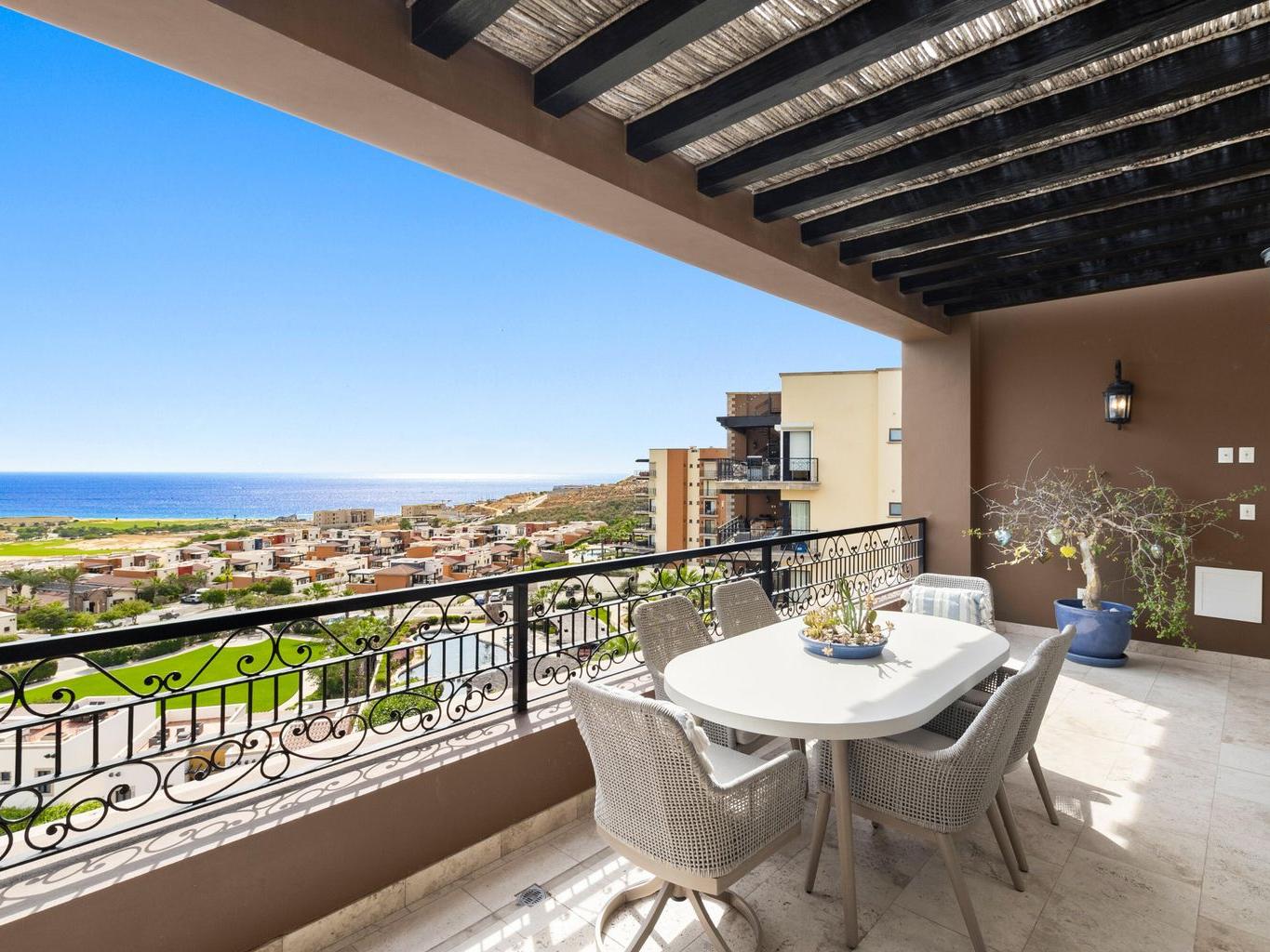 Set within Copala at Quivira Los Cabos, this fully furnished penthouse residence combines indoor comfort with expansive outdoor living, offering open Pacific Ocean and Quivira Golf Course views from both its main terrace and private rooftop.