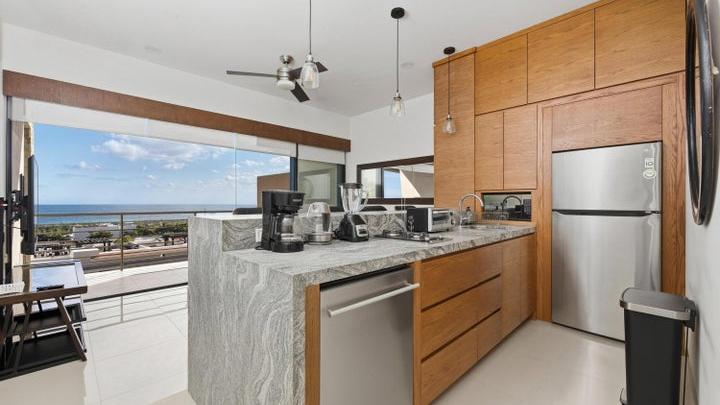 This beautifully designed condominium at Copala offers an exceptional layout that blends tranquility, sophistication, and functionality. Located on the ground floor of Tower 3, this 3-bedroom, 2.5-bath residence is ideal for full-time living, a second home, or hosting visiting family and friends. Two bedrooms open directly to the garden, just steps from a nearby swimming pool. The condo features an expansive open terrace, perfect for outdoor dining and lounge areas, enhancing seamless indoor-outdoor living. Owners enjoy exclusive access to the Copala Club House with movie theater, gym, deli, swimming pool, and infinity-view amenities.