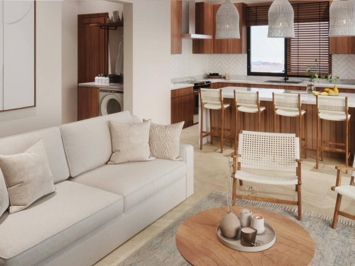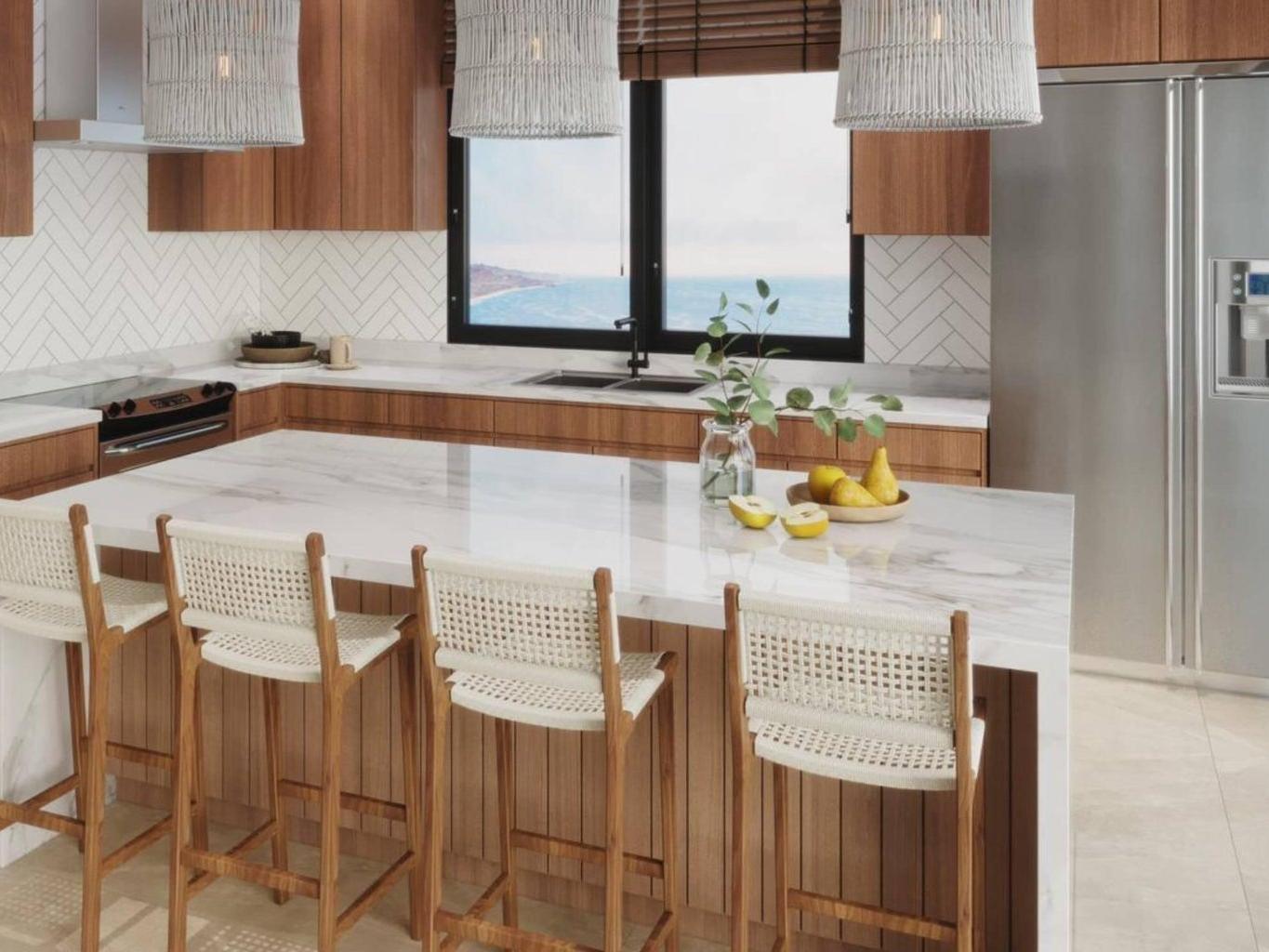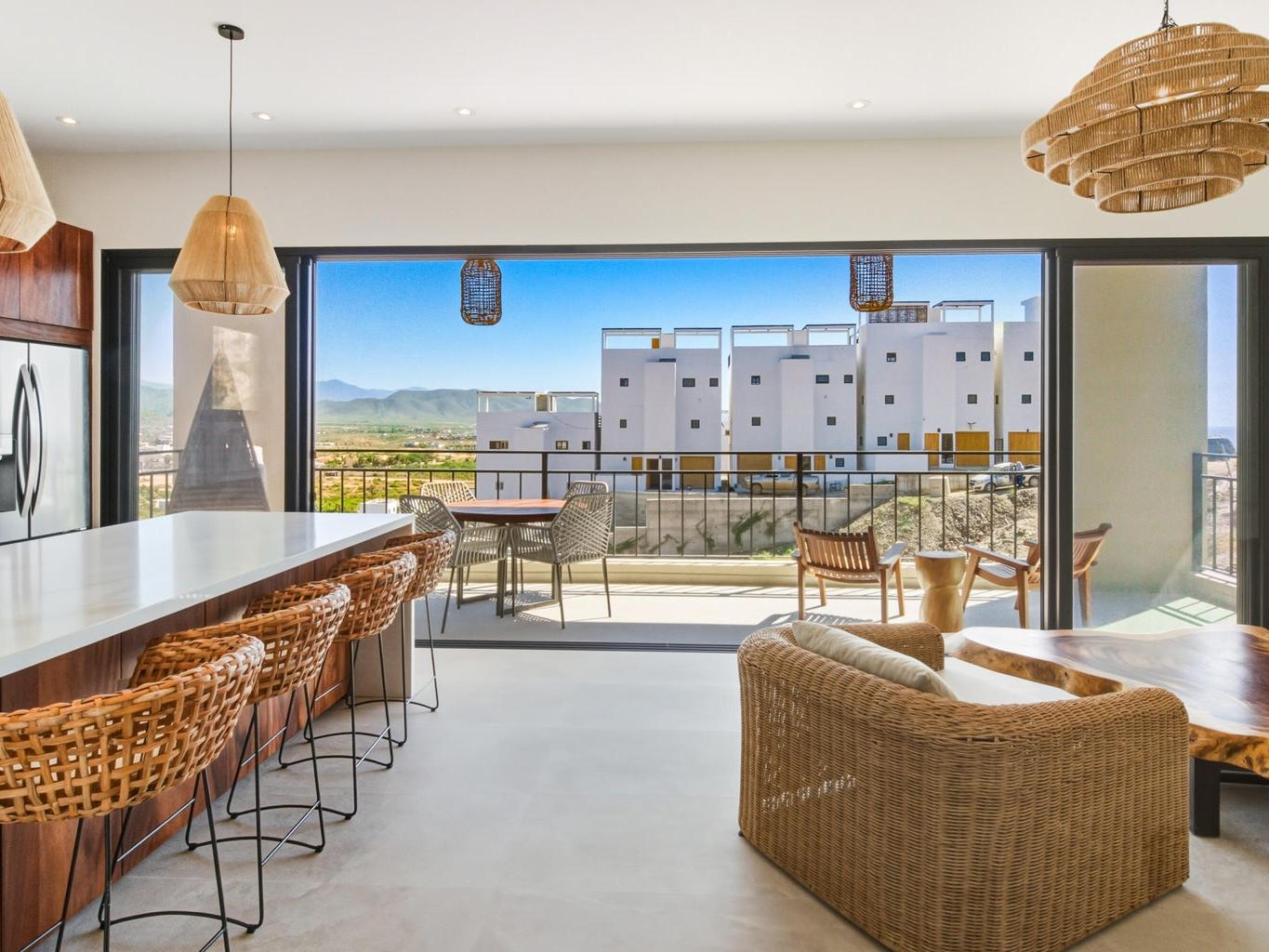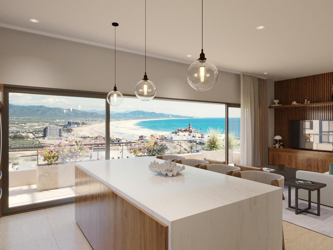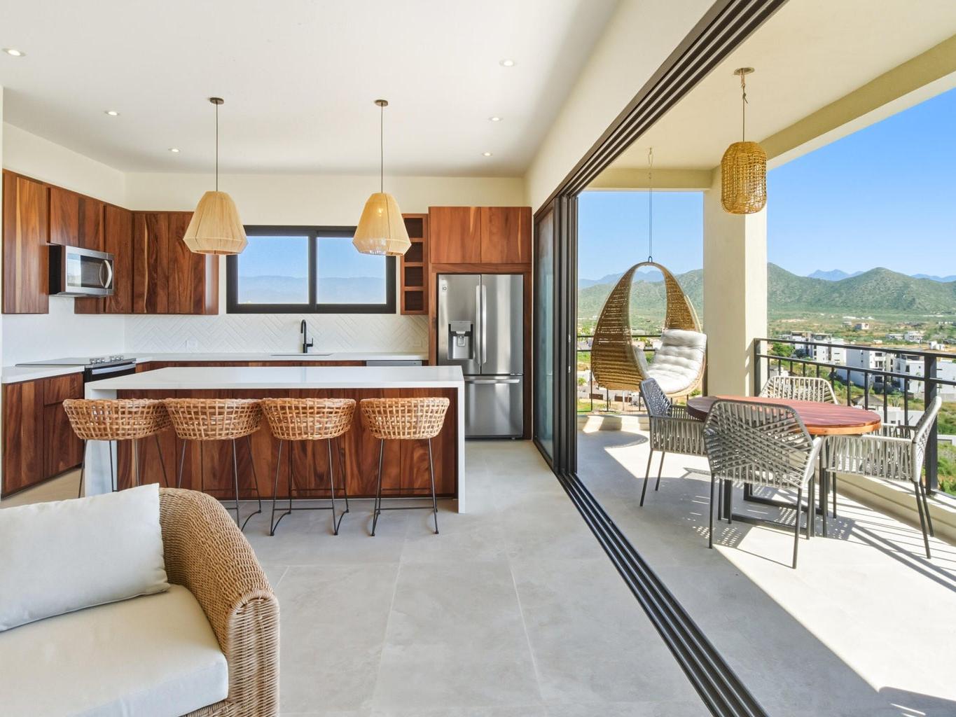 Oversized sliding doors open up to a spacious patio and Views of the Pacific, this featured villa brings the outdoors into a bright, open-concept living space. Natural perota wood cabinetry, premium fixtures, and modern Baja design elements add warmth and sophistication throughout.