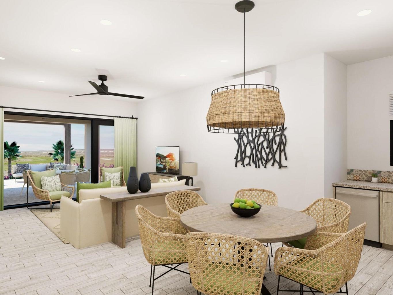 This is a top floor 3 bedroom unit with 3 baths. Each bedroom has a large window or sliding door to allow lots of light in. There is an openable window above the kitchen sink. Ceiling in living area is vaulted and gives a feel of luxury. L shape terrace is deep on living room side and can accommodate a table for 8 or even 10. All preparations ready for outdoor grilling kitchen or can be installed as an upgrade. Stylish cabinetry and contemporary flooring and paint scheme. Choice of two backsplashes and two countertops in kitchen. Also an option for flooring upgrade. Comes with stainless appliances and washer and dryer. Inverter mini-split AC's ensure hassle free efficient cooling. Attractive hand fabricated steel railings on terrace from the view of 6 Nicklaus Signature fairways.