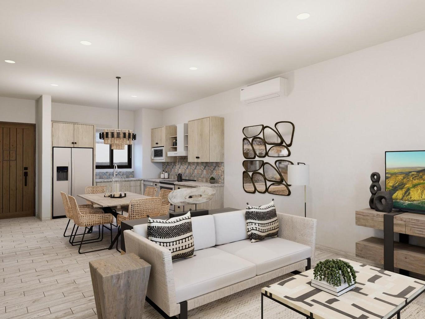 This is a top floor 2 bedroom unit with 2 baths. Each bedroom has a large window or sliding door to allow lots of light in. There is an openable window above the kitchen sink. Ceiling in living area is vaulted and gives a feel of luxury. L shape terrace is deep on living room side and can accommodate a table for 8 or even 10. All preparations ready for outdoor grilling kitchen or can be installed as an upgrade. Stylish cabinetry and contemporary flooring and paint scheme. Choice of two backsplashes and two countertops in kitchen. Comes with stainless appliances and washer and dryer. Inverter mini-split AC's ensure hassle free efficient cooling. Attractive hand fabricated steel railings on terrace from the view of 6 Nicklaus Signature fairways.