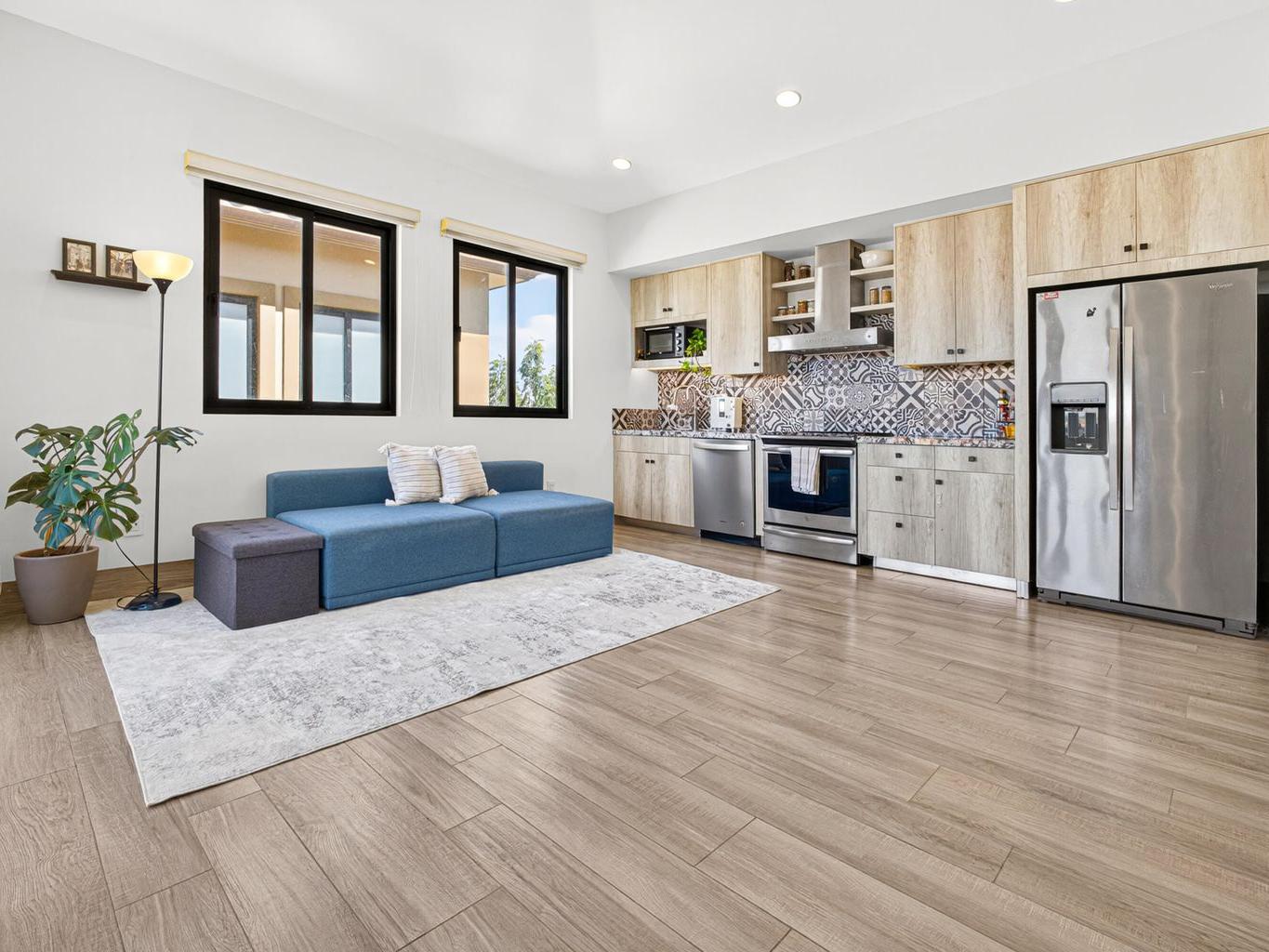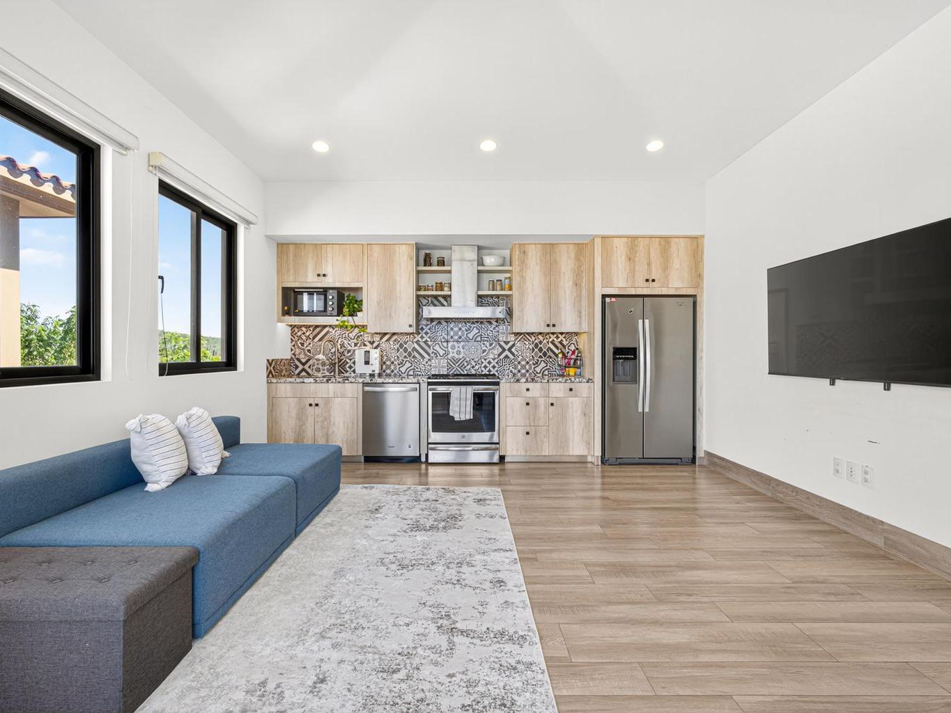 This elegant condo features an open-concept design, with a spacious living room and two terraces perfect for entertaining guests or relaxing with family.