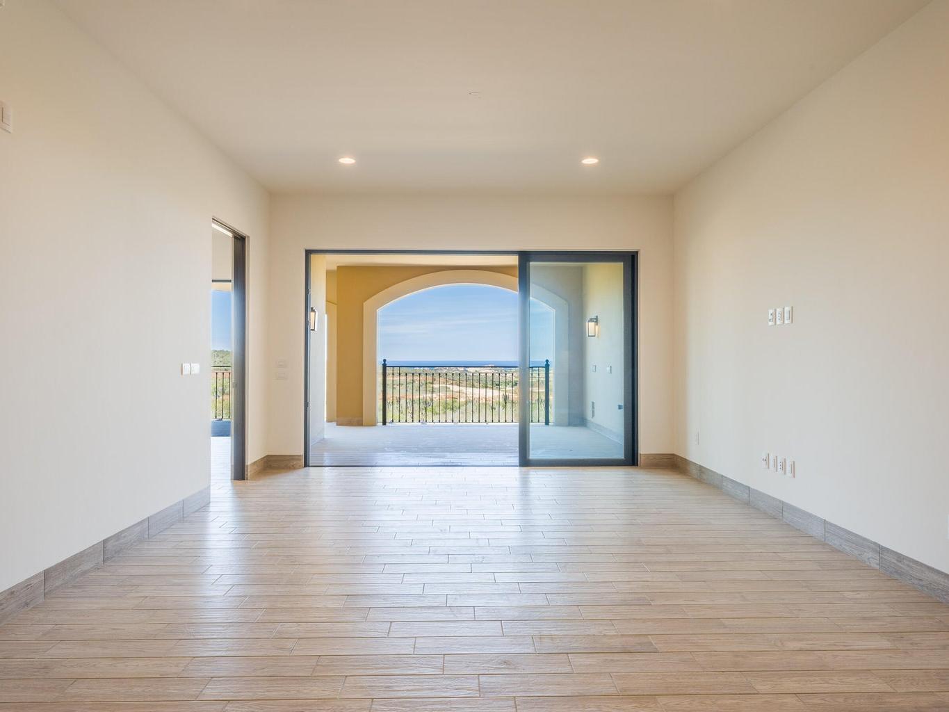 This brand new, never lived in, 2 bedroom 2 bath condo sits right in the middle of the property, with unobstructed views of not only the new golf course under construction, but the ocean, and the beautiful Cabo sunsets. Pool with BBQ area in front soon to be delivered. Other amenities already built such as one of 3 pools and gym. Owners have access to world-class amenities such as globally ranked Quivira Golf Club at a special rate, owner's only beach club, and +20 restaurants and spas with discounts.