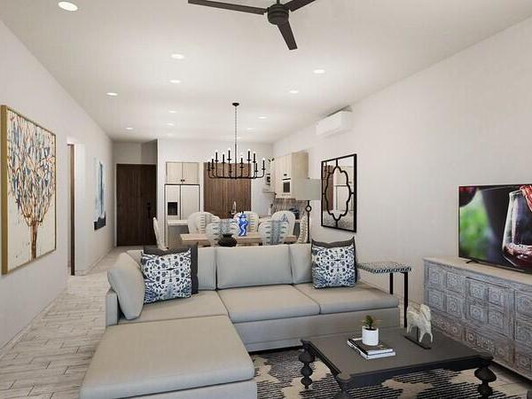 Discover relaxed luxury living in Tower 4 of Mavila at Quivira Los Cabos. This elegant two-bedroom condominium offers a bright and functional layout featuring a comfortable living and dining area, a modern kitchen, and an in-unit laundry center.