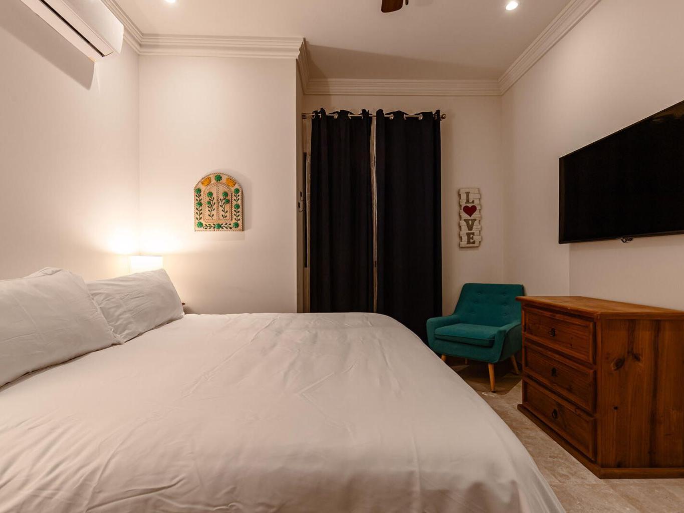 Welcome to this charming 1-bedroom, 1-bathroom ground-floor condo located in the heart of downtown Todos Santos. This unit offers more room than the average 1-bedroom condo, providing a comfortable and relaxing space to call home. The open-concept living area flows effortlessly into a private outdoor patio, perfect for dining al fresco or soaking up the warm Baja sunshine. Enjoy the added luxury of a pool, jacuzzi, and convenient underground parking. With an unbeatable location, you're just steps away from Todos Santos' top restaurants, shops, and galleries, all while enjoying the tranquility and privacy of this delightful condo.