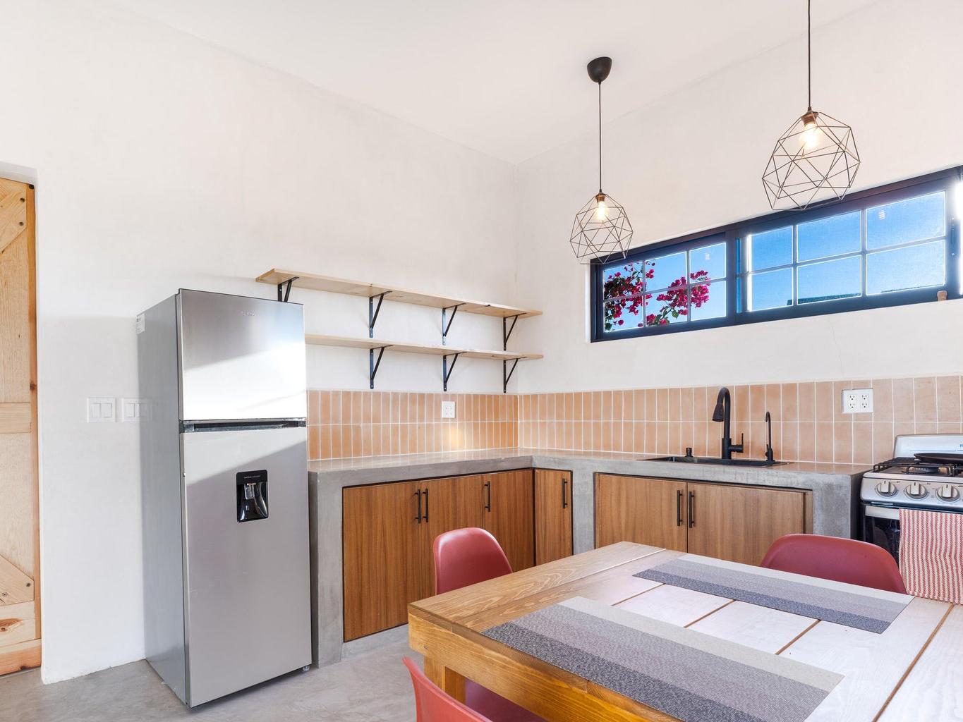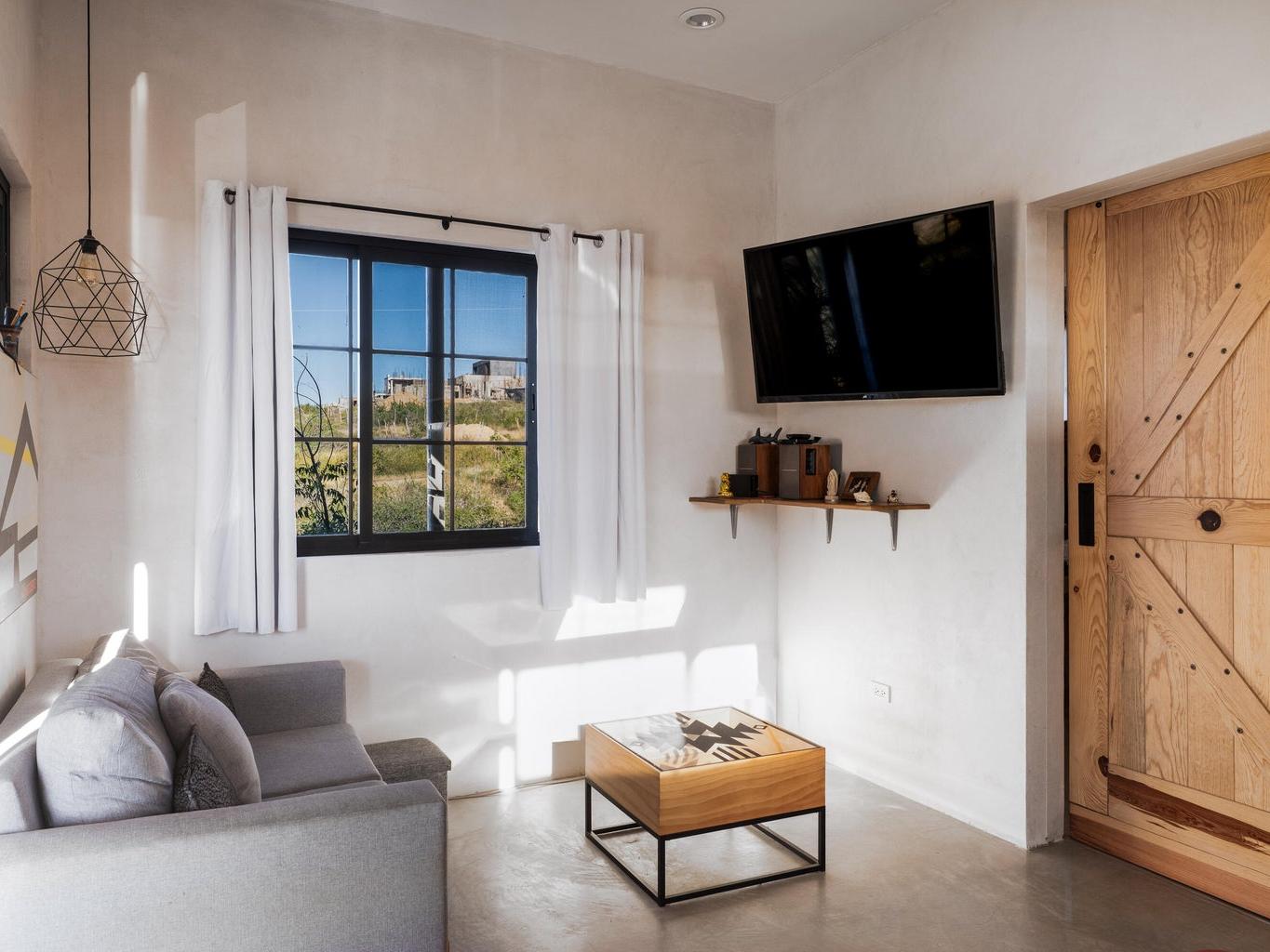 This well-designed 1-bed, 1-bath casita sits on a fully fenced 1,000 m² lot in the quiet hills of L'Ahorcadita. Completed in January 2024, it offers a thoughtful layout with a built-in work desk, outdoor shower, generous bodega storage, and a separate space for the gas and tankless water heater.