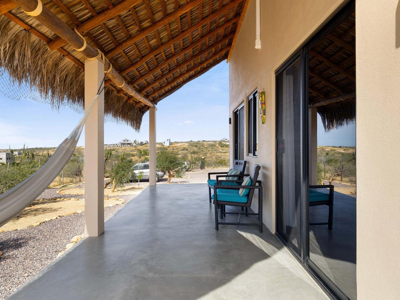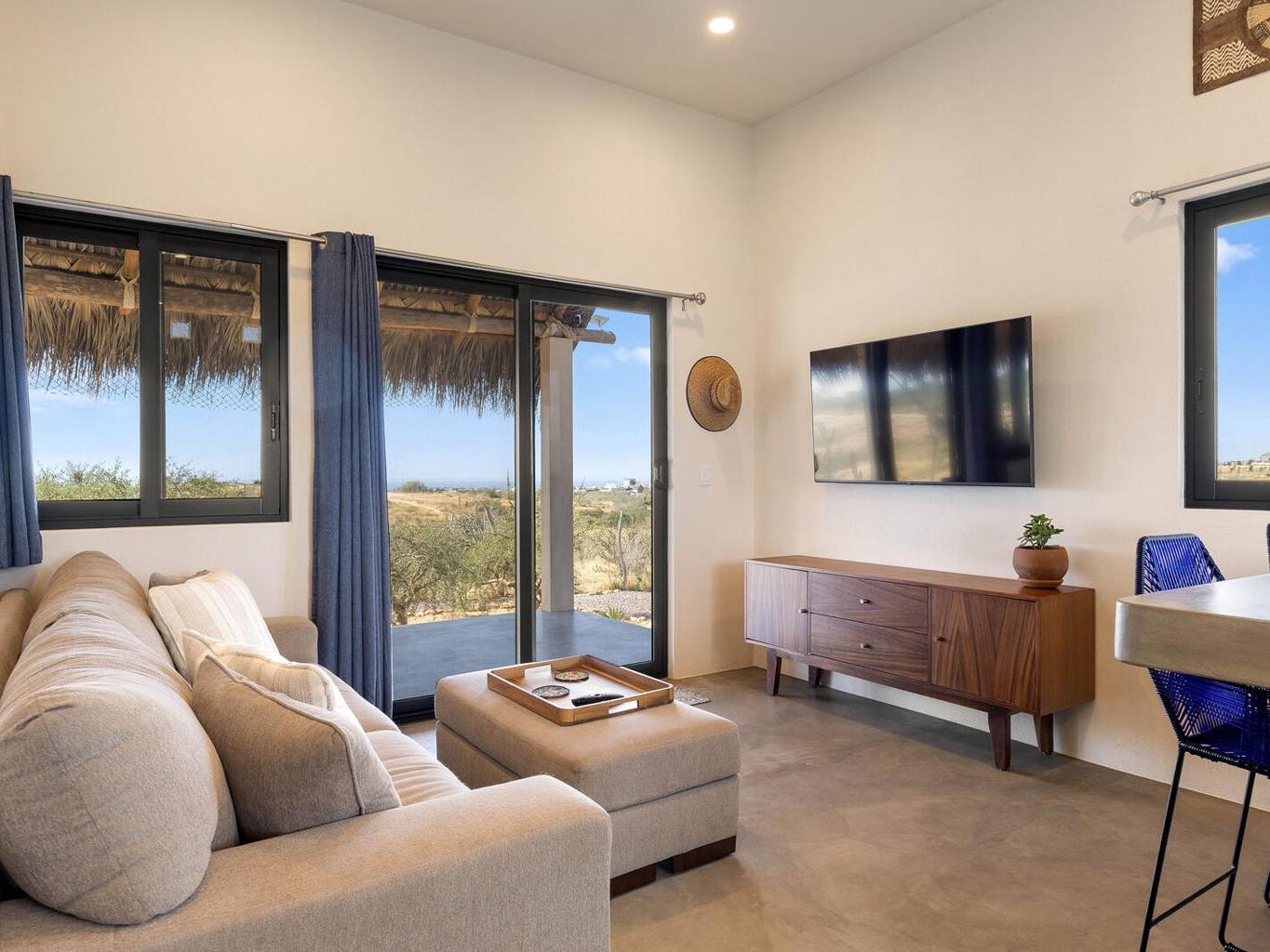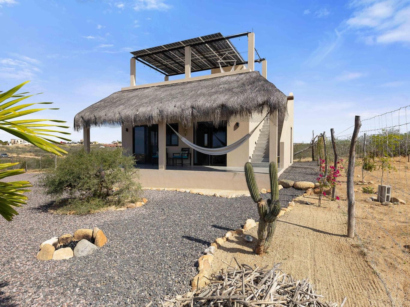 Experience effortless off-grid living in this beautifully designed one-bedroom casita with ample room to expand. Fully solar-powered and move-in ready, the home comes furnished and features a private patio and roof deck with sweeping 360° views of ocean and mountains. Inside, enjoy Parota wood cabinetry, modern comfortable furnishings, a laundry/bodega, and large windows and glass doors that invite natural light and cooling breezes. Fans and A/C ensure year-round comfort.