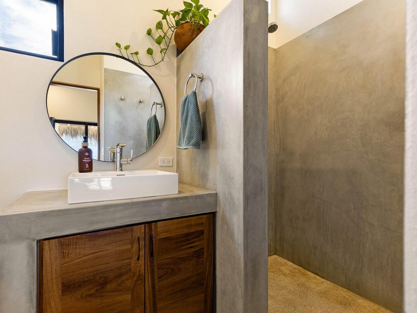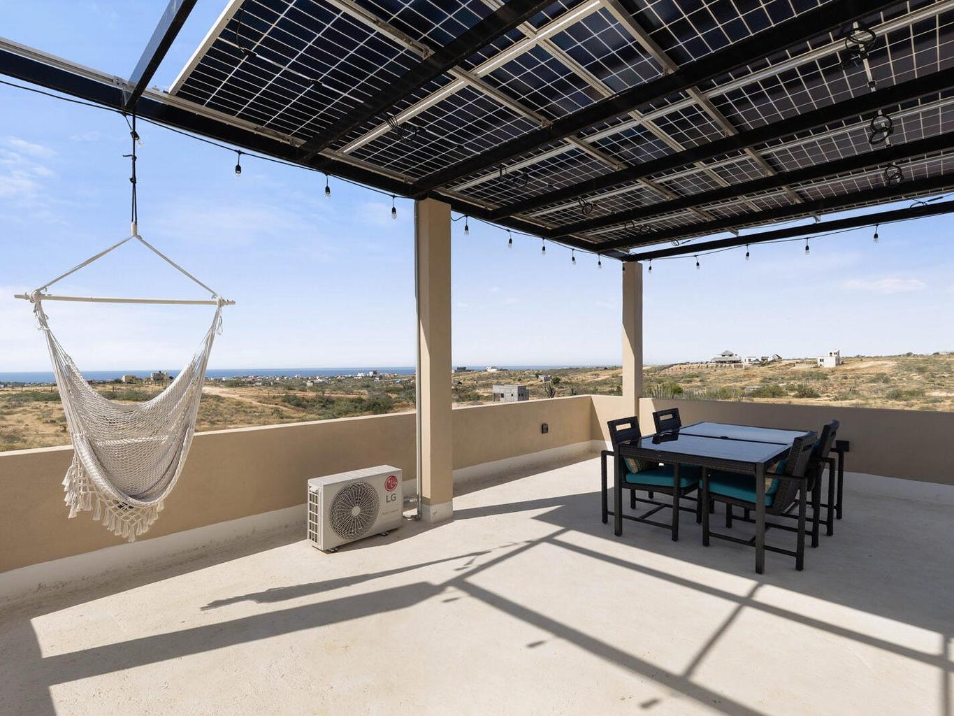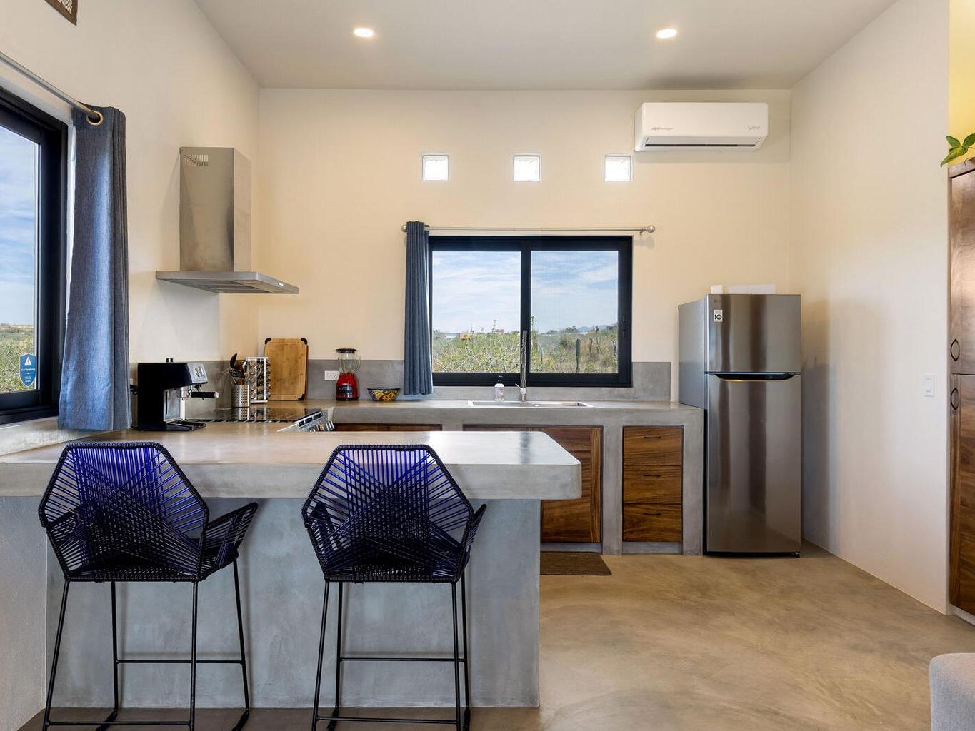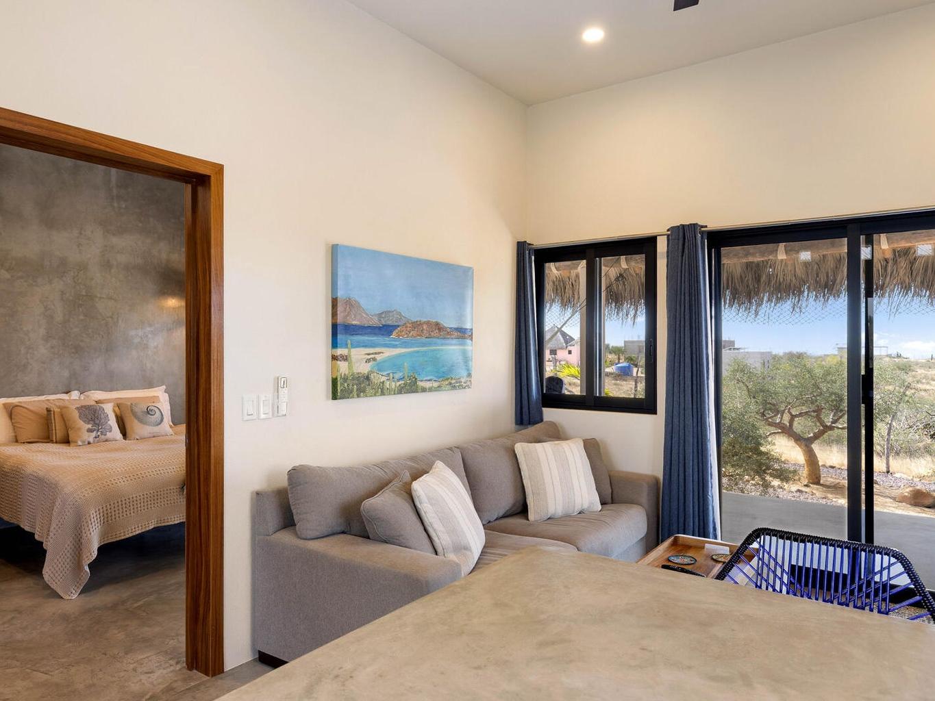 Experience effortless off-grid living in this beautifully designed one-bedroom casita with ample room to expand. Fully solar-powered and move-in ready, the home comes furnished and features a private patio and roof deck with sweeping 360° views of ocean and mountains. Inside, enjoy Parota wood cabinetry, modern comfortable furnishings, a laundry/bodega, and large windows and glass doors that invite natural light and cooling breezes. Fans and A/C ensure year-round comfort.