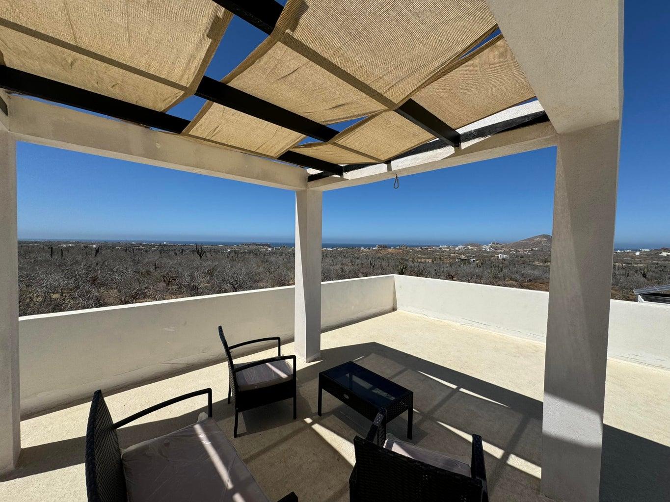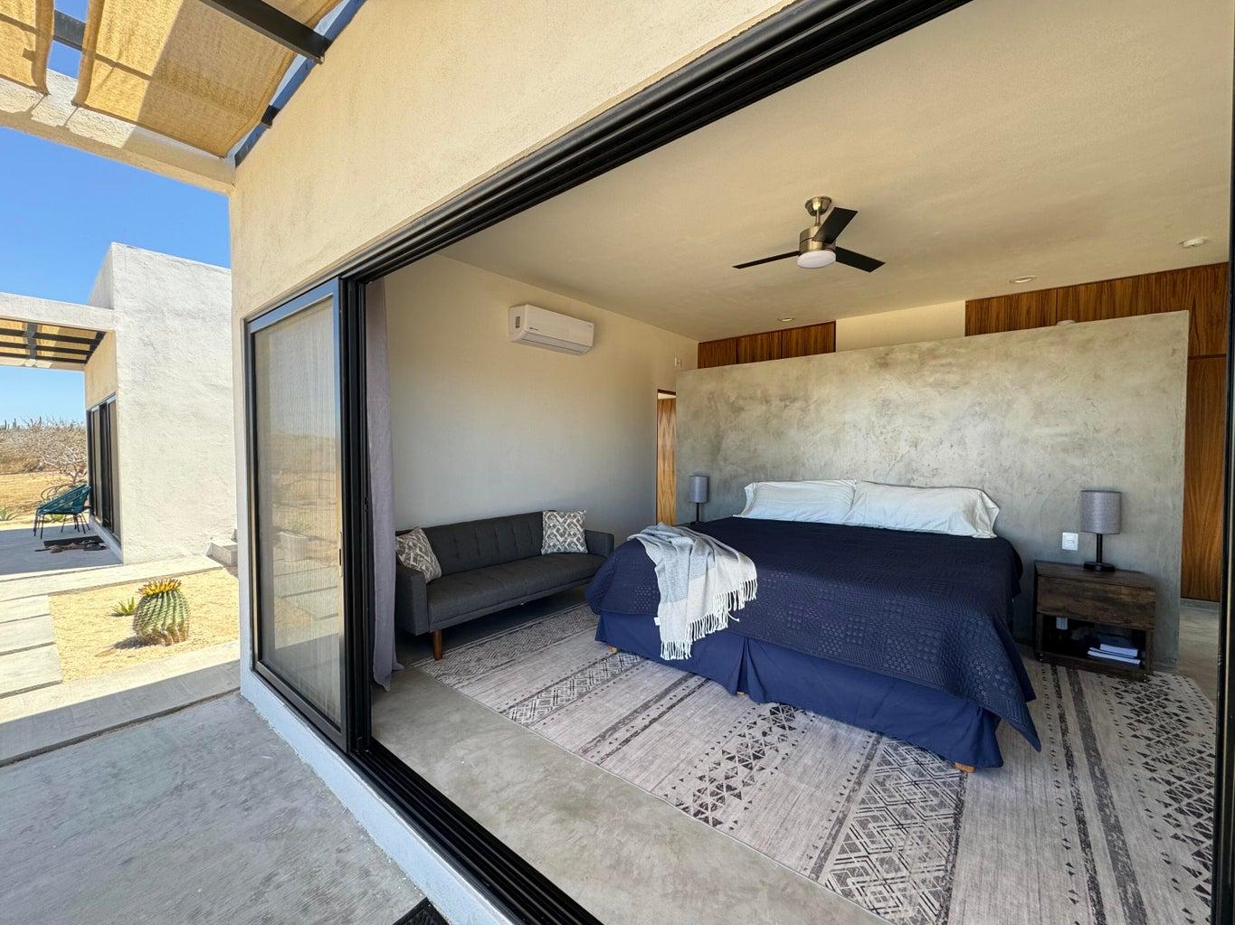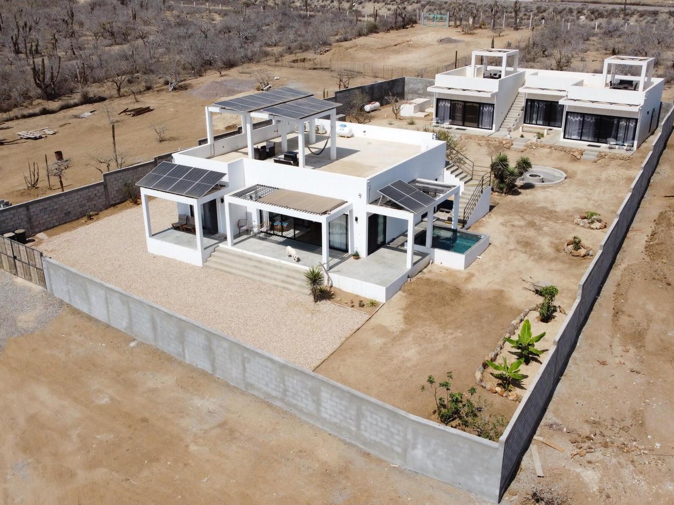 Only 3 minutes from Cerritos beach escape to this private 5-bedroom villa. Set behind a 7-ft security wall with storm shutters and solar power. The property offers peace of mind and eco-friendly comfort. The main house features two bedrooms and a garage, while the attached guest casitas includes their own bedrooms, bathrooms, and kitchens—perfect for privacy within your group. Thoughtfully designed with modern finishes. Open concept living with stunning views.
