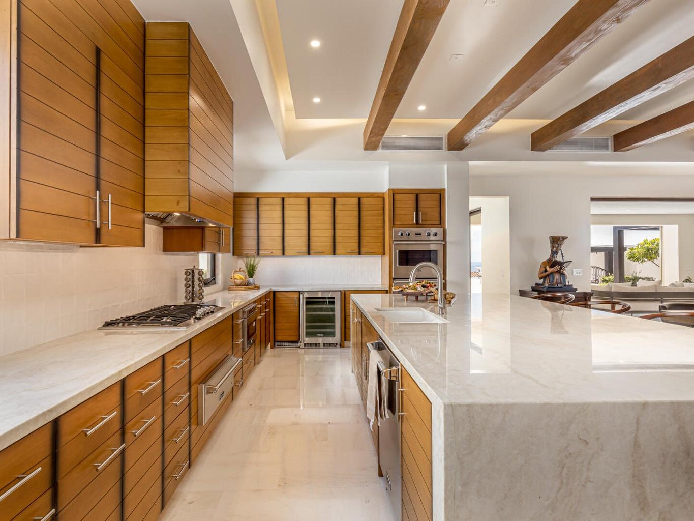 The open-concept living space is drenched in natural light, with large glass doors that seamlessly blend indoor and outdoor living. Step onto your private terrace and take in the breathtaking vistas of the Pacific Ocean. The spacious kitchen, equipped with high-end appliances is perfect for both casual family meals and hosting gatherings.
