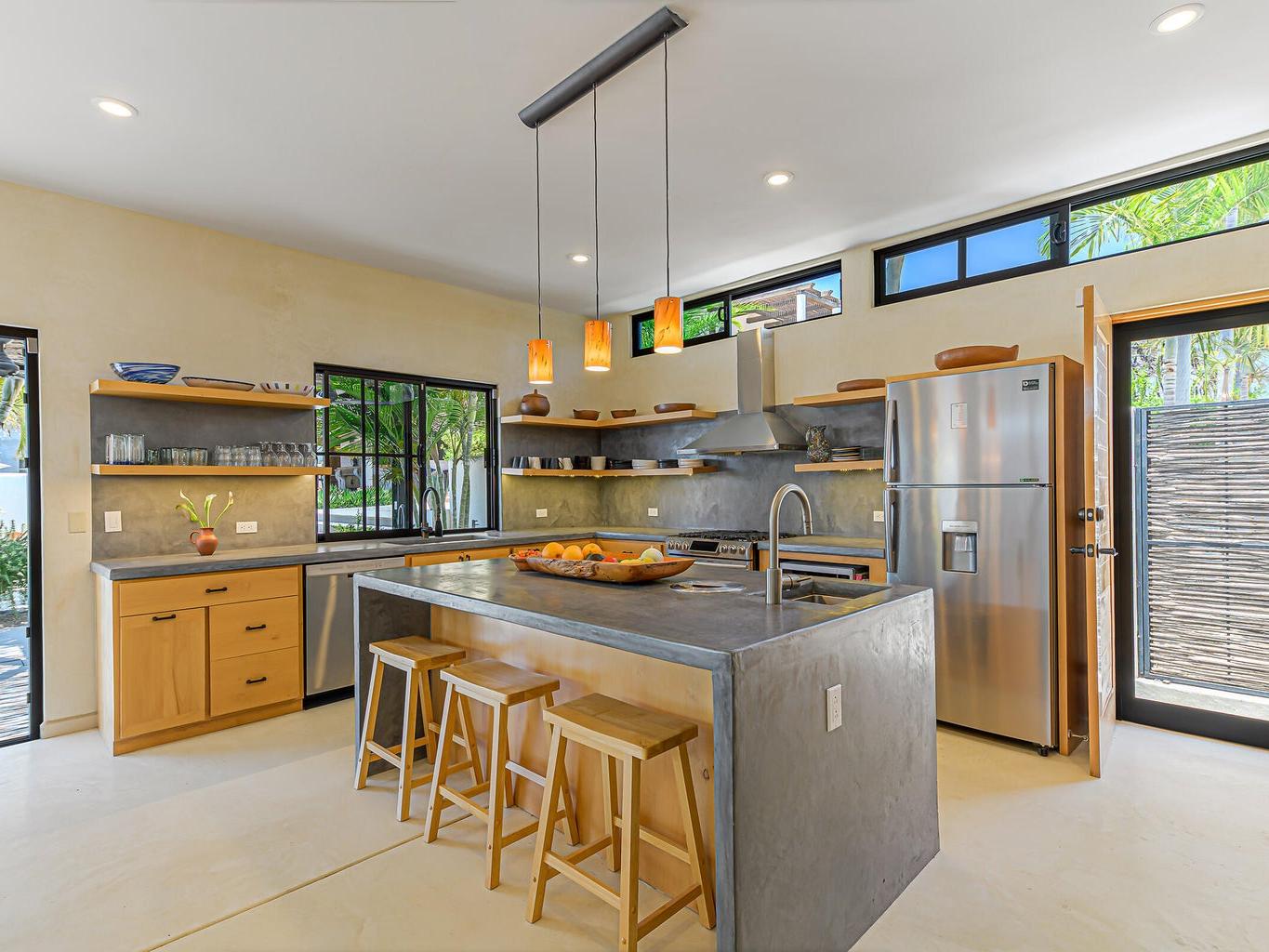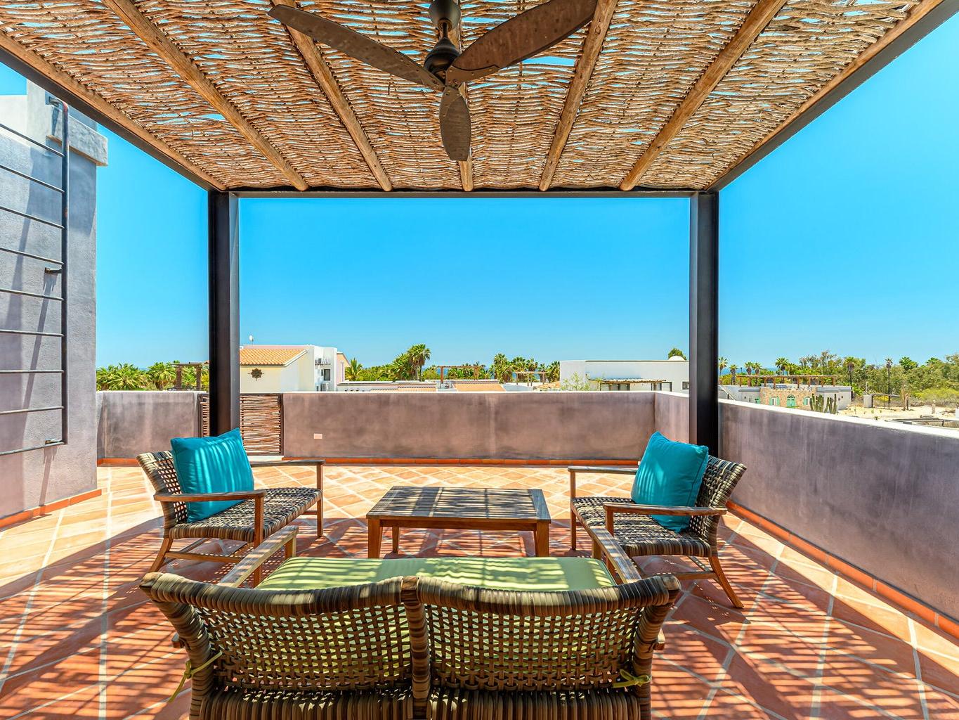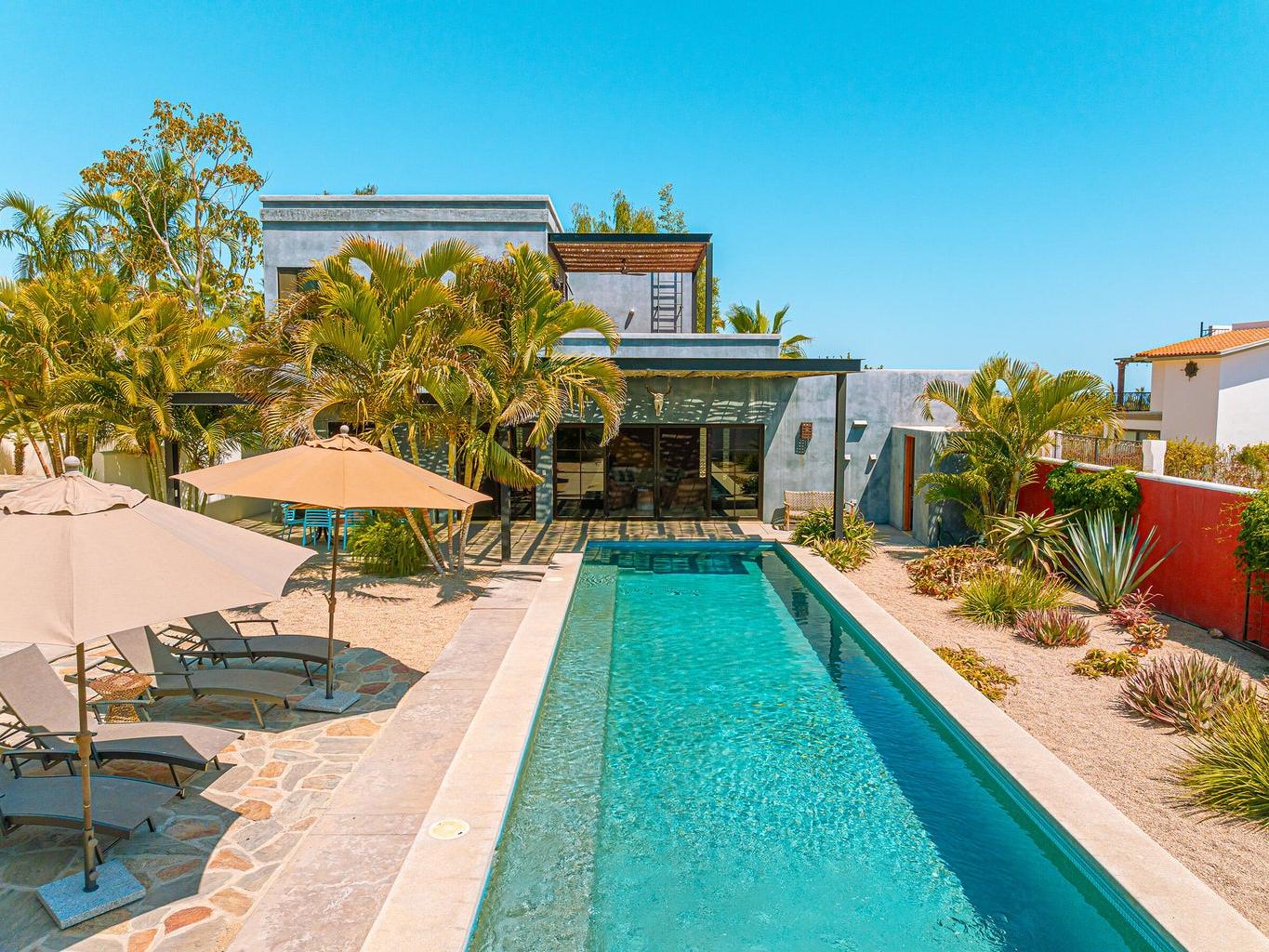 Meet Casa Azul, a delightful one-bedroom, two and one-half bath home located in the sought after Todos Santos neighborhood of Las Tunas. Discover a charming blend of contemporary design and modern furnishings with tasteful accents and rich, color infused walls throughout. Polished concrete floors and countertops, handcrafted sconces, media sombra patio covers and artisanal tiles leading you up the staircase remind you that you are in Mexico yet modern appliances and first class amenities abound. The cleverly hidden Murphy bed in the living area allows sleeping for two with the added convenience of a full bath steps away. Upstairs is the primary bedroom and bath with a spacious shaded patio featuring lovely ocean views.