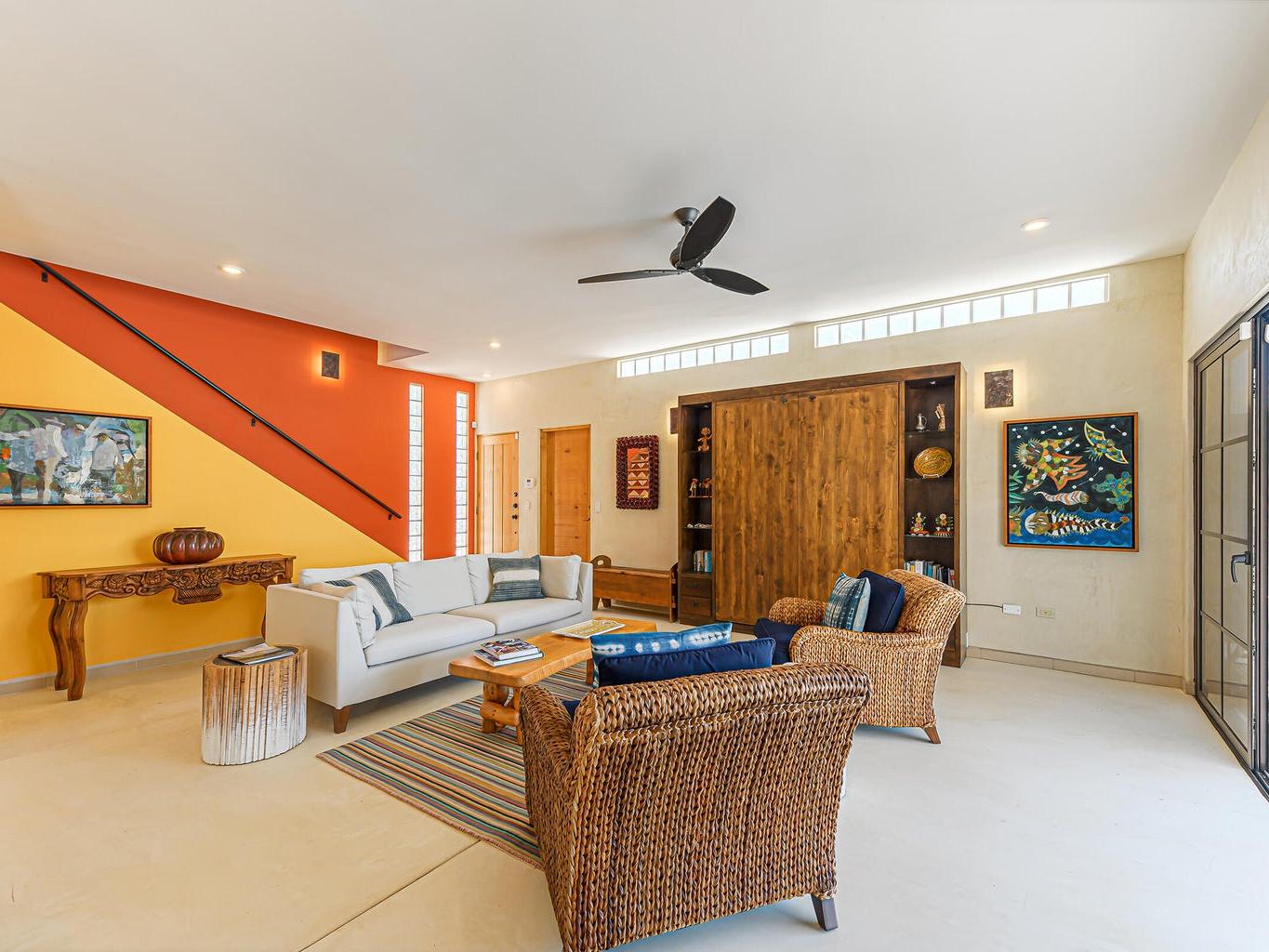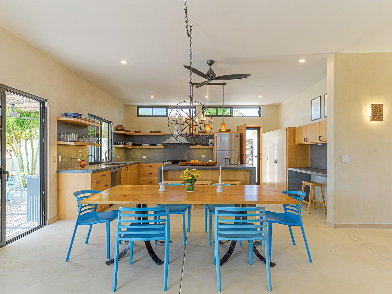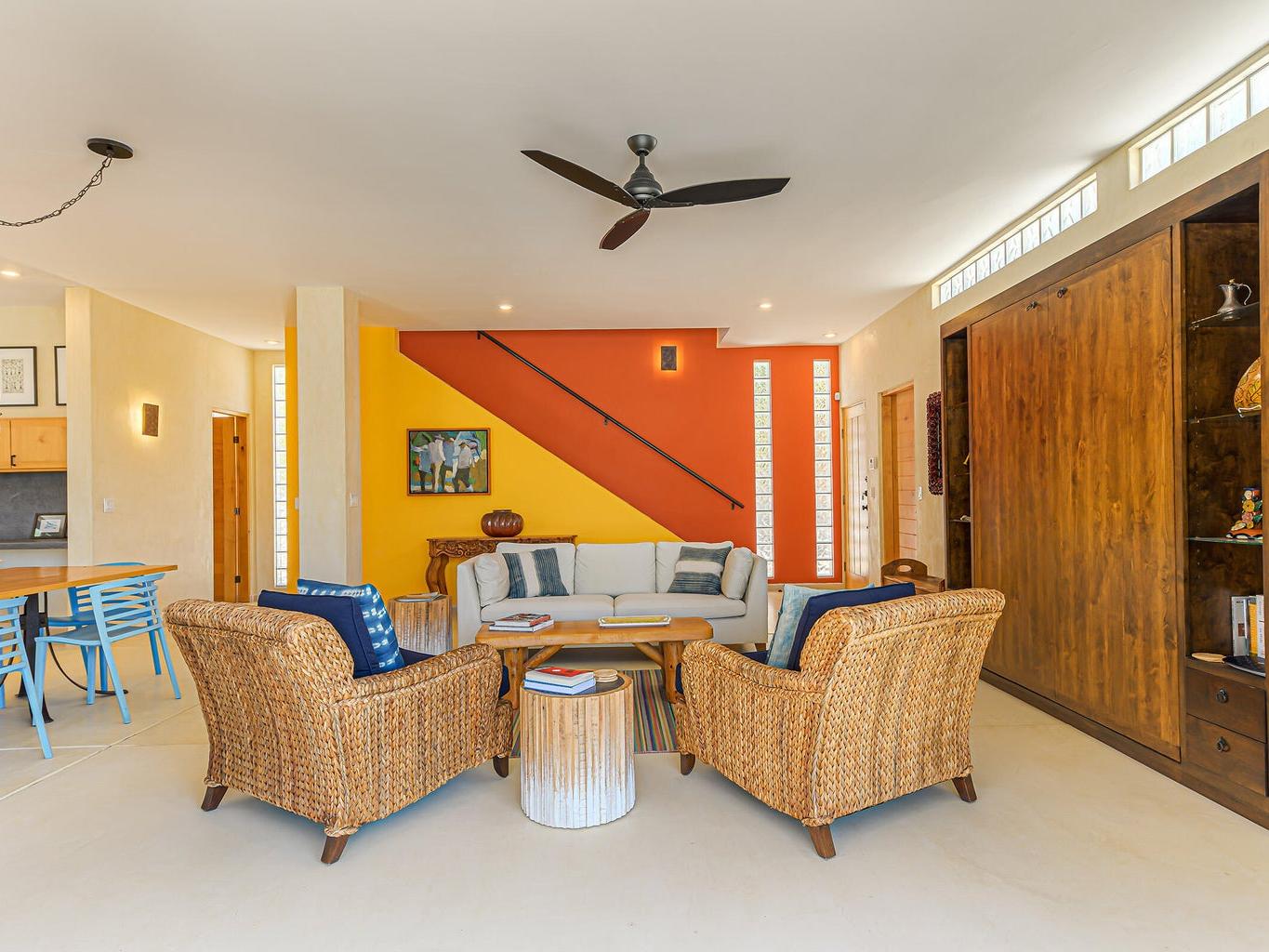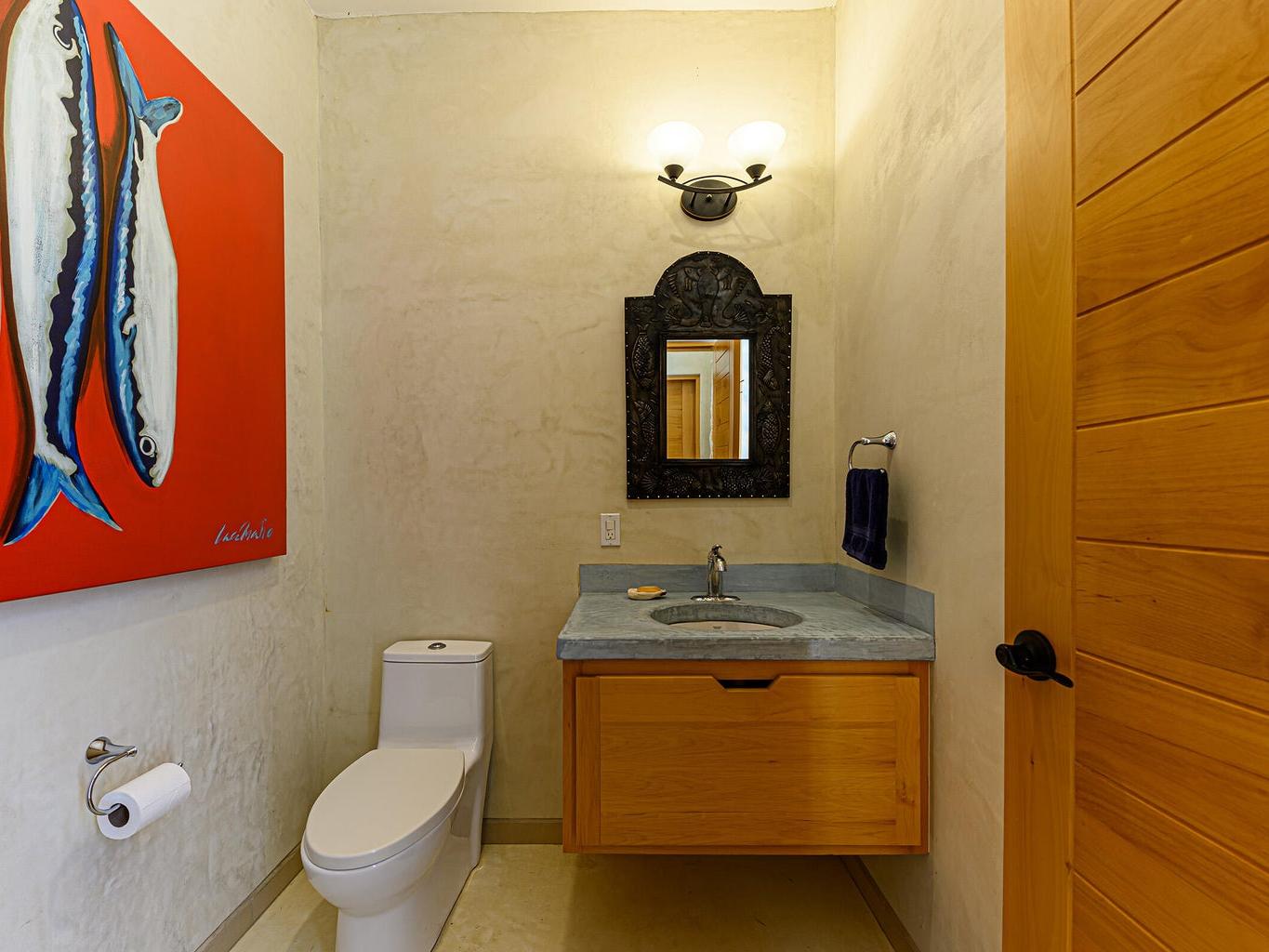 Meet Casa Azul, a delightful one-bedroom, two and one-half bath home located in the sought after Todos Santos neighborhood of Las Tunas. Discover a charming blend of contemporary design and modern furnishings with tasteful accents and rich, color infused walls throughout. Polished concrete floors and countertops, handcrafted sconces, media sombra patio covers and artisanal tiles leading you up the staircase remind you that you are in Mexico yet modern appliances and first class amenities abound. The cleverly hidden Murphy bed in the living area allows sleeping for two with the added convenience of a full bath steps away. Upstairs is the primary bedroom and bath with a spacious shaded patio featuring lovely ocean views.