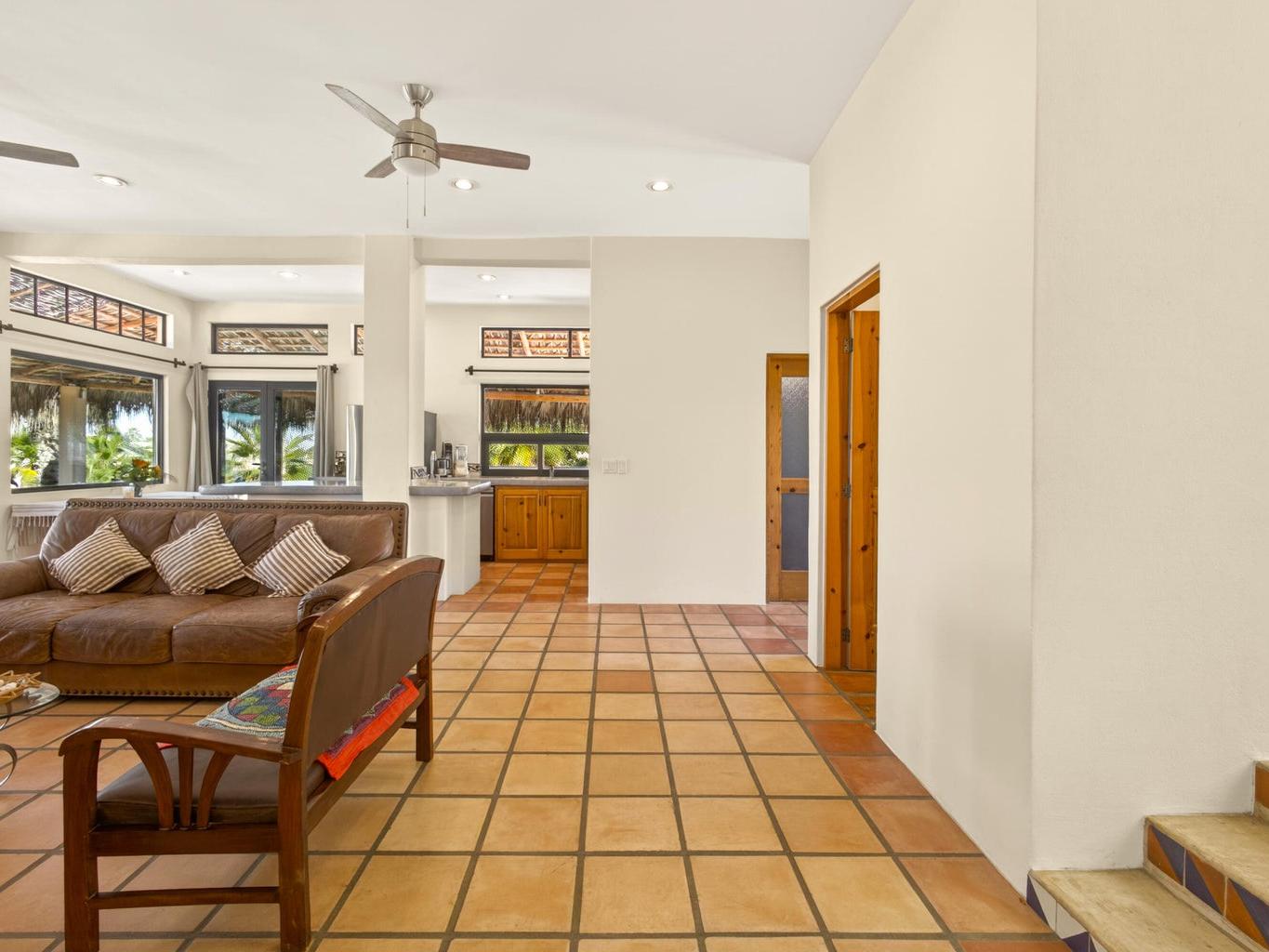 Looking for some space? Steps to the beach? This home is on a 3000 m2 lot with a beautifully maintained and upgraded 3 bedroom house with 4 baths AND a sparkling pool with attached change room/bathroom. Fully walled, fenced and gated with ocean views from every room. Covered wrap around terrace, all newer good quality windows, doors and screens throughout. Upgrades to wiring and plumbing, newer appliances, high ceilings, expansive upper terrace off both bedrooms and a jack and jill ensuite, great for guests or a large family. Plenty of room to build a garage AND a casita!