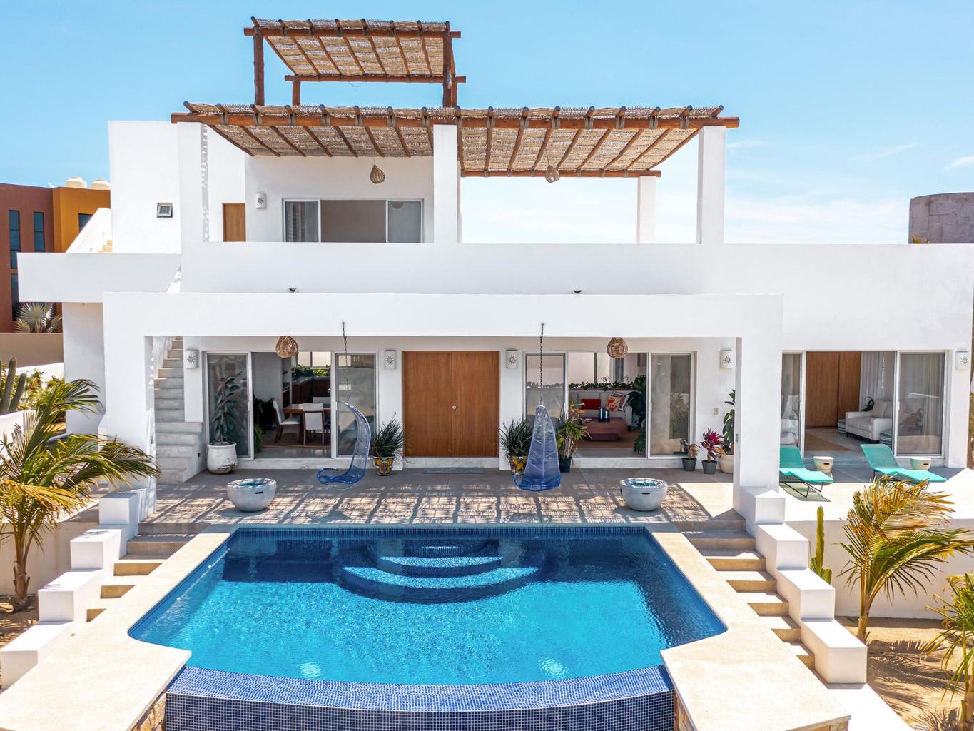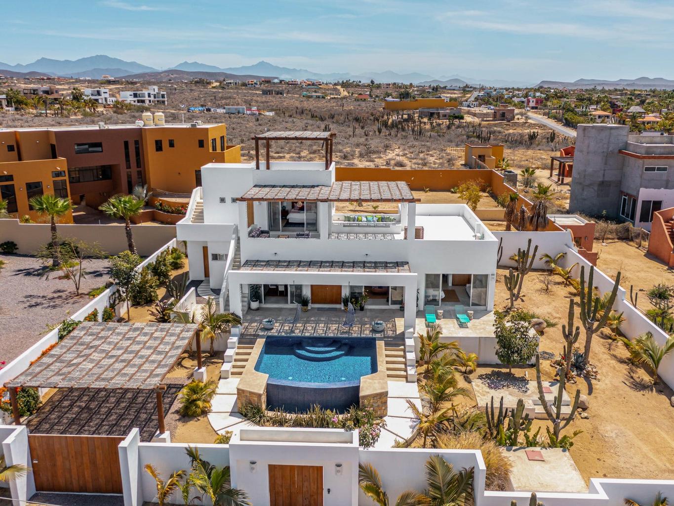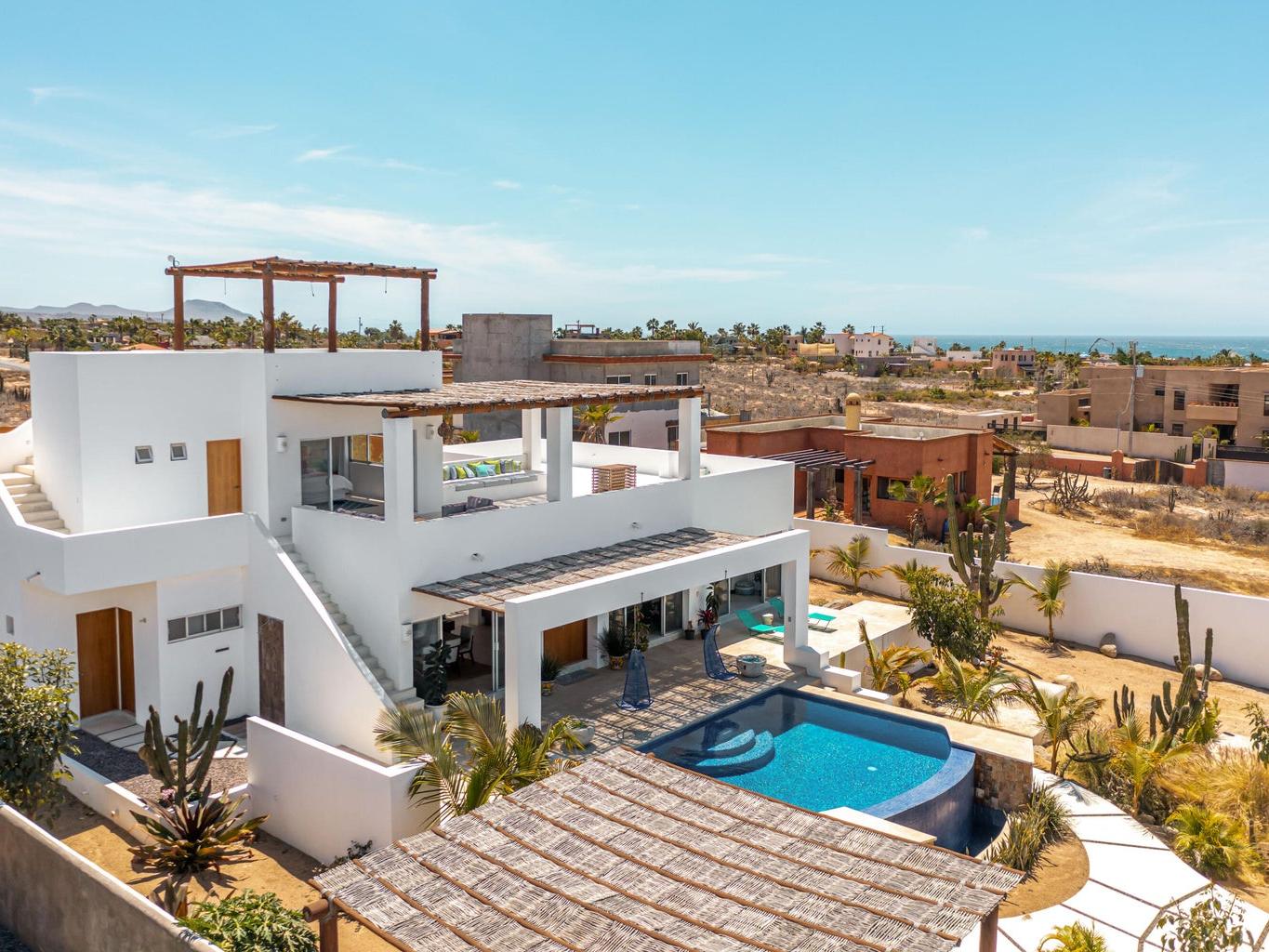 Villa Aguamarina is a contemporary Baja residence defined by clean lines, strong indoor-outdoor flow, and carefully preserved condition throughout. This 3BR / 3.5BA turnkey home offers generous terraces, framed ocean and mountain views, and an infinity pool designed for daily living and entertaining. Set on nearly 1/4 acre in the sought-after Las Tunas area, the property delivers privacy, scale, and functionality—just minutes from town and unspoiled beaches. A polished, proven vacation rental presented in move-in-ready condition.
