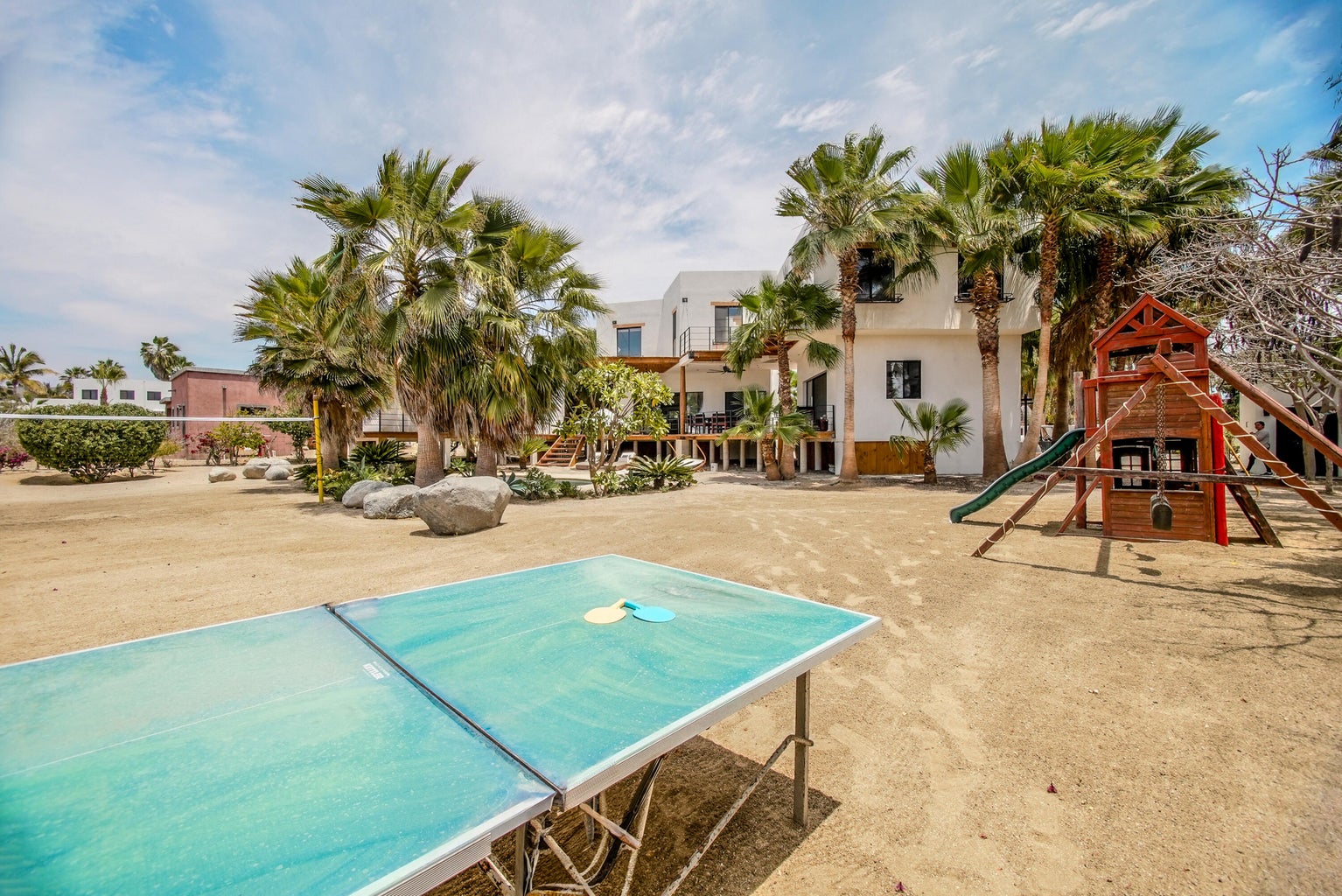 The landscaping is spectacular and is totally in tune with the place that surrounds it. Palm trees, fruit trees and its designed garden with chicken coop help to delimit the different areas, decorating and balancing it perfectly. A true oasis, which invites you to enjoy its outdoor spaces;