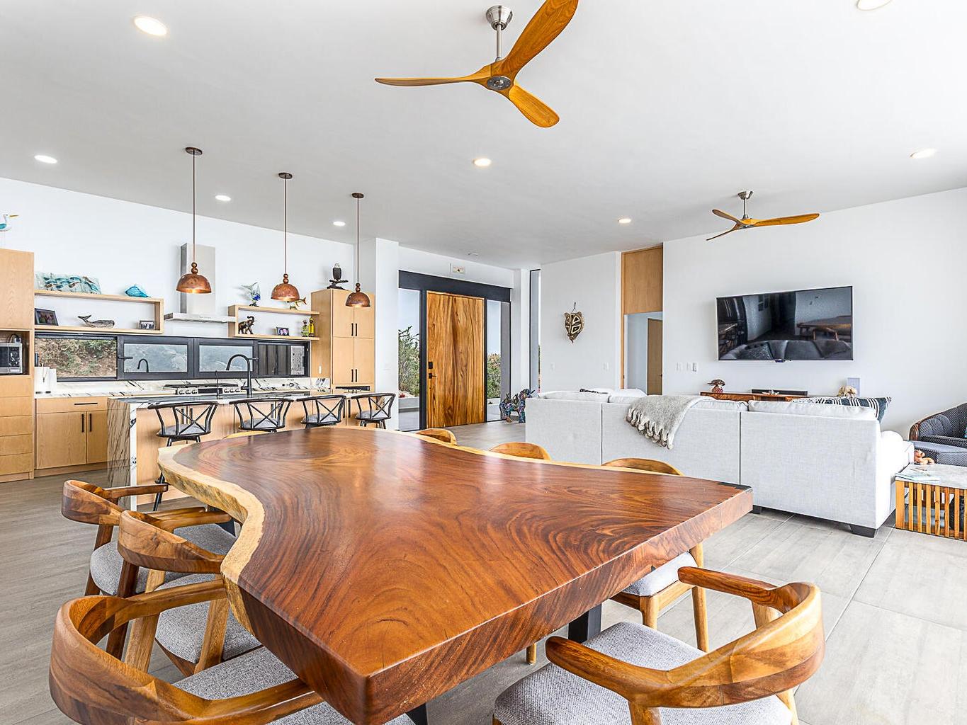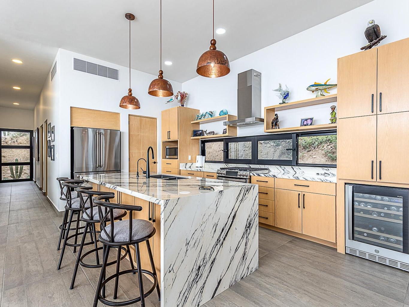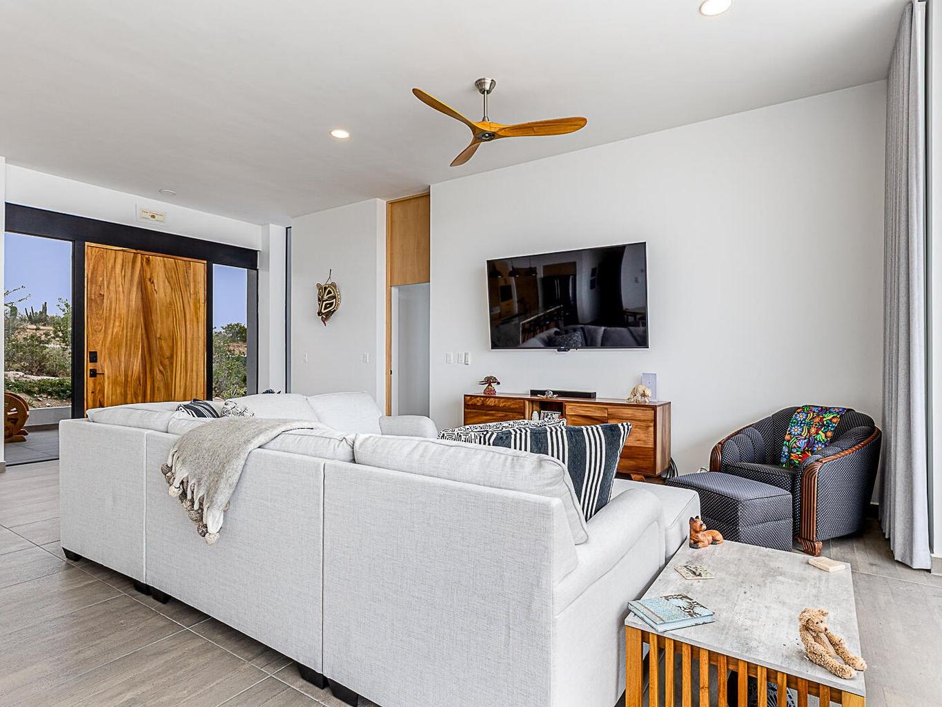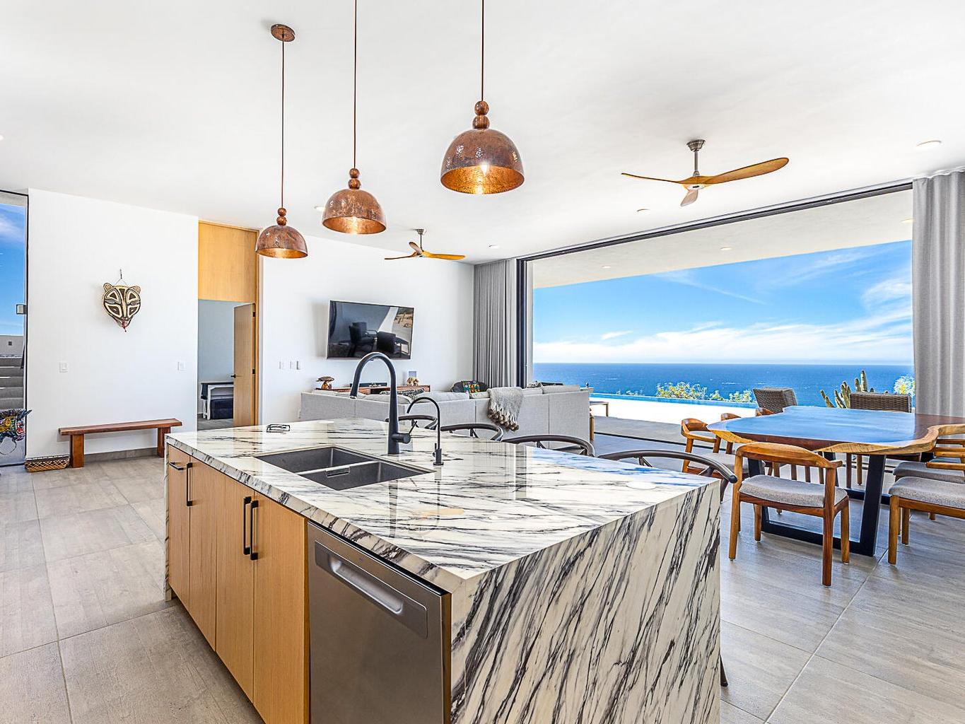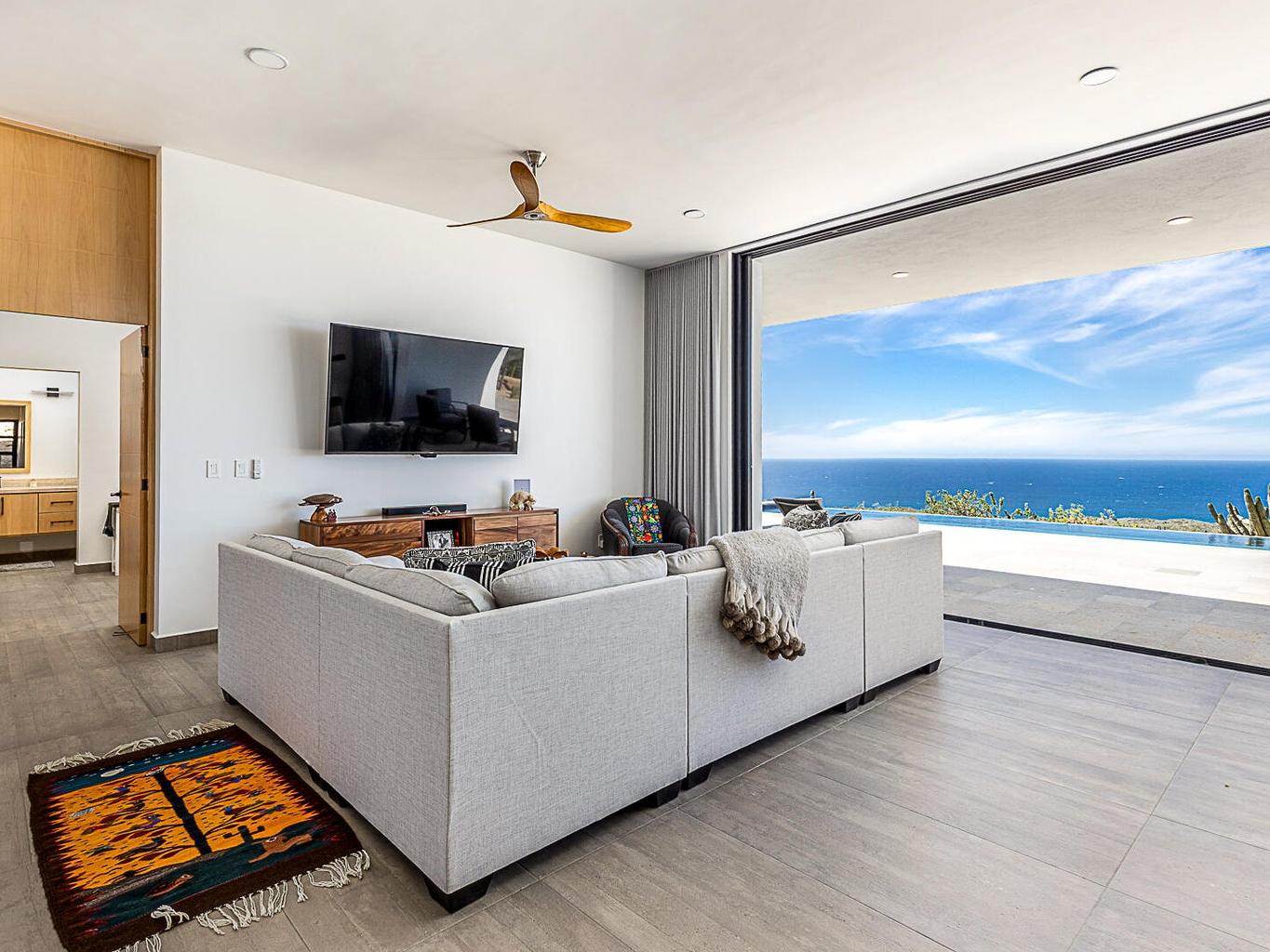 Featuring Forever Panoramic Views of the Pacific & Beaches, & spectacular vistas of migrating Whales, colorful Sunsets, & Desert meets the Sea Flora & Fauna. Casa Tranquila is a brand new contemporary 3 bedroom home, with spacious living areas, high ceilings, & beautifully decorated, furnished & designed with spectacular Ocean Views from every room. Casa Tranquila is situated on one of the best ocean view Lots in Rolling Hills, close to the beach, & features an Infinity Pool & huge Patio Sun Deck, shaded sitting Terraces, a Poolside Fire Pit with Outside Kitchen & BBQ. Additional features include a spacious ocean view Roof Deck above an oversized 2 car Garage, 20 KW Cummins automatic back-up Genset with a 1000 liter Propane Tank, & XL size 20,000 liter Cistern for plenty of H20 capacity.