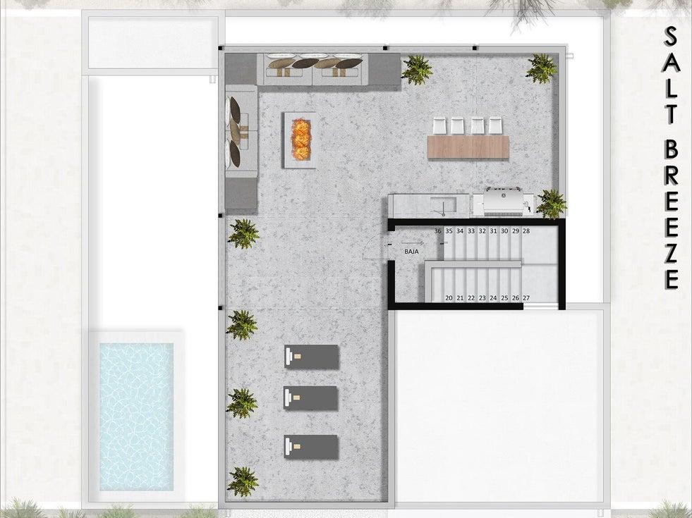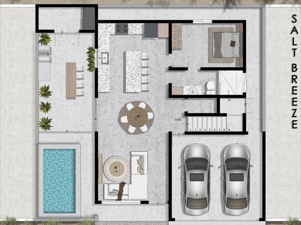 Casas of Salt Breeze is a new release of four-bedroom and three-bathroom homes built to North American standards in the heart of Cerritos Beach. This boutique community of only 14 homes offers a private fenced backyard, a two-car enclosed garage, and a thoughtful layout with a main floor bedroom and bright open living spaces. The community enjoys beautiful ocean views and sweeping mountain scenery that create a calm coastal setting. Just minutes from the shoreline and local dining, this collection blends energy efficient concrete construction with warm modern design from a reputable builder with a proven track record across two successful phases.