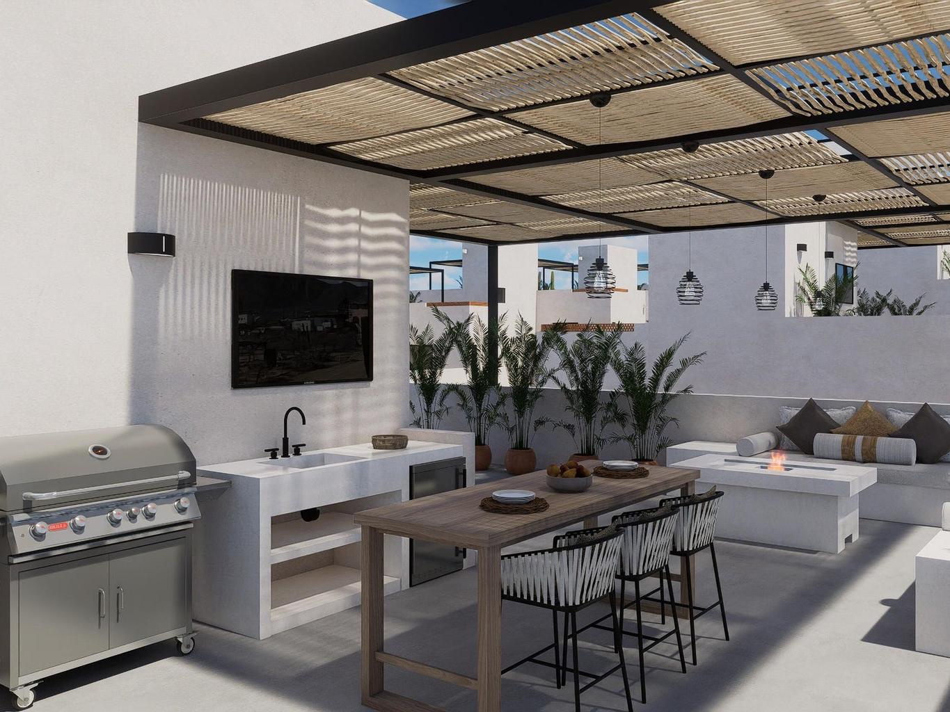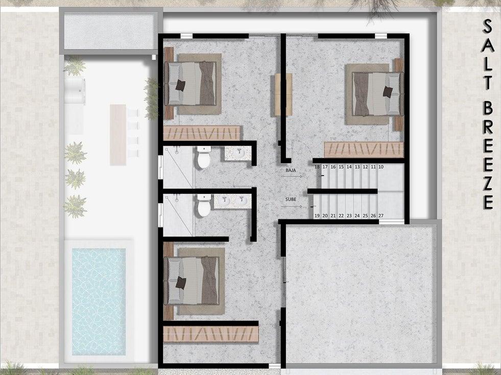Casas of Salt Breeze is a new release of four-bedroom and three-bathroom homes built to North American standards in the heart of Cerritos Beach. This boutique community of only 14 homes offers a private fenced backyard, a two-car enclosed garage, and a thoughtful layout with a main floor bedroom and bright open living spaces. The community enjoys beautiful ocean views and sweeping mountain scenery that create a calm coastal setting. Just minutes from the shoreline and local dining, this collection blends energy efficient concrete construction with warm modern design from a reputable builder with a proven track record across two successful phases.