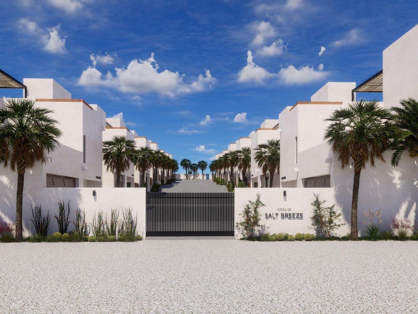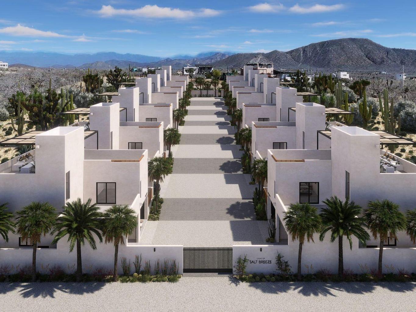 Casas of Salt Breeze is a new release of four-bedroom and three-bathroom homes built to North American standards in the heart of Cerritos Beach. This boutique community of only 14 homes offers a private fenced backyard, a two-car enclosed garage, and a thoughtful layout with a main floor bedroom and bright open living spaces. The community enjoys beautiful ocean views and sweeping mountain scenery that create a calm coastal setting. Just minutes from the shoreline and local dining, this collection blends energy efficient concrete construction with warm modern design from a reputable builder with a proven track record across two successful phases.
