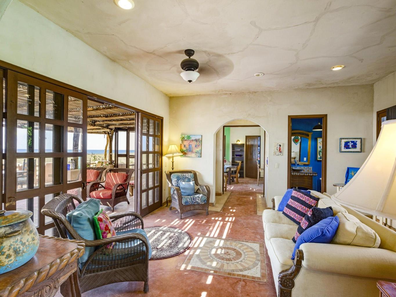 Here is your opportunity to own a piece of rich Todos Santos history. Flora Del Mar has operated as a successful B&B for over 20 years and has long served as a hub for the local tennis and pickleball community. Proudly offering the 4-bedroom, 3.5-bath Ocean View Home now being parceled off. Built in 2004, the residence features a self-contained two-bedroom suite on the lower level, ideal for guests or rental income. High ceilings, a newly updated kitchen, and spectacular ocean views define the main living spaces. Covered deck areas extend the living space outdoors, creating an ideal setting for gatherings and sunset views. Second row to the beach with protected dunes in front, ensuring uninterrupted ocean views for the foreseeable future.