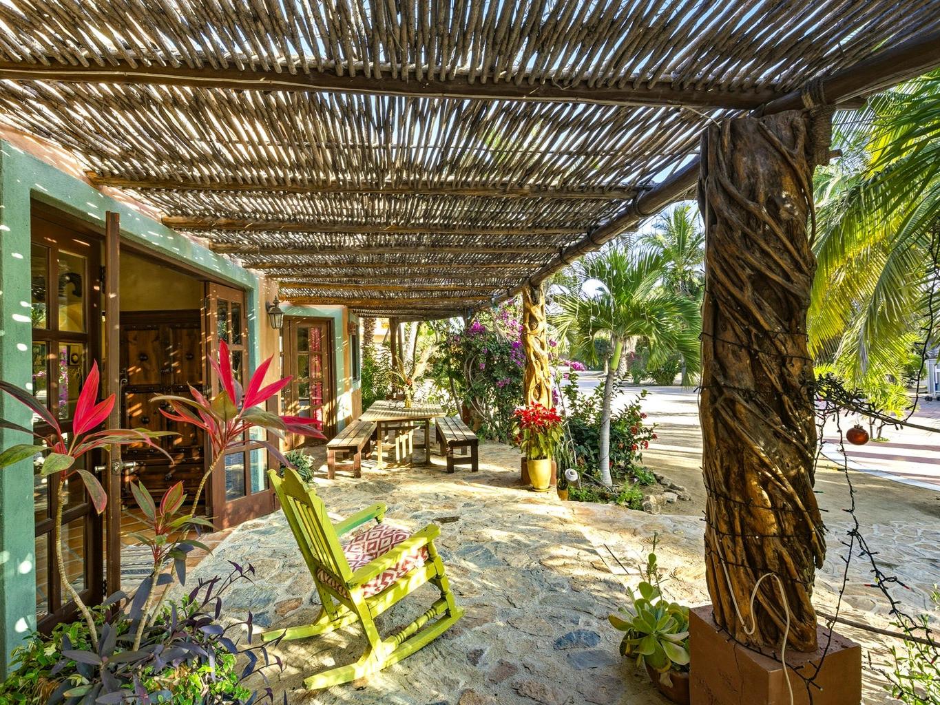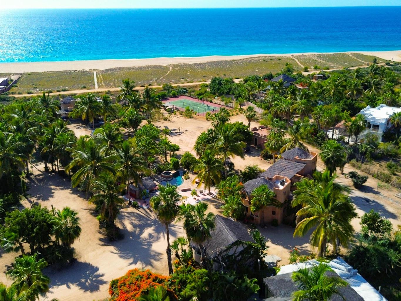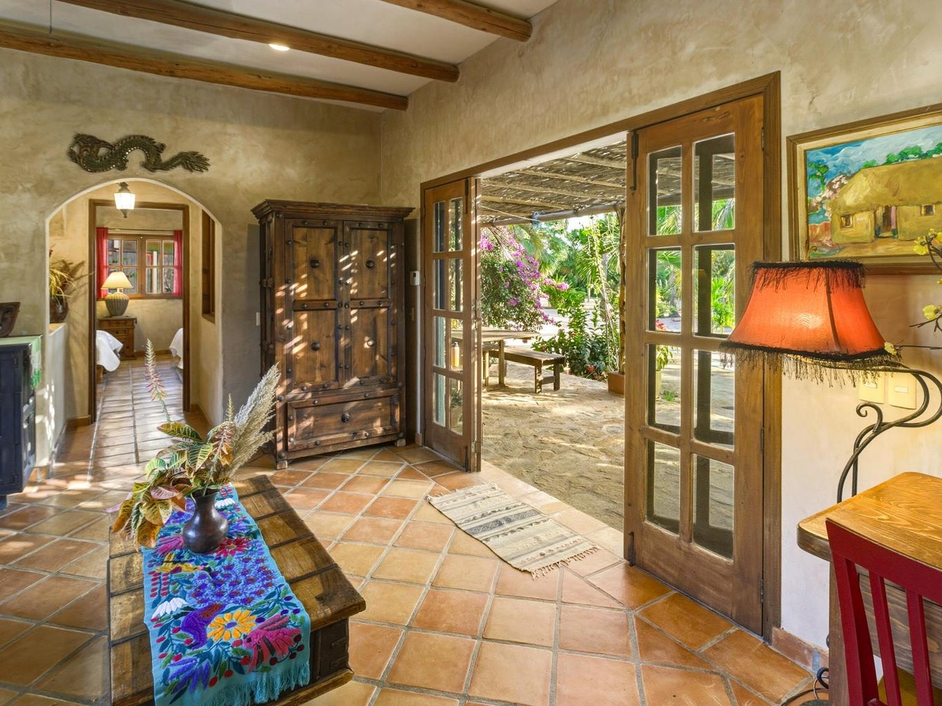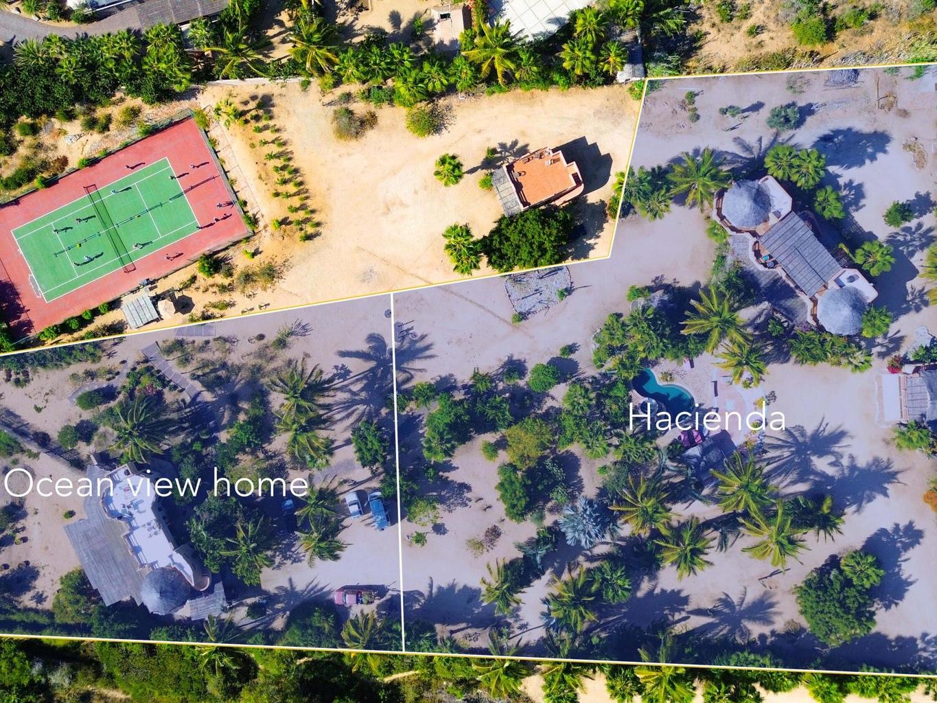 Flora Del Mar Hacienda is a rare, income-producing estate with deep roots in the Todos Santos community. Sitting on a 1.3 acre lot, offering 5 bedrooms and 5.5 baths across multiple independent living spaces, currently operating as a successful B&B-style retreat. The main hacienda includes four ensuite bedrooms—two on the main level and two upstairs and a fully separate casita above the garage with a full kitchen and bath. With a proven history of six-figure annual rental income, the estate offers a pool, hot tub, bar and lounge area, mature trees, ocean views, and close beach access. Long known as a gathering place for the local tennis and pickleball community, it's ideal for retreats, events, or a family compound, and can be purchased alongside the Flora Del Mar Ocean View Home.