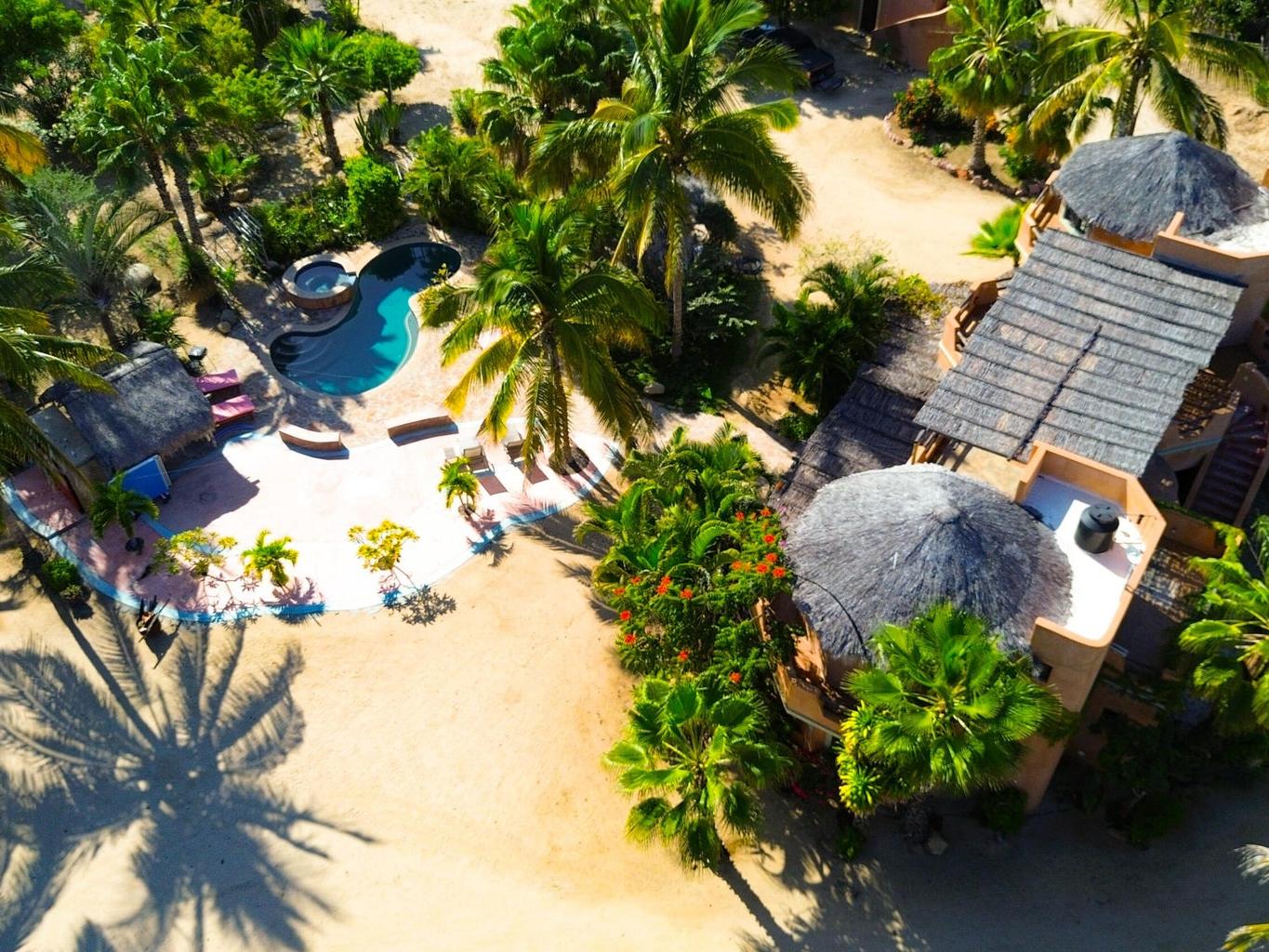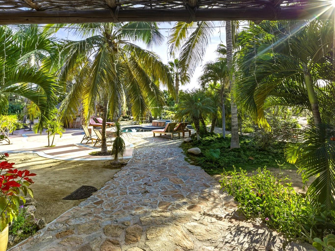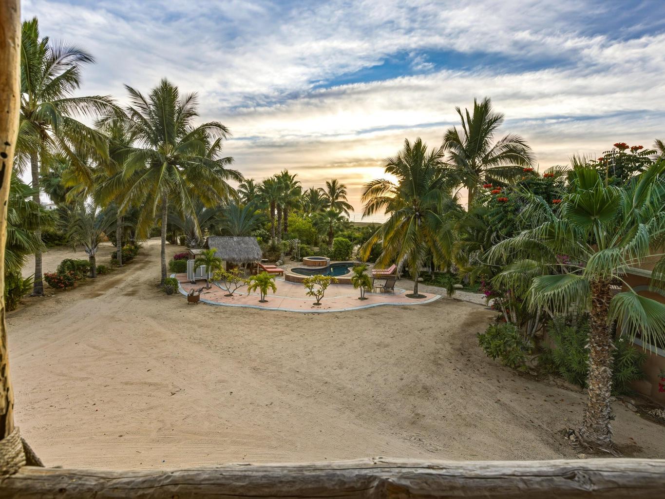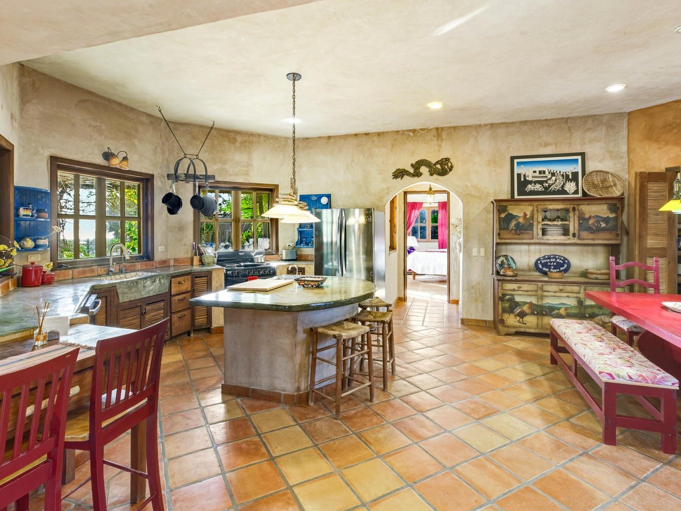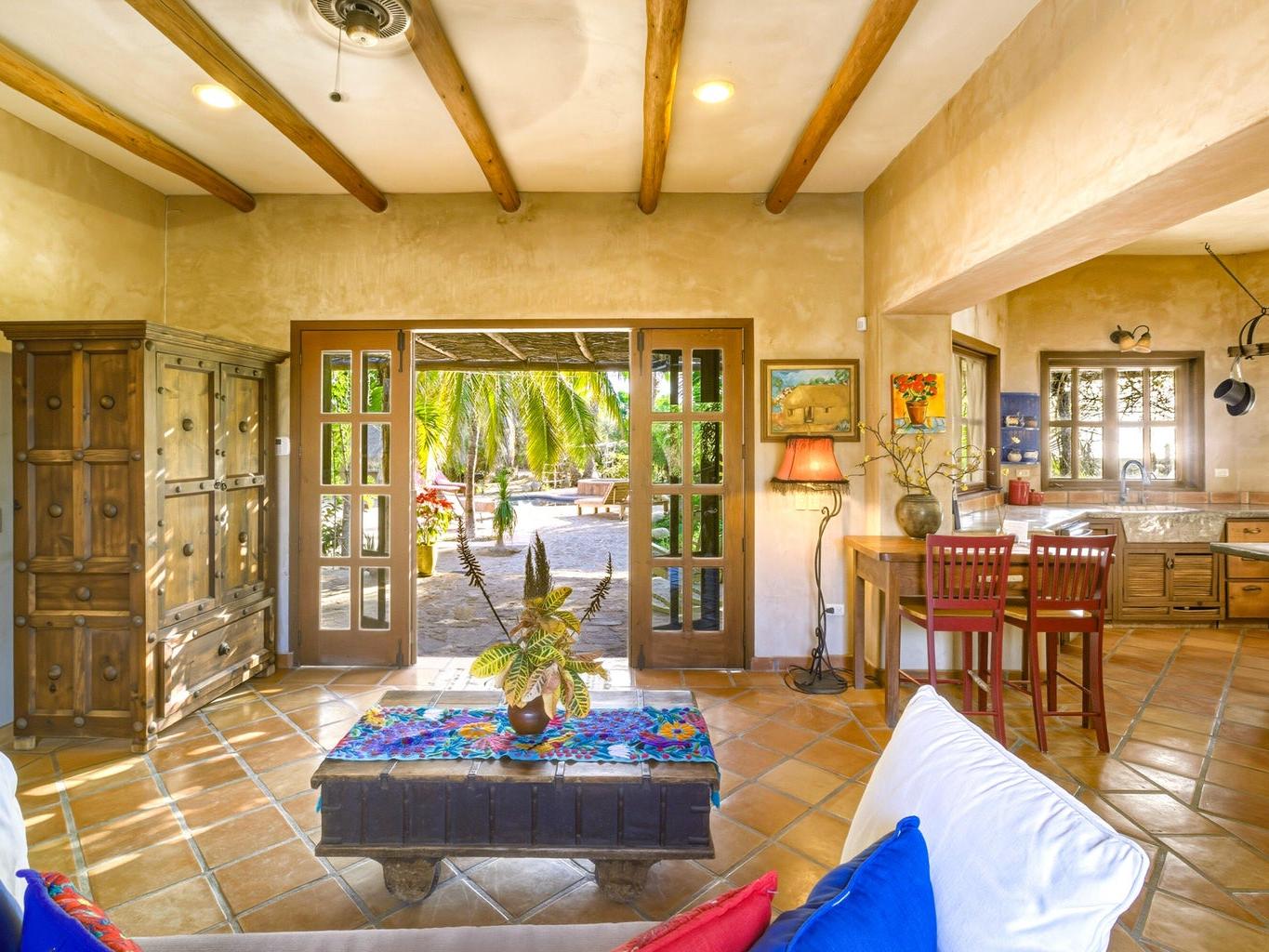 Flora Del Mar Hacienda is a rare, income-producing estate with deep roots in the Todos Santos community. Sitting on a 1.3 acre lot, offering 5 bedrooms and 5.5 baths across multiple independent living spaces, currently operating as a successful B&B-style retreat. The main hacienda includes four ensuite bedrooms—two on the main level and two upstairs and a fully separate casita above the garage with a full kitchen and bath. With a proven history of six-figure annual rental income, the estate offers a pool, hot tub, bar and lounge area, mature trees, ocean views, and close beach access. Long known as a gathering place for the local tennis and pickleball community, it's ideal for retreats, events, or a family compound, and can be purchased alongside the Flora Del Mar Ocean View Home.