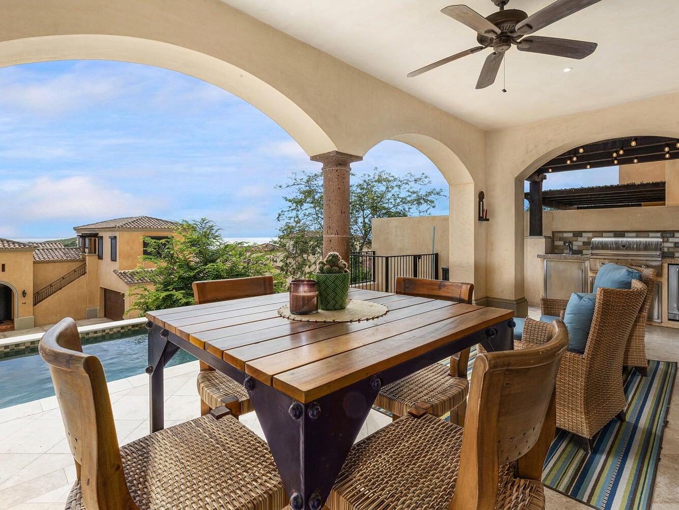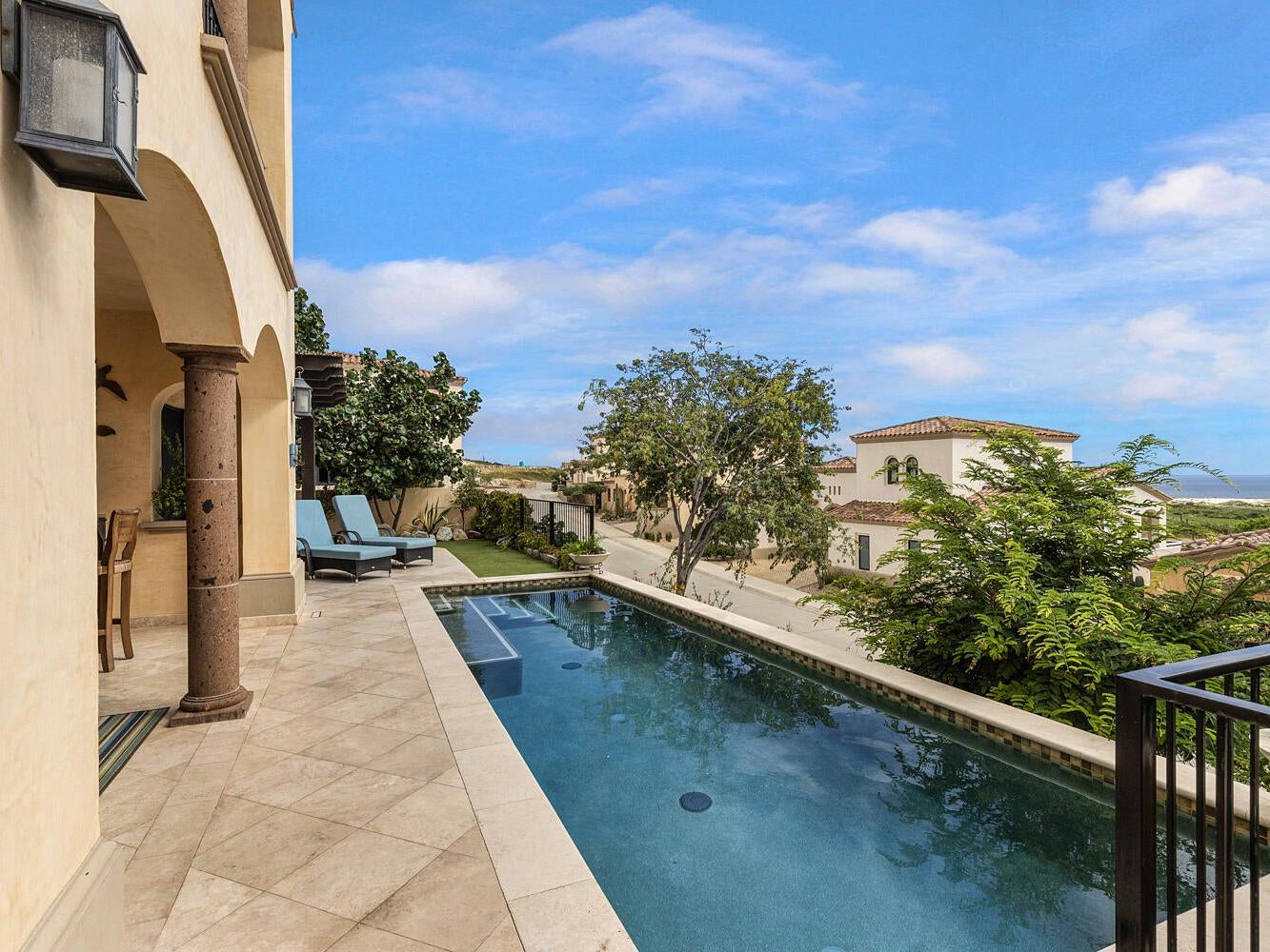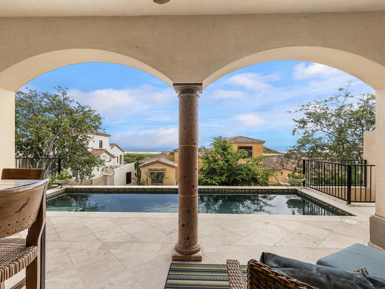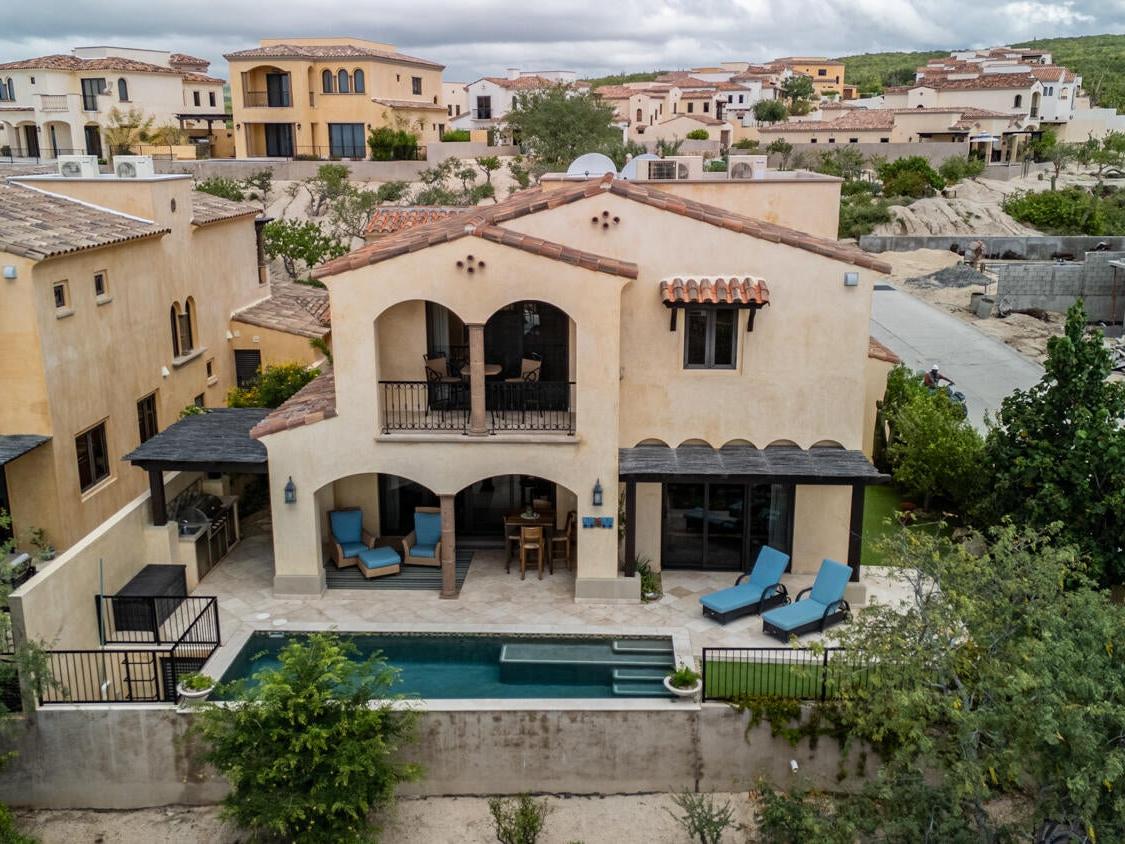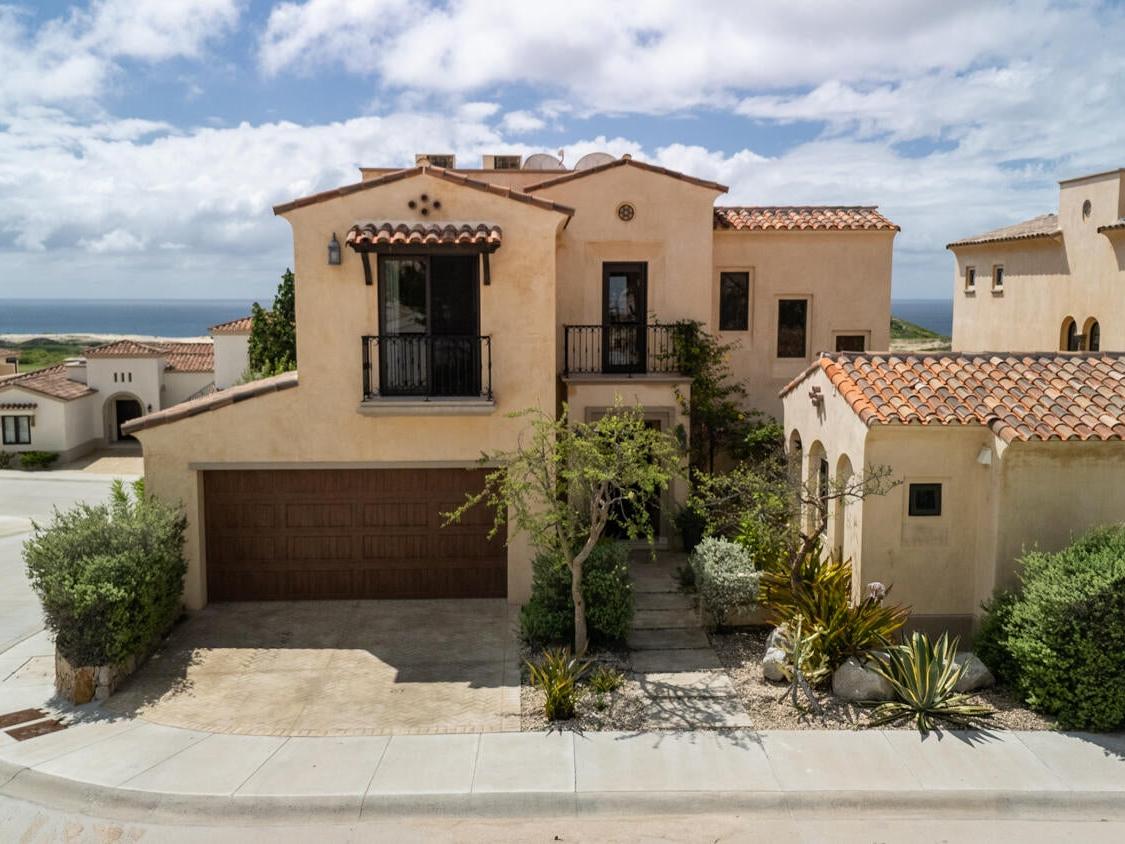 Discover an unparalleled lifestyle at Villa 34 Aire, an exquisite Santa Barbara-style home nestled within the exclusive, double-gated community of Rancho San Lucas. This is THE most affordable home located within a Golf Community anywhere in Los Cabos and is less than 3/4 of a mile to the Pacific Ocean. This exceptional property offers a rare blend of timeless elegance and natural beauty, with breathtaking panoramic views of the Pacific Ocean and the world-class Greg Norman Signature Solmar Dunes Golf Course. This home provides the perfect balance of serene privacy & resort-style living. With over 3,000 square feet of air-conditioned living space, the main villa includes three spacious bedrooms.......