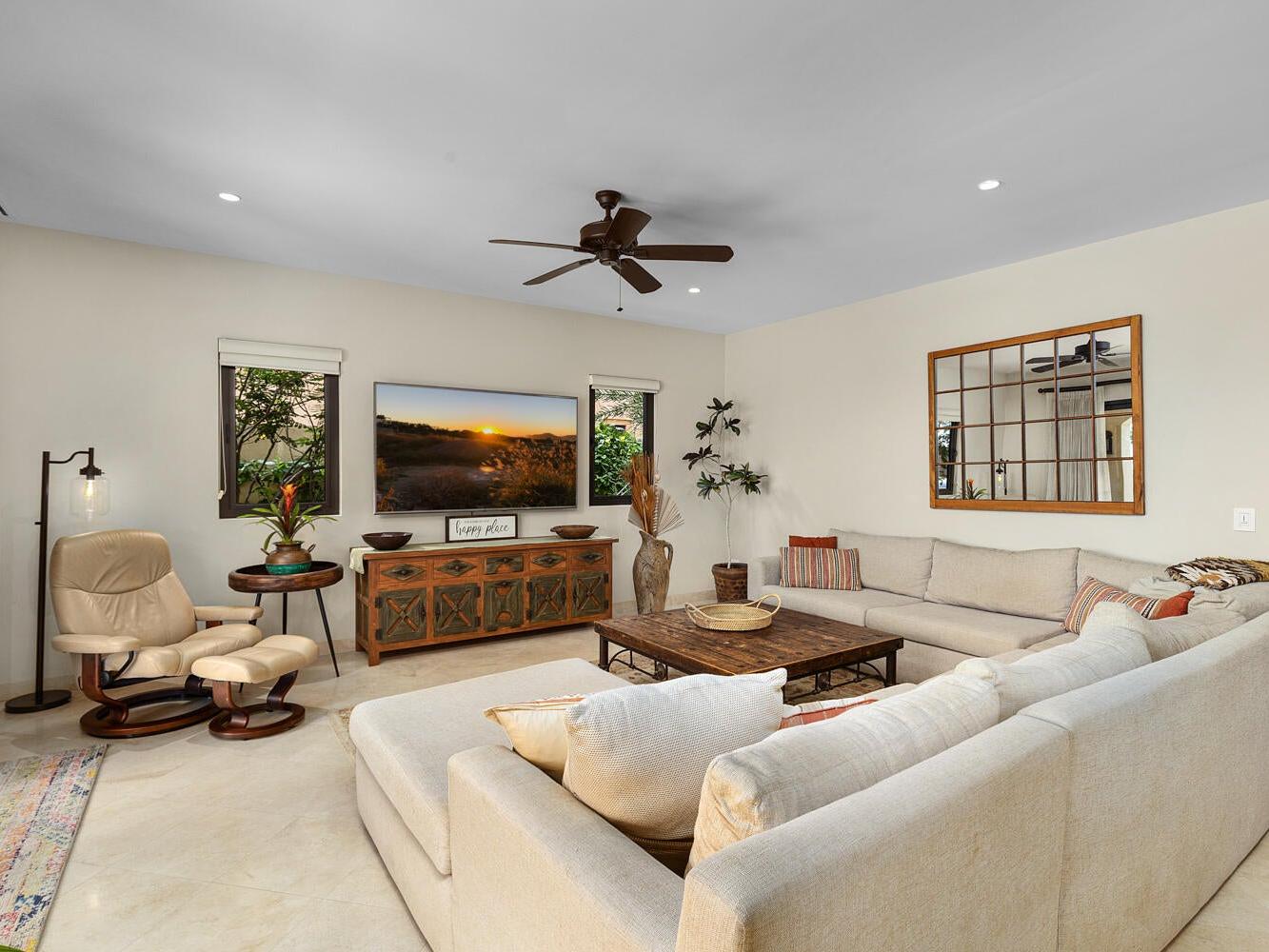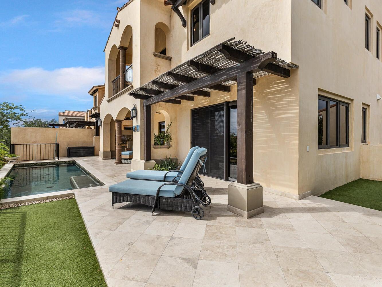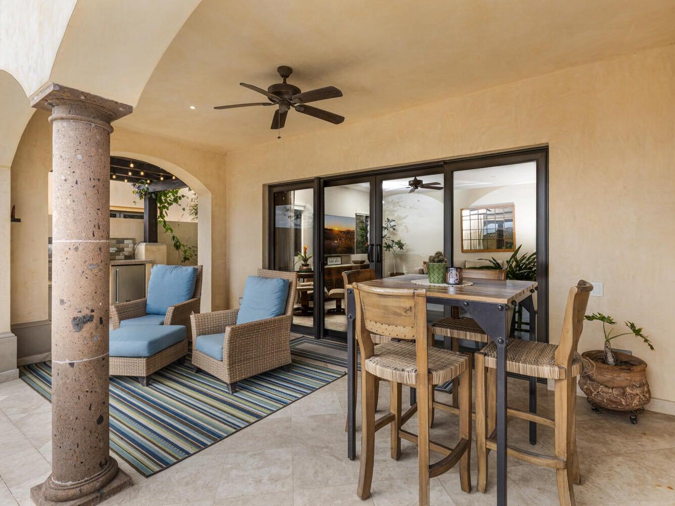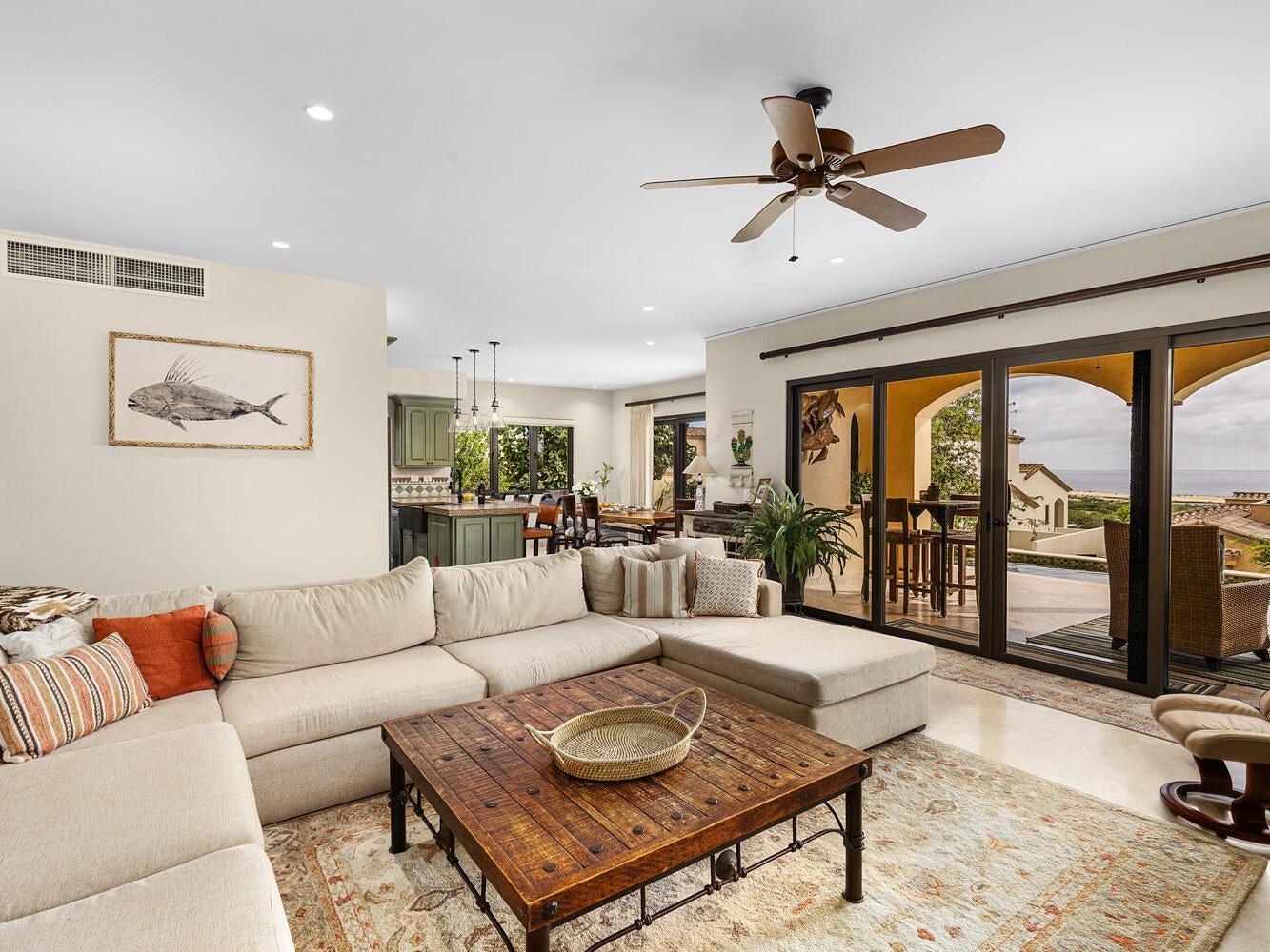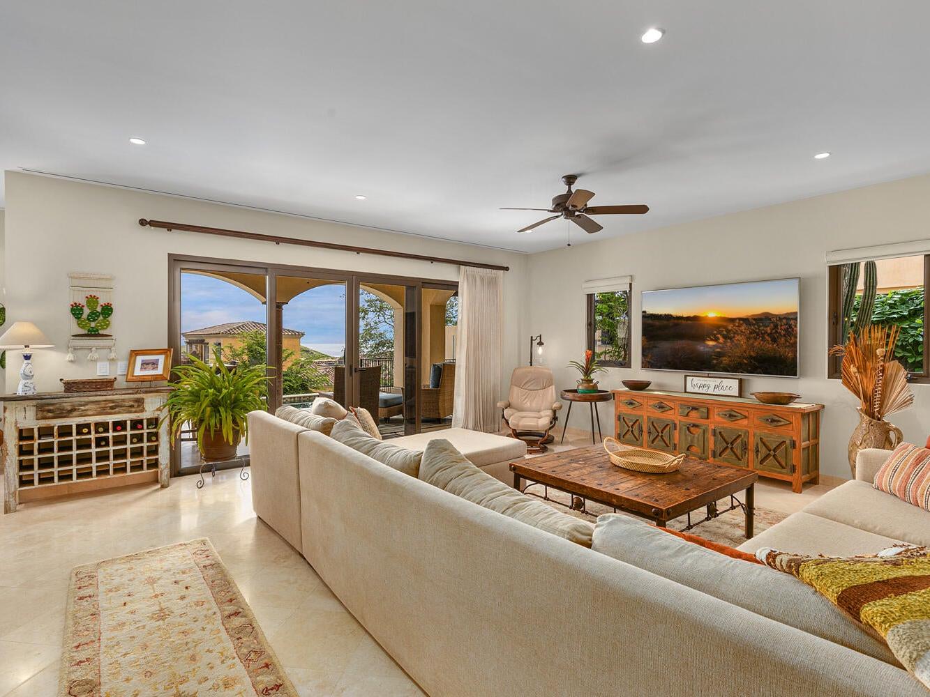 Discover an unparalleled lifestyle at Villa 34 Aire, an exquisite Santa Barbara-style home nestled within the exclusive, double-gated community of Rancho San Lucas. This is THE most affordable home located within a Golf Community anywhere in Los Cabos and is less than 3/4 of a mile to the Pacific Ocean. This exceptional property offers a rare blend of timeless elegance and natural beauty, with breathtaking panoramic views of the Pacific Ocean and the world-class Greg Norman Signature Solmar Dunes Golf Course. This home provides the perfect balance of serene privacy & resort-style living. With over 3,000 square feet of air-conditioned living space, the main villa includes three spacious bedrooms.......