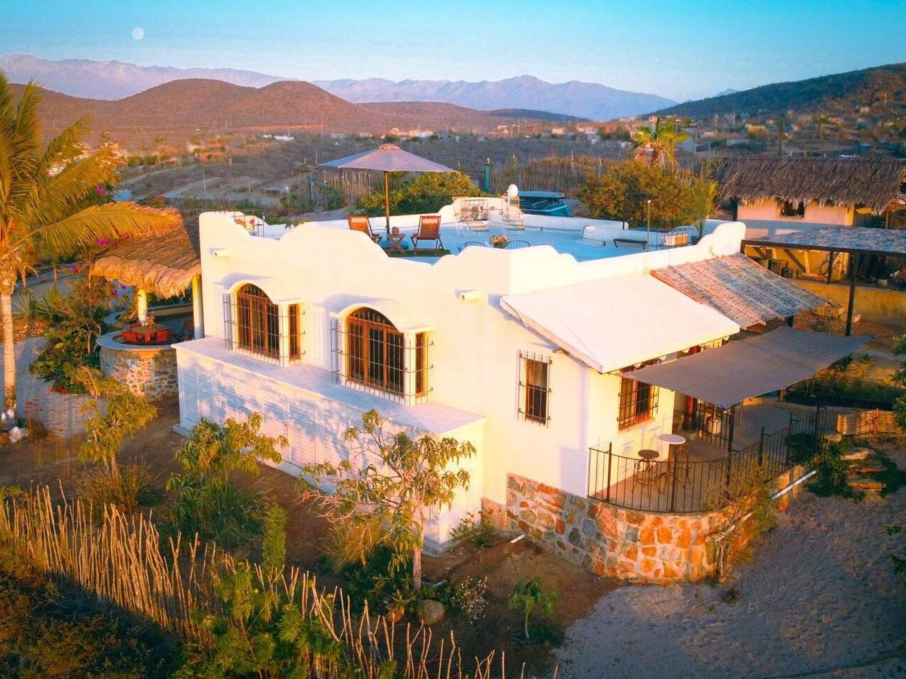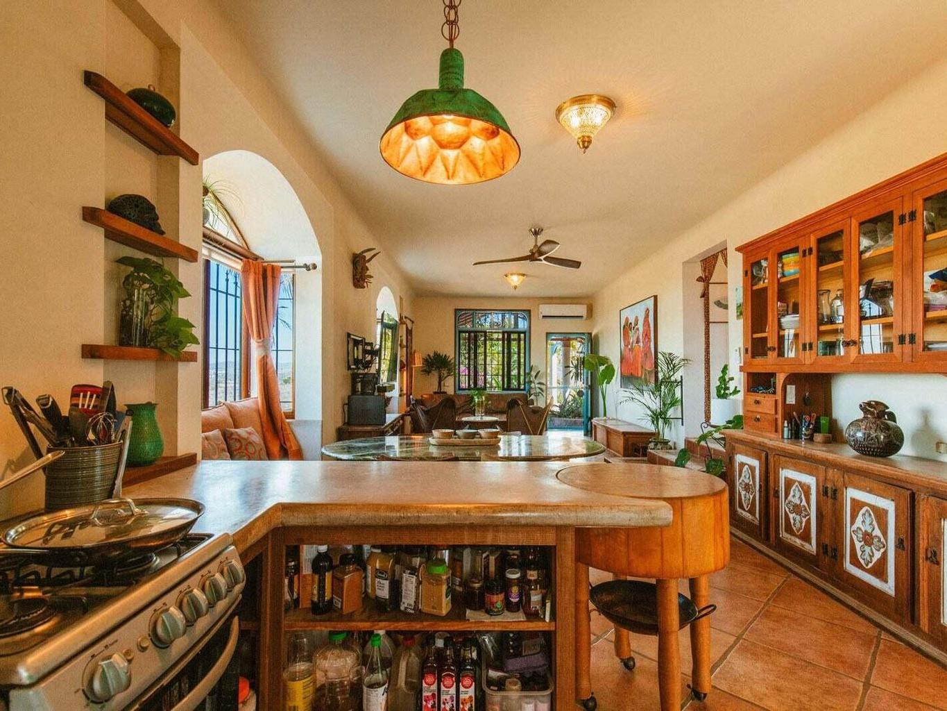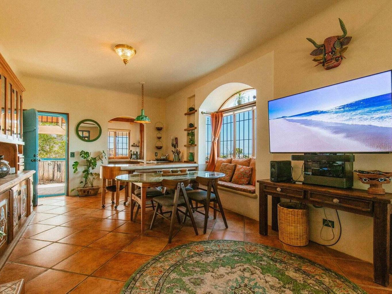 Situated above the historic neighborhood of San Juan Viejo, this majestic 2 bedroom, 1 bath, 2 shower home sits atop a very private hill (one of the highest in the area) & offers unparalleled 360 degree views of sunsets over the ocean, moon rises over the mountains, and the entire lush green huerta. Centrally located, it's just a short walk to Doce Cuarenta Cafe, and then to downtown, a quick 5 minute drive to the nearest beach, and only 15 minutes to both Cerritos surf spot in the South, and La Pastora surf spot in the North. The local hiking and biking trail system is also easily accessed from your front door.